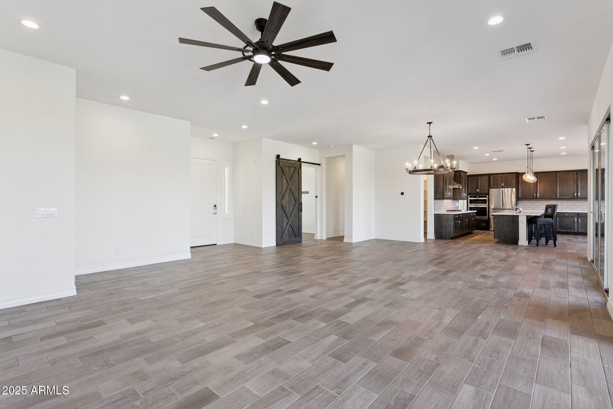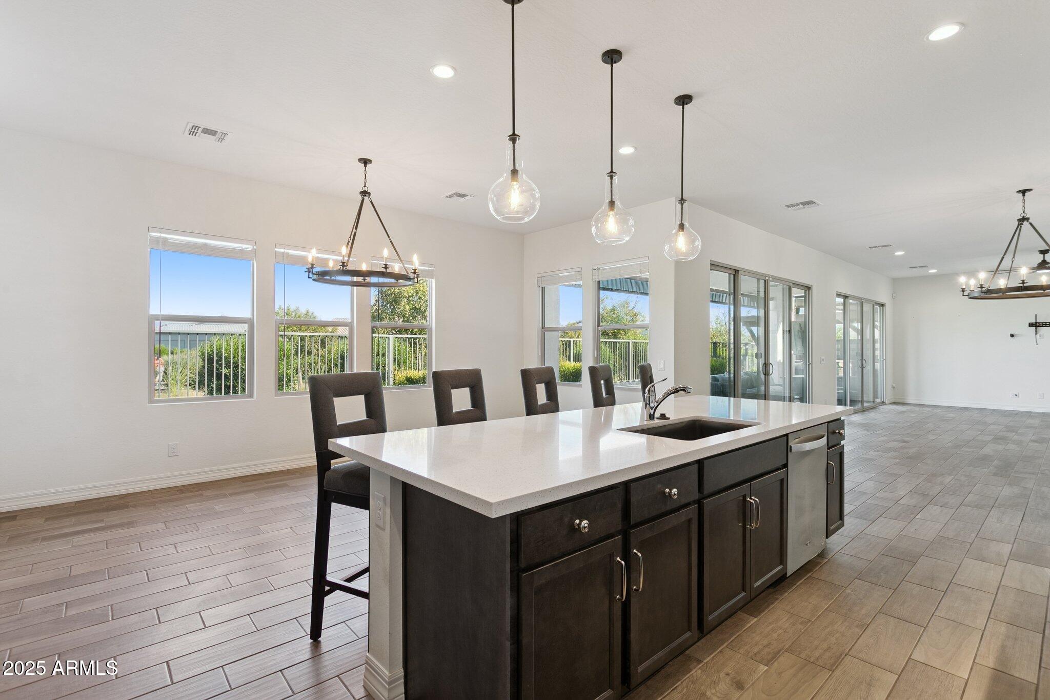 Begin your days in the guard-gated, 55+ Sterling Grove Golf & Country Club in Surprise, Arizona, a master-planned community framed by the White Tank Mountains. Sterling Grove offers a Jack Nicklaus designed 18-hole Troon-managed course, resort-style pools, tennis and pickleball courts, fitness and wellness centers, dining venues, and year-round social programming that turns every season into an opportunity to connect. Within this vibrant setting, the Wayland Spanish model blends Spanish-inspired architecture with modern desert refinement. A sunlit great room with 10-foot ceilings flows seamlessly to a chef's kitchen with gas cooktop, built-in wall oven and microwave, soft-close cabinetry, quartz counters, and an oversized island ideal for gatherings. Formal dining and living spaces