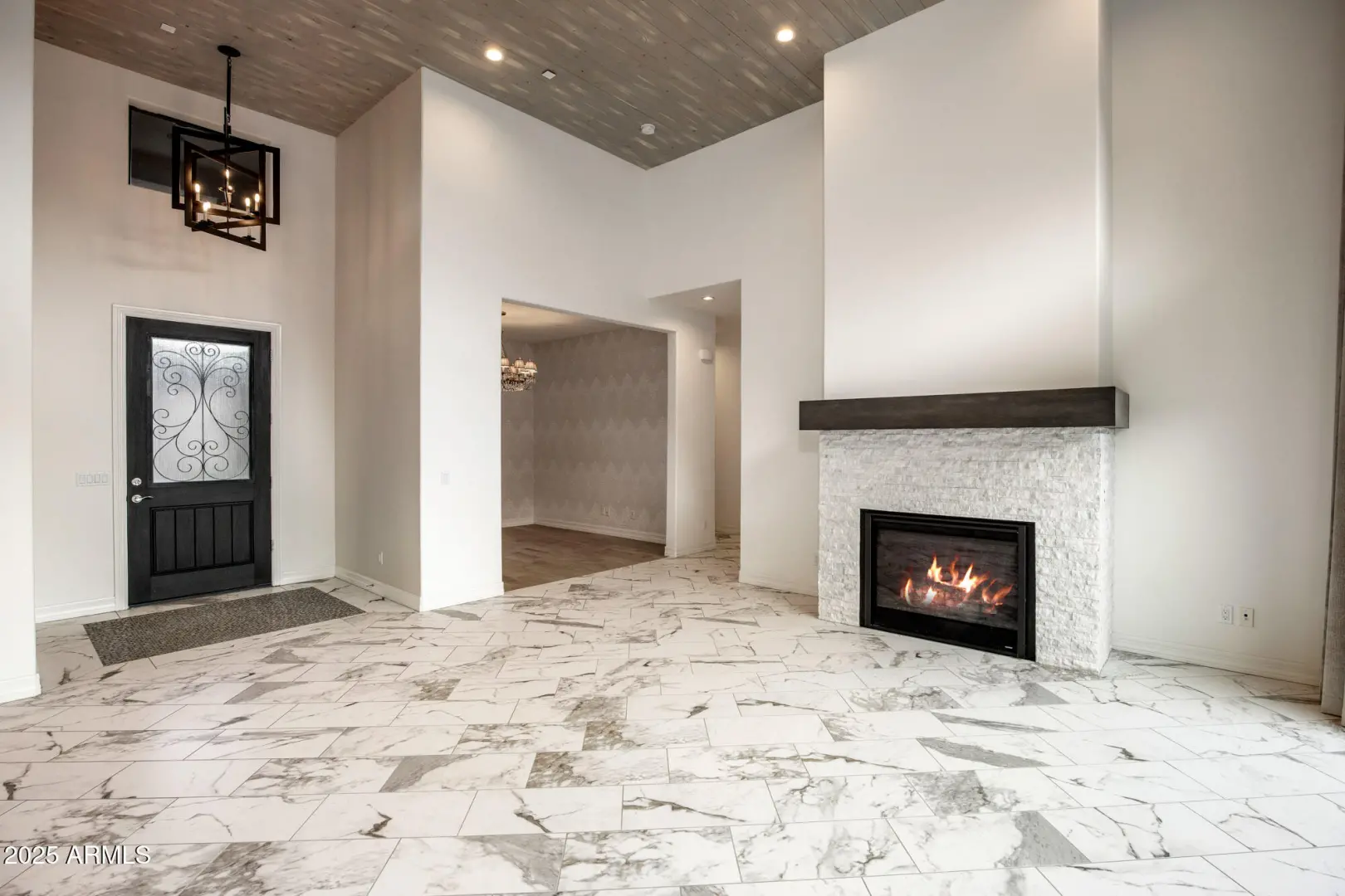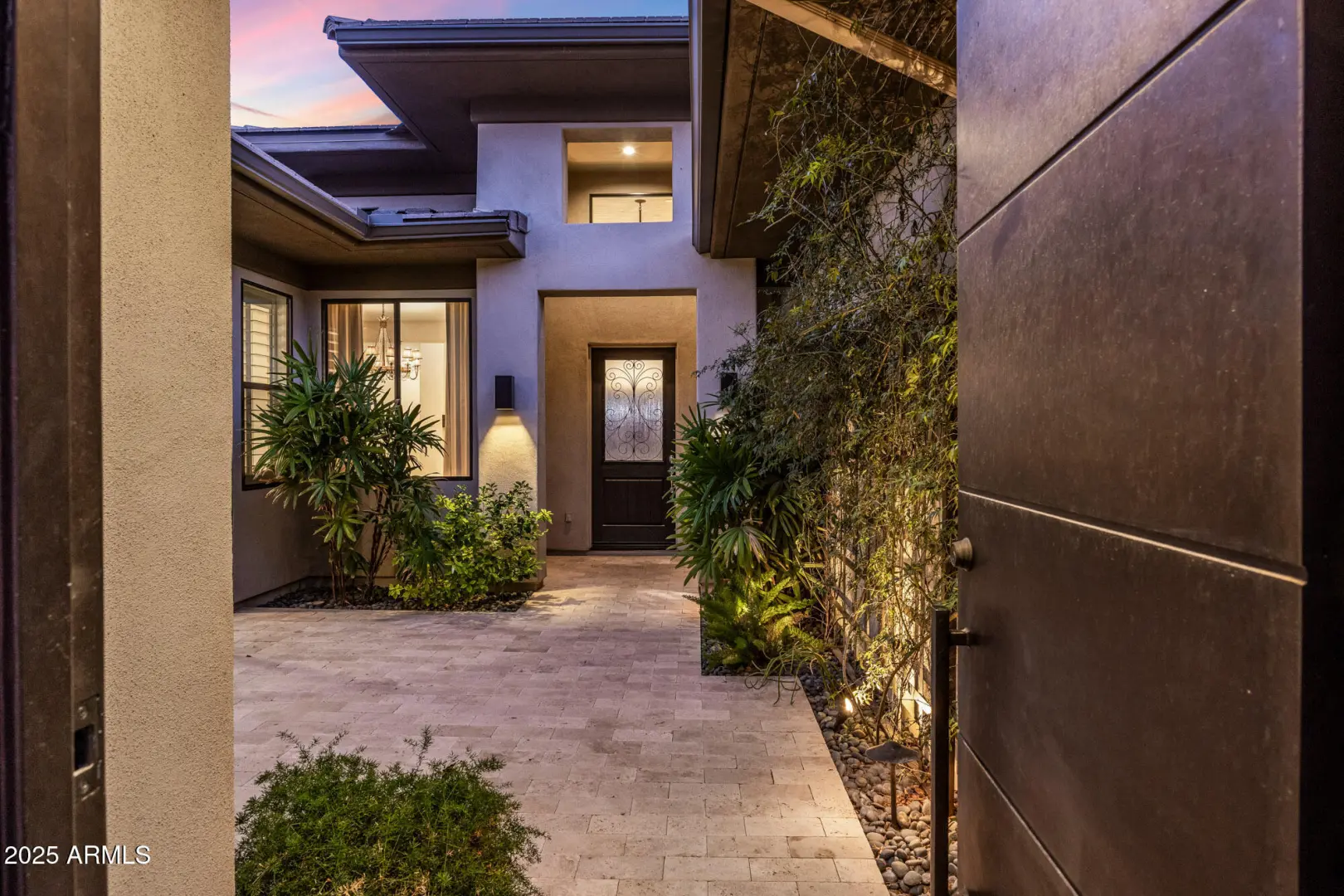 Experience elevated desert living in this stunning contemporary residence tucked behind the gates of prestigious Adero Canyon. This 3-bedroom, 3.5-bath + den/office Parker model by Toll Brothers is framed by dramatic mountain silhouettes and vibrant desert landscaping, capturing the essence of refined Sonoran luxury with its breathtaking indoor/outdoor connection. A modern stone exterior and gated front courtyard create a private, tranquil welcome before entering light-filled interiors defined by soaring ceilings, expansive windows, sleek architectural lines, and effortless livability. The great room centers around a striking stone fireplace and opens seamlessly to the impressive outdoor living spaces. Designed for both grand entertaining and everyday serenity, the resort-style backyard