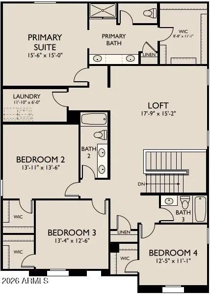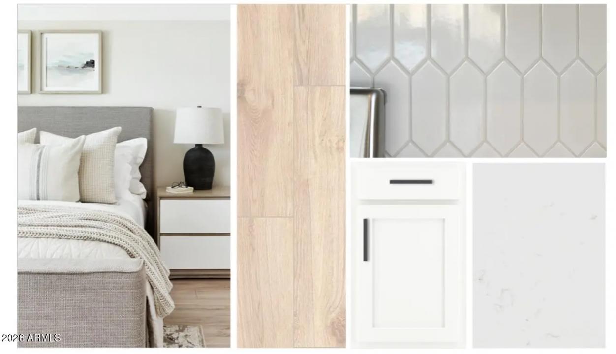This beautifully designed two story Daisy plan offers 5 bedrooms, 4.5 baths, 3,020 sq ft, and a 3 car garage. The open great room and upstairs loft provide flexible living space. The gourmet gas kitchen showcases the Harmony Collection upgrade with 42' white cabinets, quartz countertops, white backsplash, and wood look tile throughout main living areas. The great room opens through a 4 panel slider to a large covered patio, creating a seamless indoor outdoor space ideal for entertaining. Elevated farmhouse exterior with paver driveway extending to the entry. Includes washer, dryer, fridge, blinds, soft water loop, and EV ready, making it turnkey and ready for an easy, stress free move!