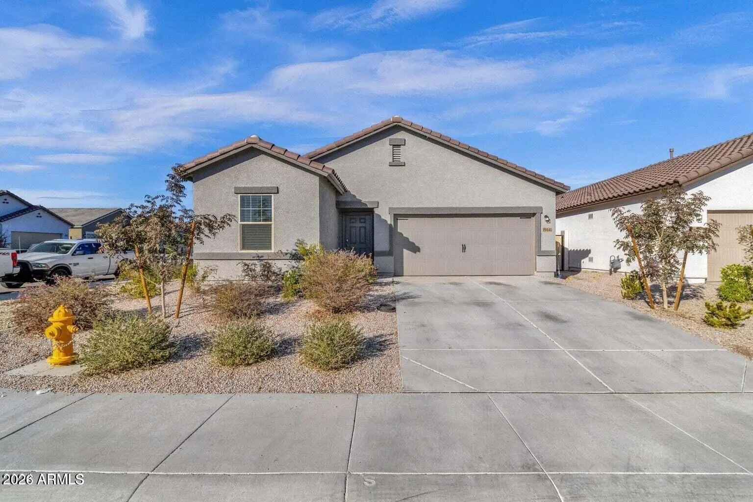 Welcome to this charming, nearly new home, completed in 2022, offering a perfect blend of comfort and simplicity.The interior features attractive white shaker cabinets and durable granite countertops, creating a practical and welcoming kitchen space. The home's efficient split floor plan includes essential amenities like a handy pantry and a well-sized laundry room. Step outside to the large backyard, prepped with rock and ready for your personal landscaping ideas. Inside, enjoy the easy flow of the open floorplan leading to a cozy covered patio. The primary bedroom is comfortably sized with a spacious closet.Located against the beautiful backdrop of the White Tank Mountains, the community features greenspace, a playground, and walking and hiking trails.
