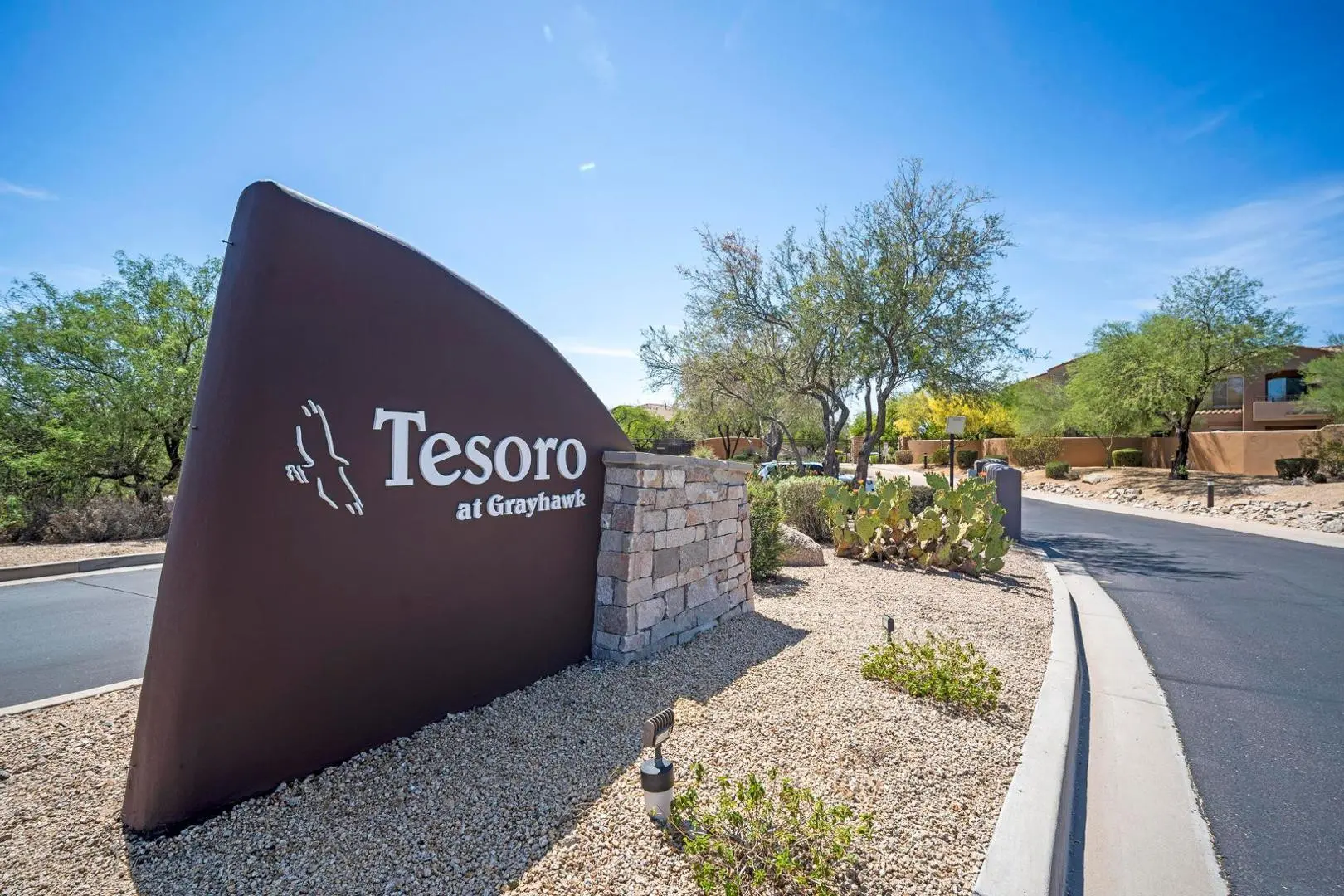Welcome to your home away from home in the world-renowned Grayhawk golf course community. This tastefully decorated two-story townhome is within the gated community of Tesoro Grayhawk, with 1,666 square feet of luxurious Scottsdale living. It has 2 bedrooms + a den, 2.5 baths, and mountain views. You will enjoy all the comforts of home as it is fully equipped, plus an attached 2 car garage. Enjoy the resort-like amenities including access to a heated swimming pool, spa, and exercise facility.