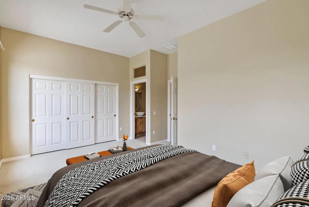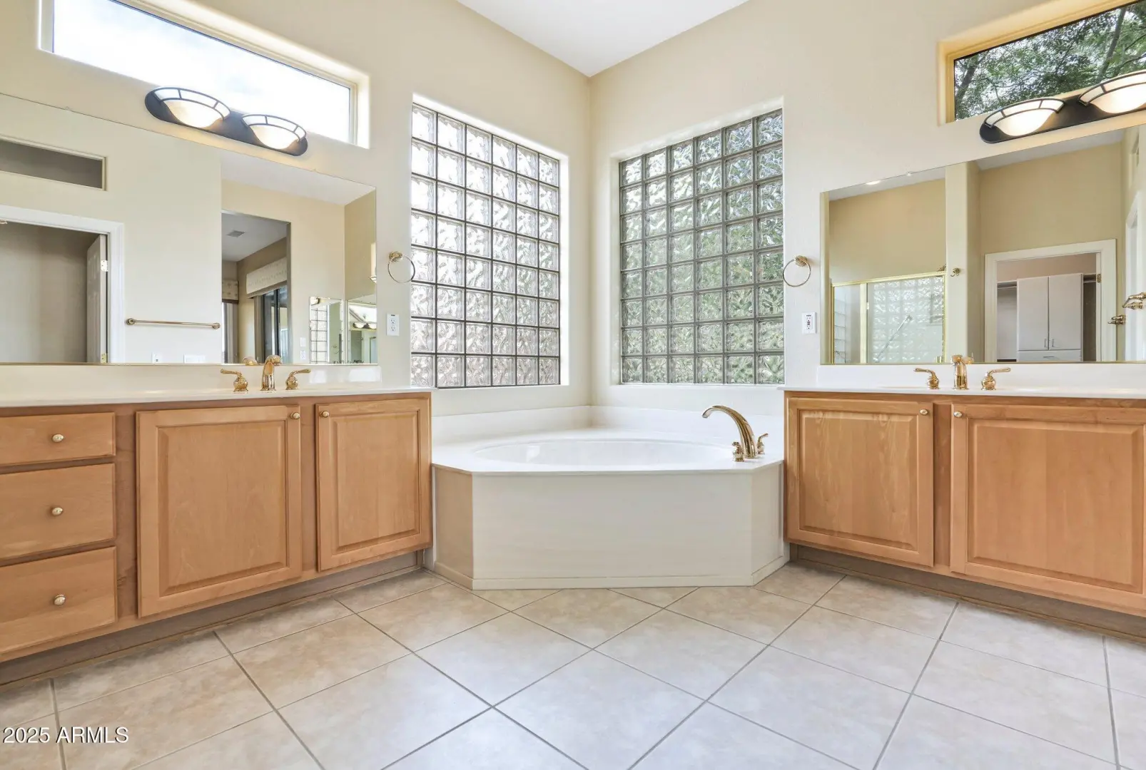 Step into comfort and style in this beautifully maintained home with fully owned solar, offering energy savings from day one—nestled in the coveted Grand community of Surprise! From the moment you arrive, you're greeted by one of two serene water features that set the tone for this peaceful retreat. Inside, you'll find a spacious and bright layout with formal living and dining areas, a cozy den, and a kitchen that boasts a bay window, double-door pantry, center island, and extended breakfast nook—perfect for morning coffee or casual meals. The owner's suite is a private haven, featuring patio access, a luxurious jetted tub, separate shower, dual vanities, water closet, and an oversized walk-in closet. Guests will love their own ensuite bedroom, and there's a charming powder room as well.