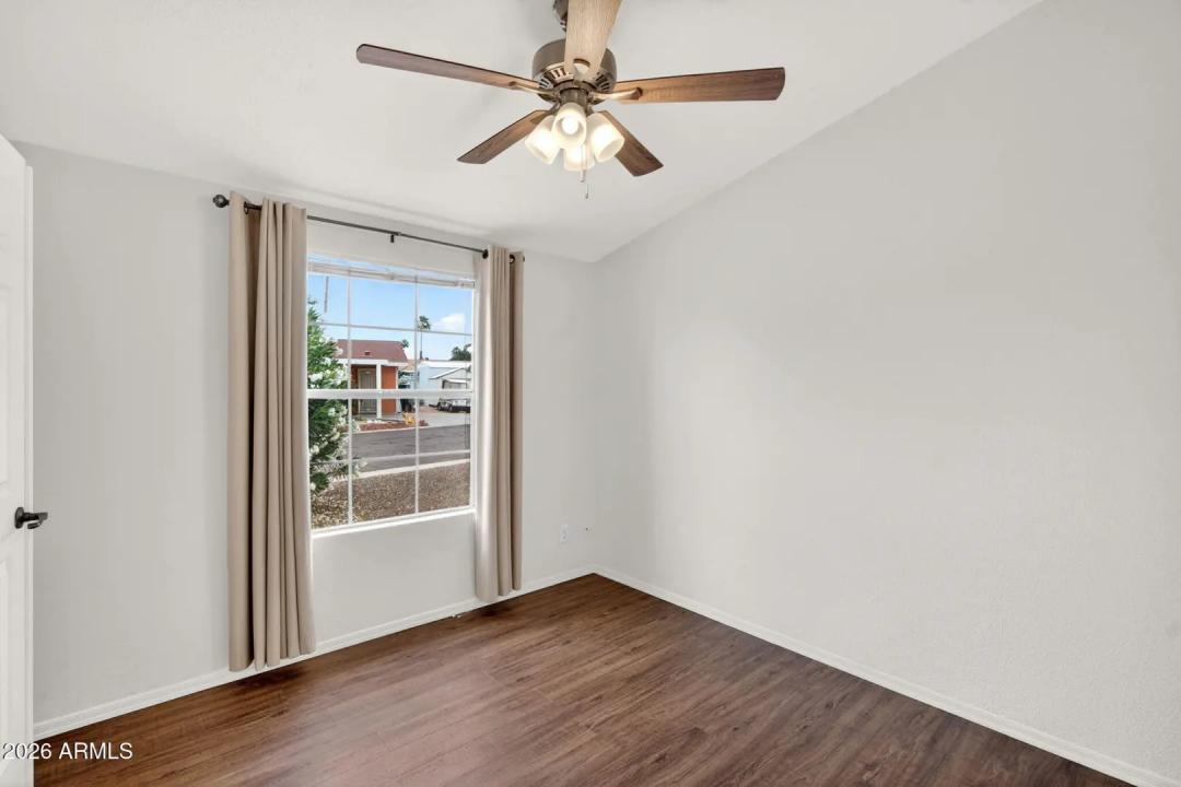 Welcome to your ideal retreat in the 55+ gated community of Hacienda de Valencia--where resort-style living meets everyday comfort. Perfectly positioned on a desirable interior corner lot, this home offers added privacy with fewer neighboring homes and a peaceful, quiet setting--all while being just a short stroll to one of the community pools and clubhouse . This spacious and thoughtfully updated residence features 2 bedrooms plus a versatile den, 2 full bathrooms, and a bright, open layout designed for both relaxation and entertaining. Vaulted ceilings and abundant natural light create an inviting atmosphere throughout the main living areas. Recent upgrades enhance both style and functionality, including updated flooring, remodeled kitchen