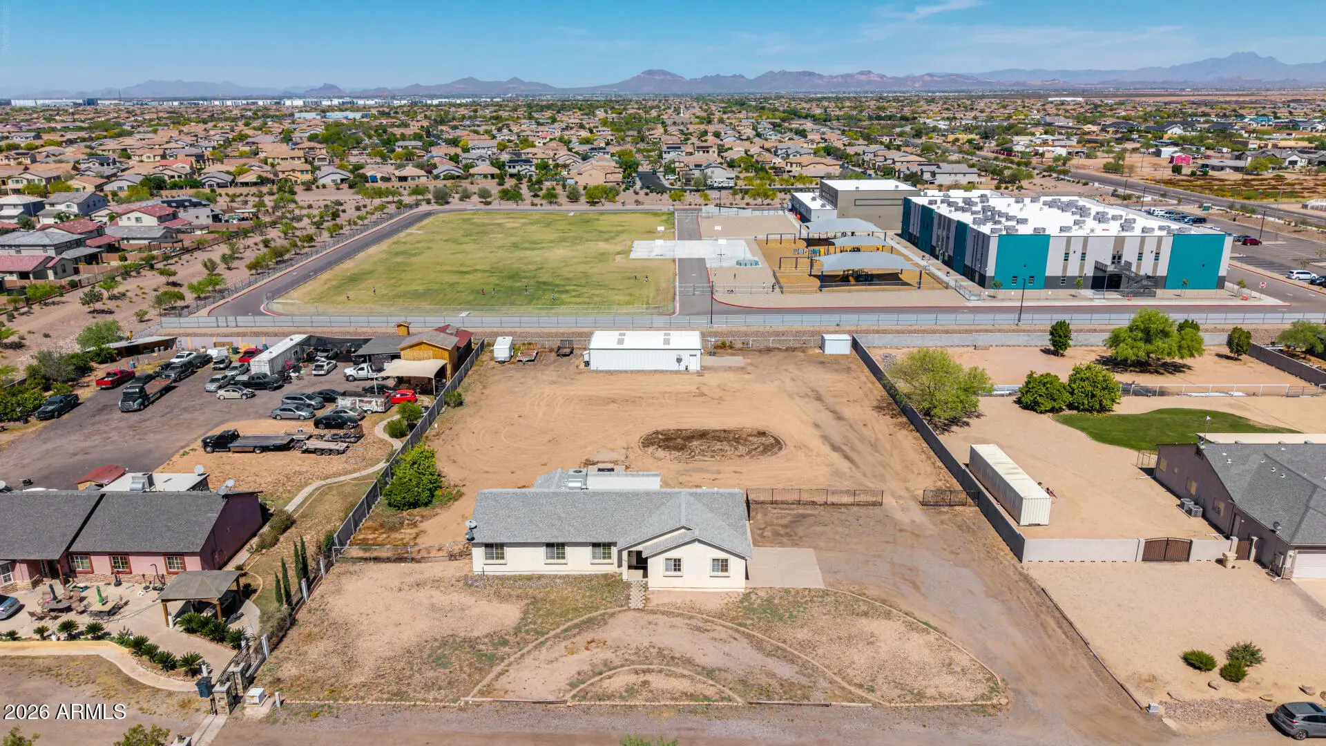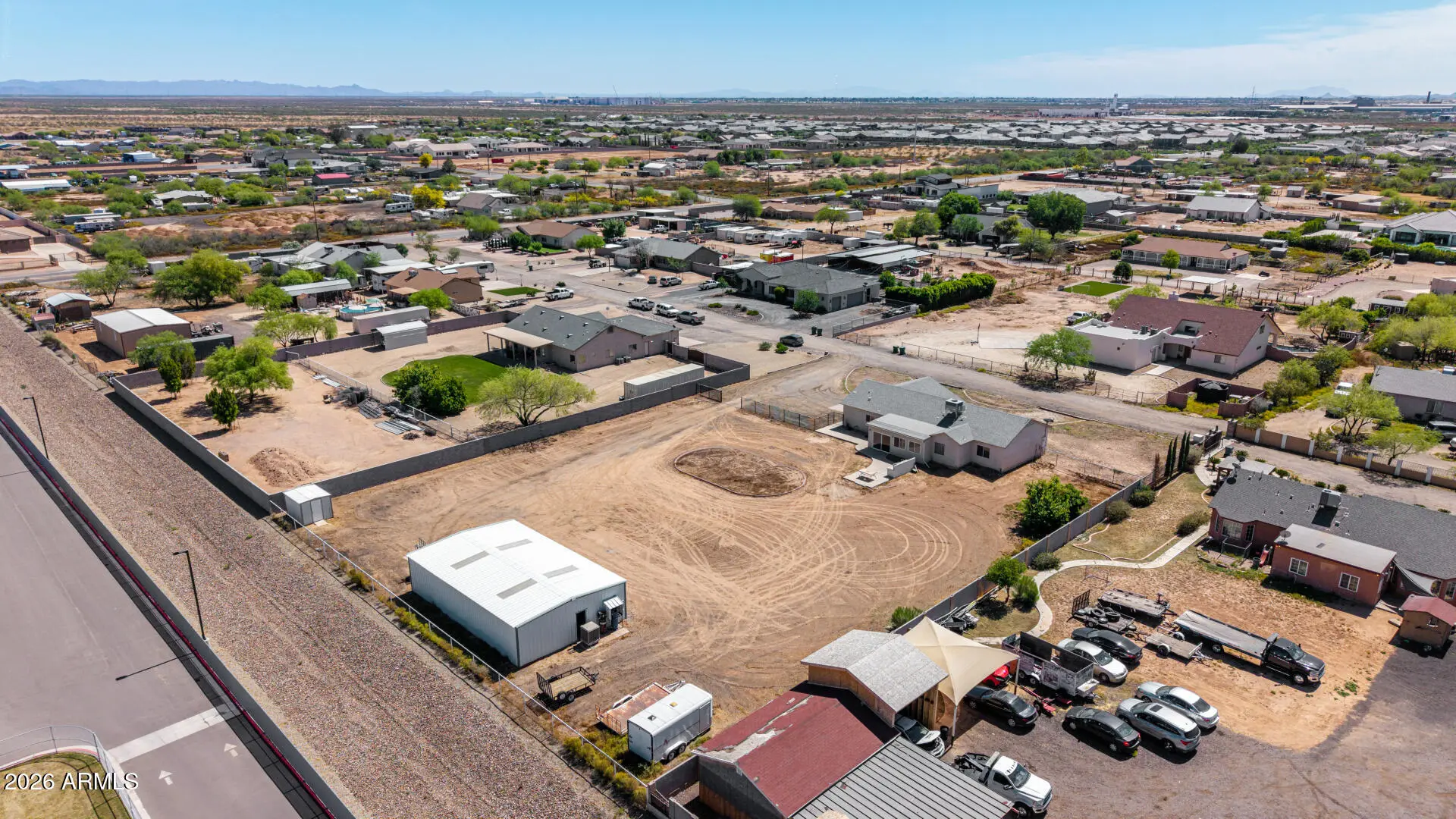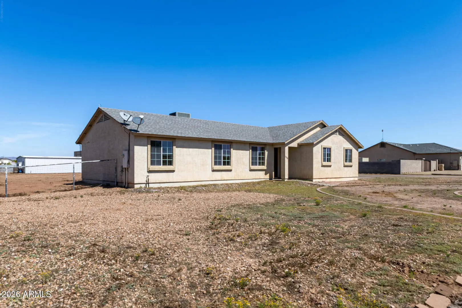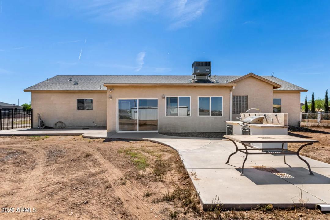 Rare opportunity to own a 1.17-acre property with a detached shop in one of Mesa's fastest-growing and most sought-after areas! Whether you're a small business owner or a family needing space for all the toys, this property offers the flexibility and freedom that's getting harder to find. The single-level home features 3 bedrooms, 2 bathrooms, and approximately 1,650 square feet with a functional great room layout, eat-in kitchen, and tile in all the right areas. In addition to the main living spaces, there is a versatile den that can be used as a home office, media room, or flex space to fit your needs. The primary suite includes a full bathroom with separate tub and shower and a walk-in closet.