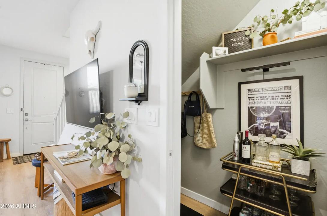 Welcome to This Beautifully Maintained 3 Bed 2.5 Bath Townhome with 2-Car Garage In Highly Sought-After Copper Leaf Community! Main Floor Showcases Luxury Vinyl Wood-Plank Flooring, Open, Airy Layout with Kitchen Featuring White Cabinets, Stainless Steel Appliances and Quartz Countertops + Half Bath and Laundry Closet with Stacked Washer & Dryer. All Three Bedrooms Are Upstairs: Primary Suite Features Walk-In Closet, Shower-Tub Combo and Private Balcony with Peaceful North-Facing View. Two Additional Bedrooms Share Full Bathroom with Shower-Tub Combo. Enjoy Resort-Style Living with 2 Community Pools & Spas, Green Spaces, Walking & Biking Paths, Playgrounds and Basketball Court. A True Community Feel. Conveniently Located Minutes From Downtown Phoenix, Sky Harbor Airport & South Mountain.