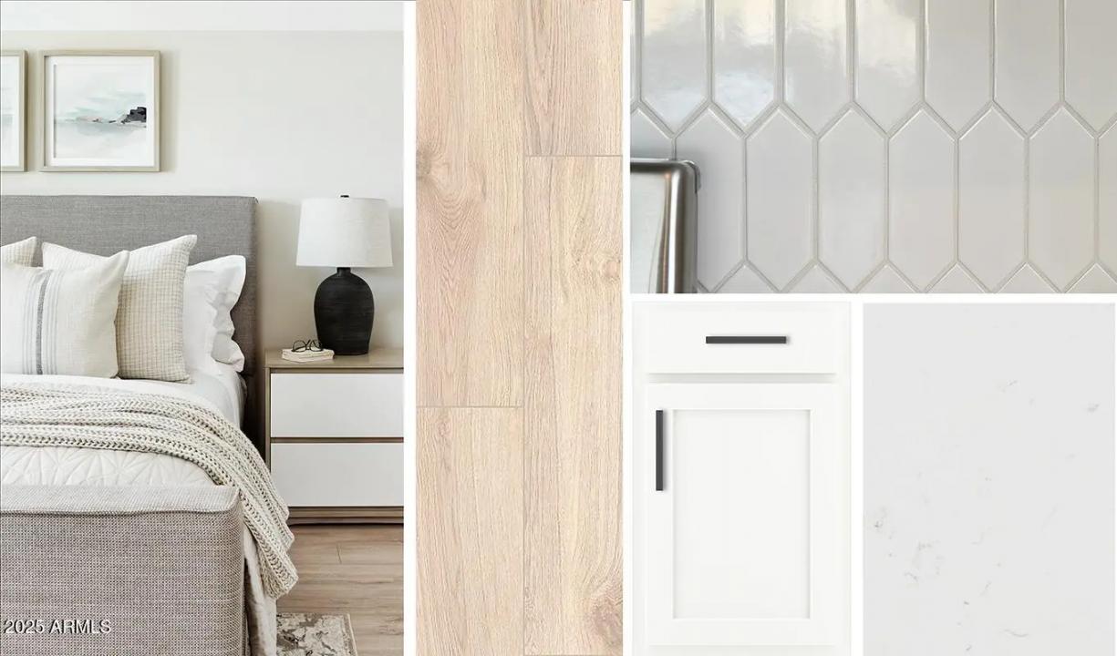 Welcome to this Spanish-style 2,219 sq. ft. Sunflower floorplan! This 4-bed, 3-bath gem features a flexible guest suite perfect for visitors, an office, or creative space. The kitchen shines with 42'''' white cabinets, quartz counters, and a spacious island that flows into the great room with 4-panel sliders for seamless indoor-outdoor living. Wood-look tile adds elegance, while plush bedroom carpet creates cozy comfort. The serene primary suite offers dual sinks with satin nickel fixtures and a generous walk-in closet. Enjoy life at Wales Ranch with walking paths, a scenic lake, open green space, picnic areas, parks, and pickleball courts just steps away.