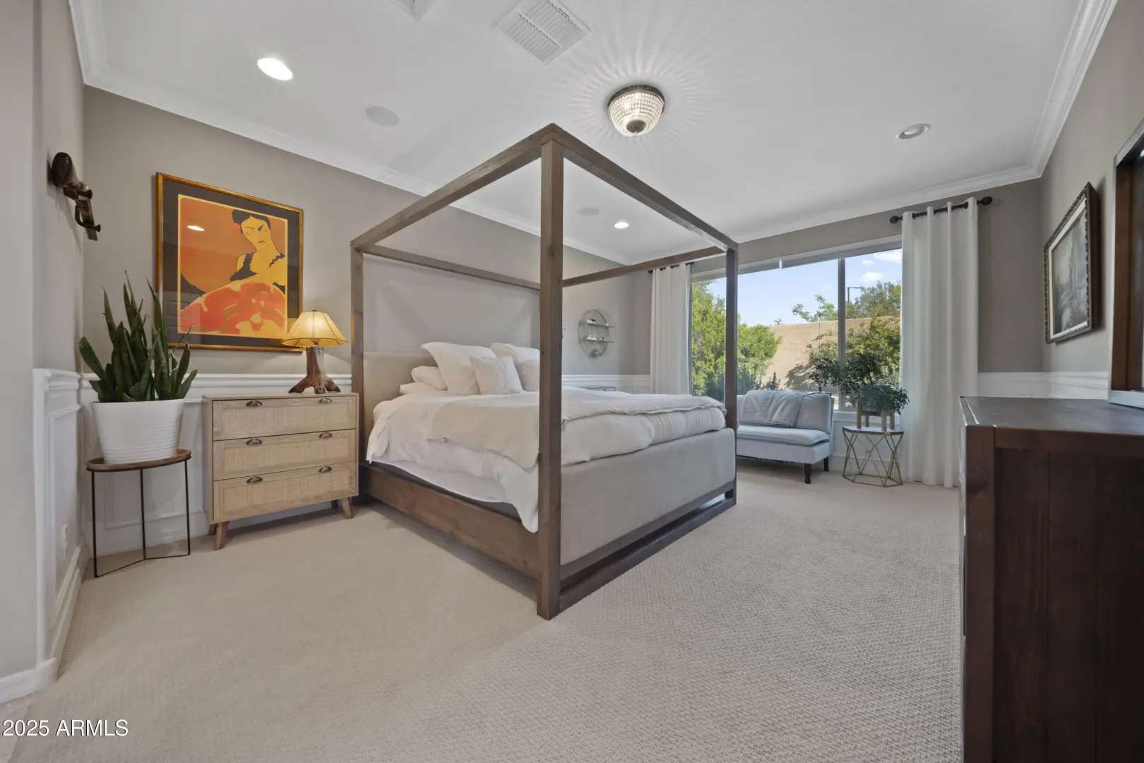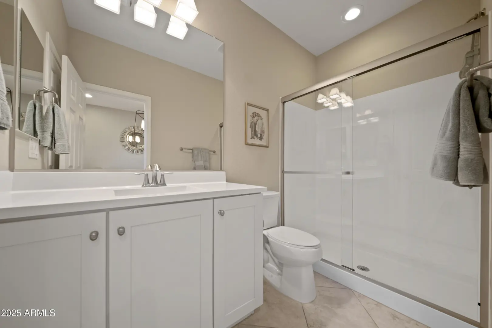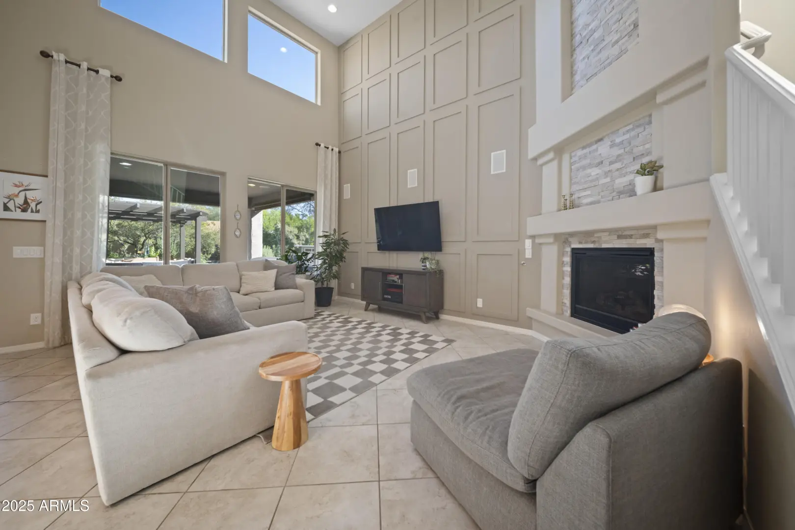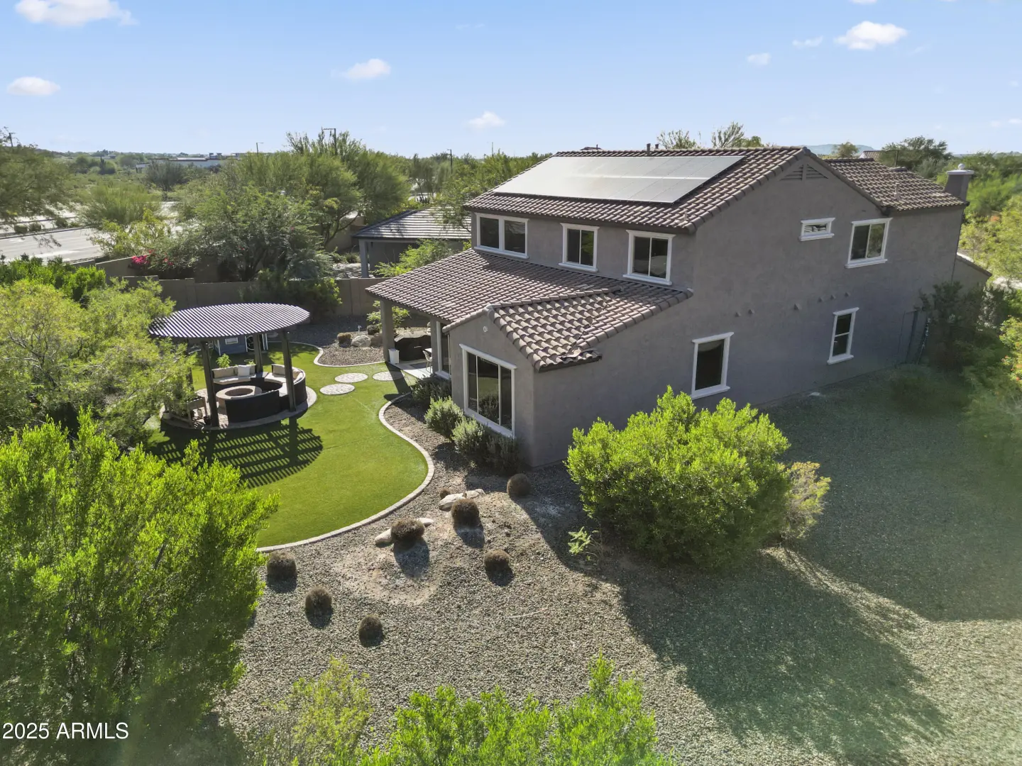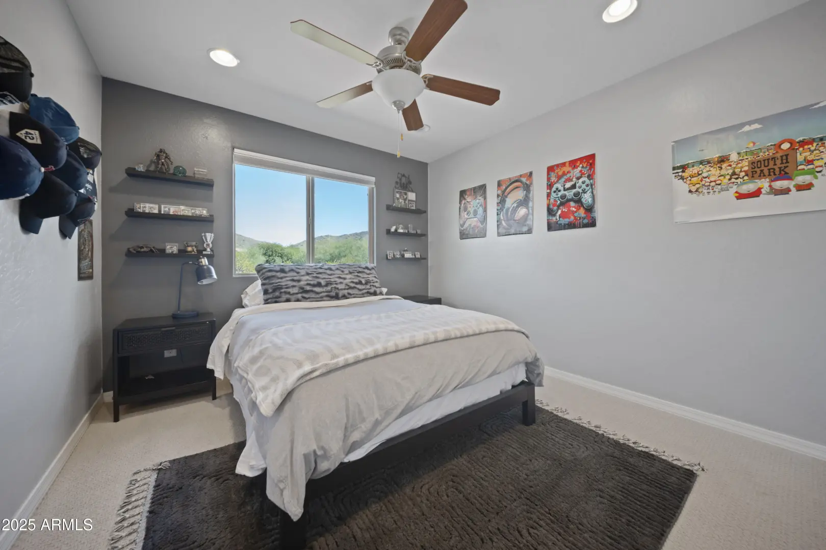 Discover this upgraded 5-bedroom, 4.5-bath home with a den and 2-car garage, perfectly situated in the Fireside at Norterra gated community. A primary suite upstairs and another primary suite downstairs offer ideal flexibility for guests or multi-generational living. The open, light-filled former model home is designed for comfort and entertaining, featuring a fireplace with stone detail, a modern kitchen, and a landscaped backyard. Owned solar keeps costs down. Fireside at Norterra residents enjoy world-class amenities including a 16,000 sq ft community center, 2 pools, fitness center, sauna, tennis & basketball. Nestled between the Sonoran Preserve and Norterra, you'll have access to 14+ miles of hiking trails as well as shopping, dining, and entertainment close by. Don't miss this gem.