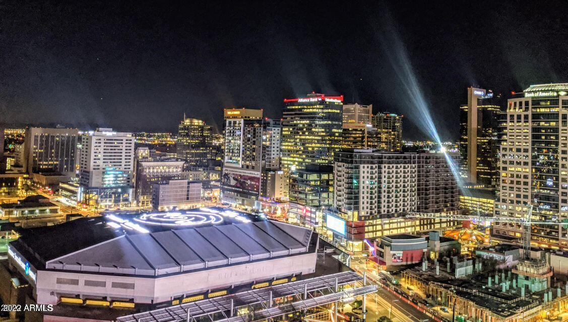 Modern urban high-rise lifestyle in the heart of the nation's fastest growing city, steps from PHX light rail! Over 1400 ft ALL UTILITIES AND INTERNET INCLUDED! Property nicely upgraded with hardwood floors granite kitchen with bar overhang, aluminum frame floor to ceiling windows, 2.5 baths and more. Desired NW corner lot location with wraparound balcony for those beautiful AZ sunsets and city light views! Amenities; 24-hr desk/guard, underground parking, 24-hr fitness center with dry spalocker room, 5th floor heated pool/hot tub, storage, beautiful rooftop terrace clubhouse with fire pit and more.