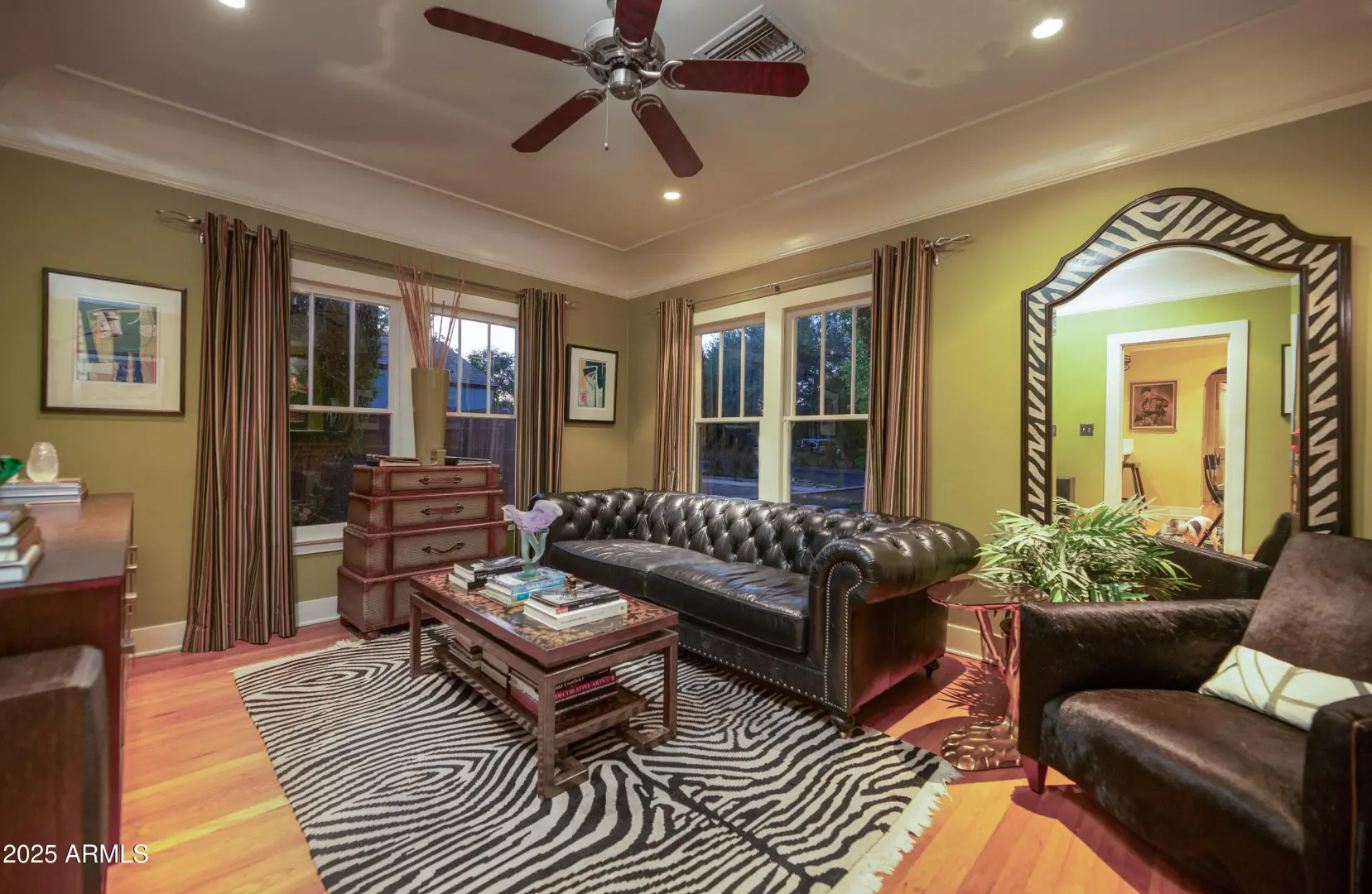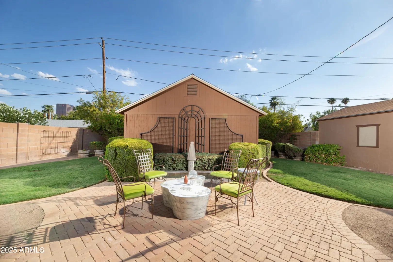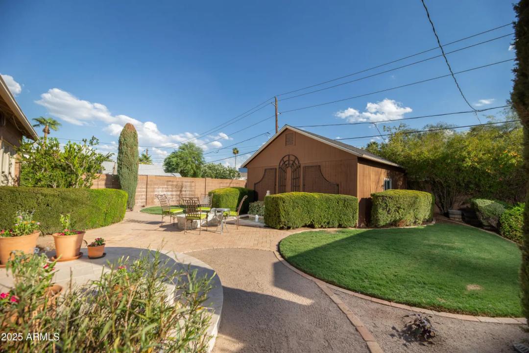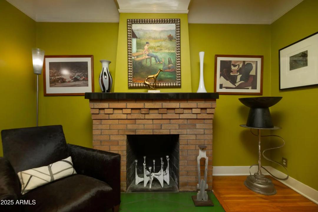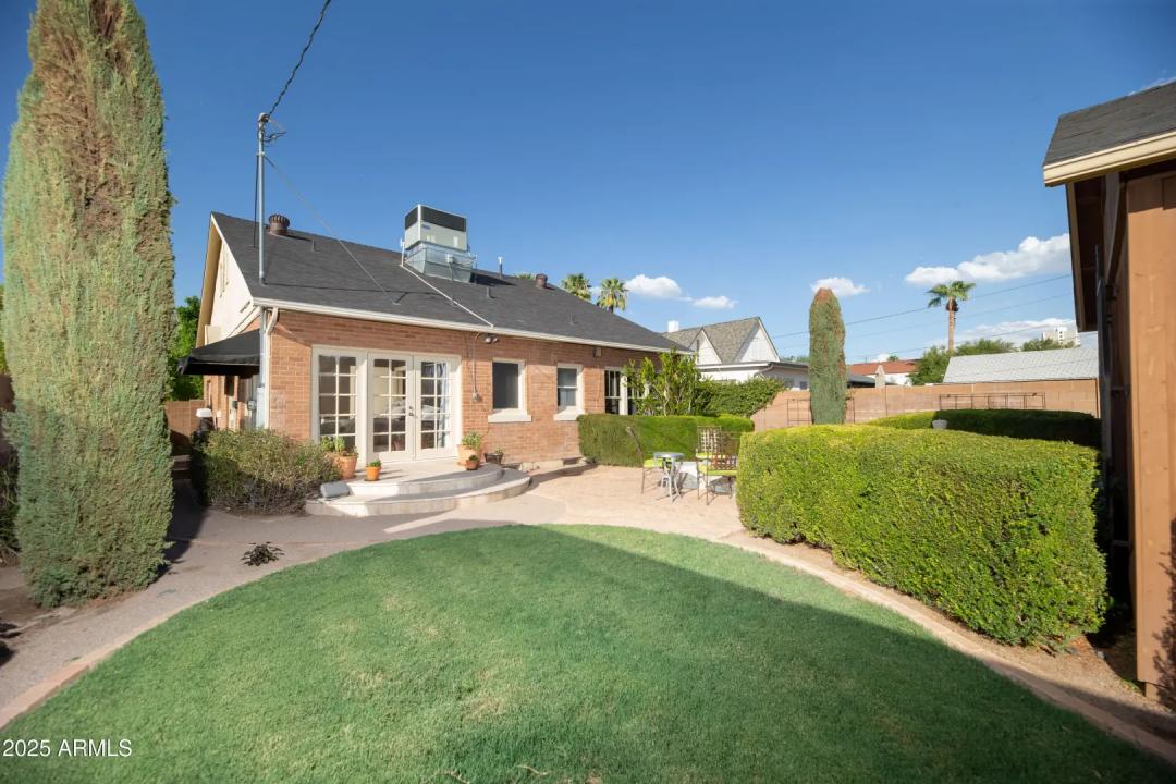 This stunning red-brick Tudor sits proudly on one of the best blocks in popular Willo Historic District! Thoughtfully reimagined inside and out by current owner, a renowned local interior designer, this home blends timeless historic charm with sophisticated design. The inviting floor plan features both a formal living room & a spacious family room—each with/ a charming brick fireplace. The kitchen flows seamlessly into a large dining room, perfect for entertaining. Two private bedroom wings, each with their own bathroom, provide comfort and privacy. Historic details abound, including original hardwood floors, wood-framed windows, and built-in closets/cabinetry in both hallways. A 400' detached structure offers incredible potential—convert back into a rear-entry 2C garage or guest casita!