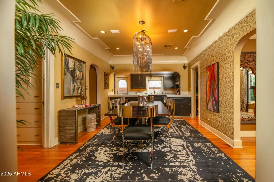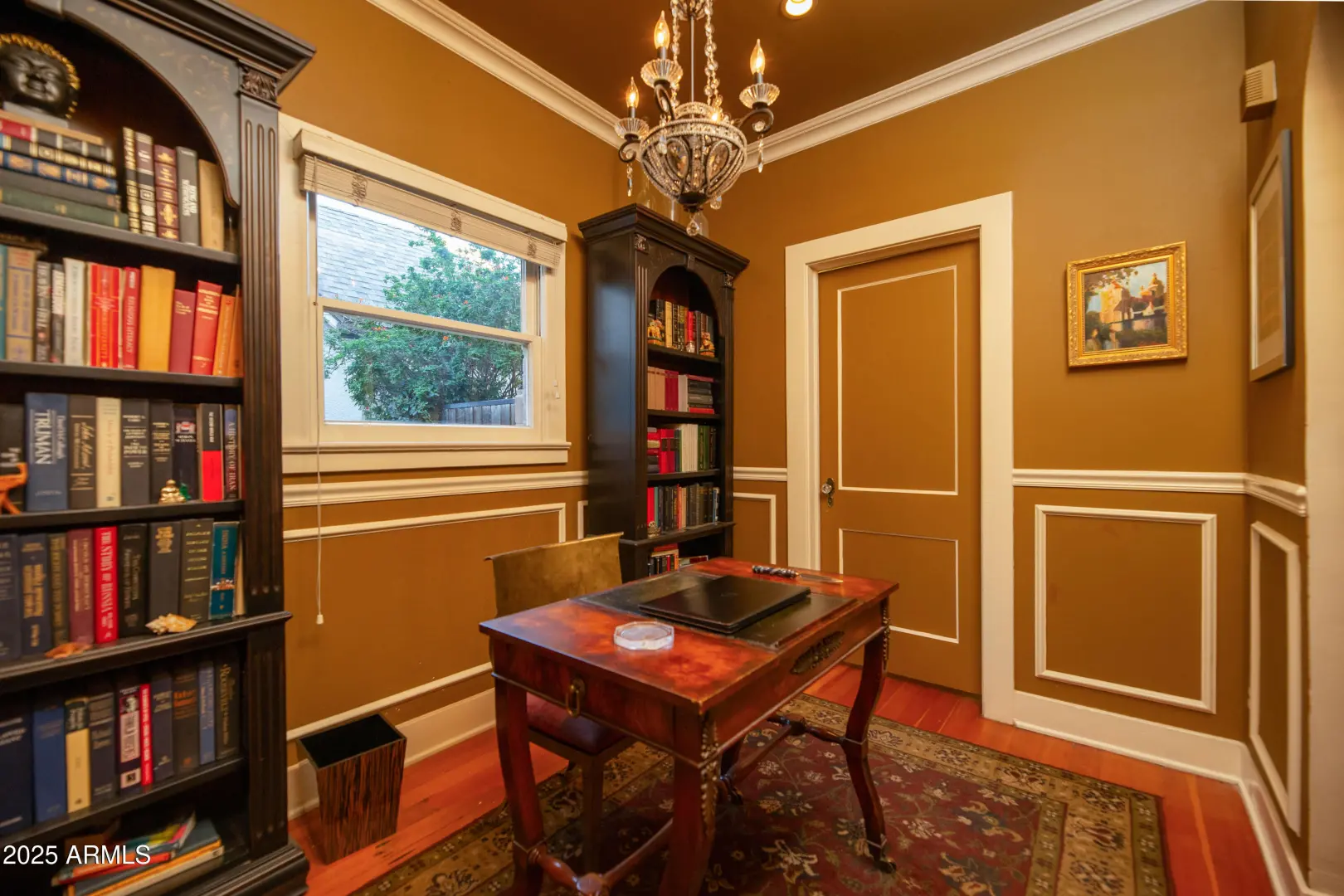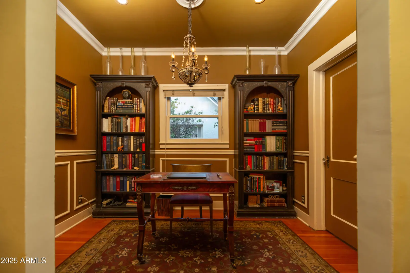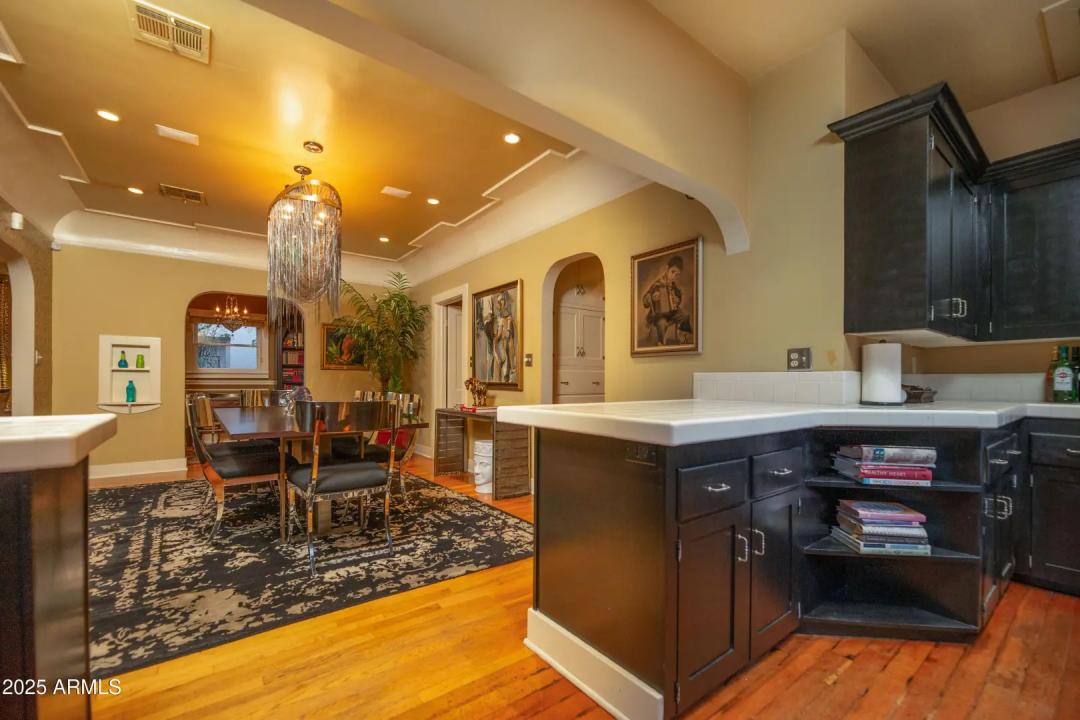 This stunning red-brick Tudor sits proudly on one of the best blocks in popular Willo Historic District! Thoughtfully reimagined inside and out by current owner, a renowned local interior designer, this home blends timeless historic charm with sophisticated design. The inviting floor plan features both a formal living room & a spacious family room—each with/ a charming brick fireplace. The kitchen flows seamlessly into a large dining room, perfect for entertaining. Two private bedroom wings, each with their own bathroom, provide comfort and privacy. Historic details abound, including original hardwood floors, wood-framed windows, and built-in closets/cabinetry in both hallways. A 400' detached structure offers incredible potential—convert back into a rear-entry 2C garage or guest casita!