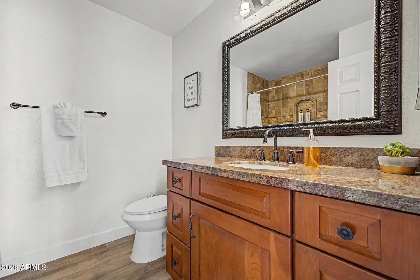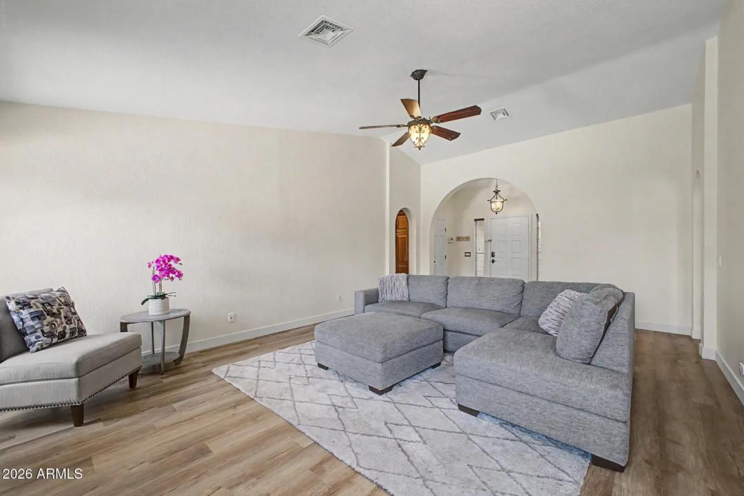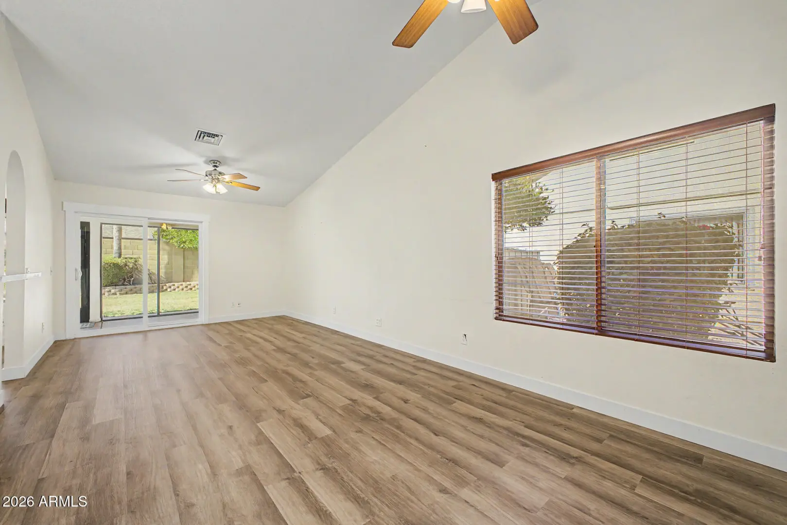 Experience the perfect harmony of contemporary style and timeless design in this comfortable 3 bed / 2 bath home. Inside you'll find brand new luxury vinyl plank flooring. Step outside to see your backyard pool, grass area, and screened in porch to let the breeze in! Enjoy an upgraded kitchen with open conversation to the family room, and adjacent built-in office for convenience. The primary bedroom has backyard access through stylish French doors, and a spacious en-suite bathroom. The living room is a wonderful hang out space with great natural light, fireplace, and mantle. Come and see this home in a fantastic location close to all the shops and restaurants in North Phoenix and Scottsdale!