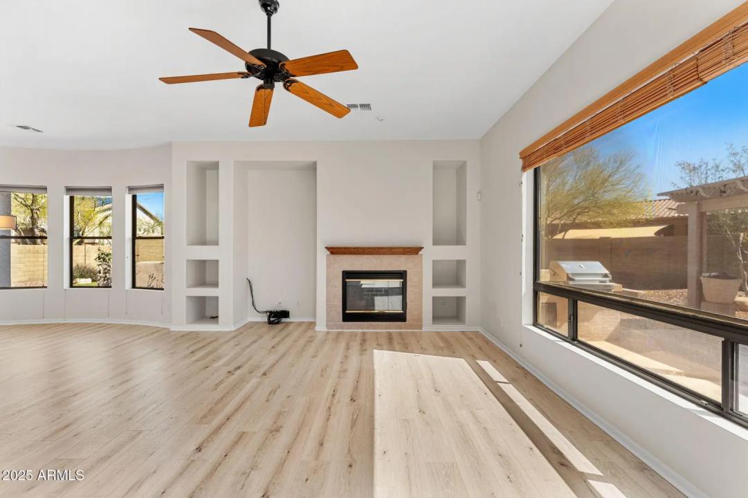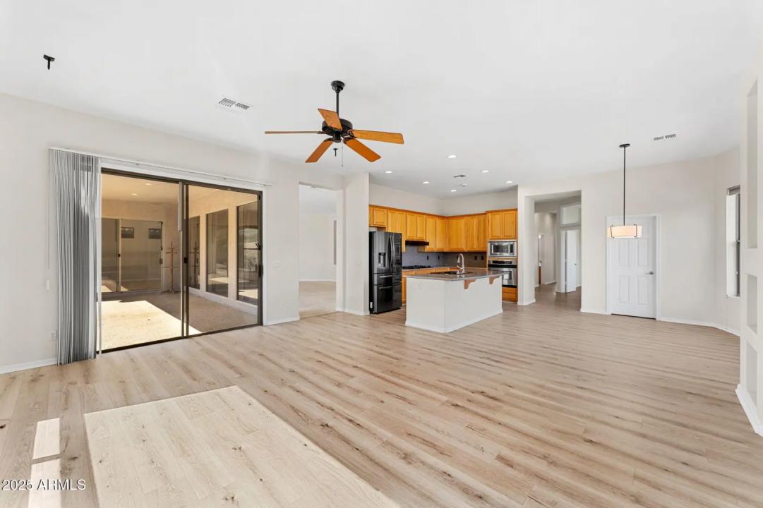 CHECK OUT R NEW LOOK-NEW LIGHT COLORS OUTSIDE/INSIDE UPDATED single-story family home, offering the perfect blend of comfort, charm, and outdoor living. Nestled in a peaceful neighborhood meticulously maintained, this home boasts NEW wood flooring, NEW finishes and a thoughtfully designed expansive floor plan with four spacious bedrooms to accommodate your family, friends & visitors. The heart of the home features an open-concept living and dining area, perfect for entertaining or relaxing with loved ones. Large windows throughout allow for natural light to fill the space, creating a bright and inviting atmosphere. Relax in the Primary Oasis with spa inspired bath & large walk-in closet. Step outside into your private backyard oasis, where you'll find a stunning oversized pool,