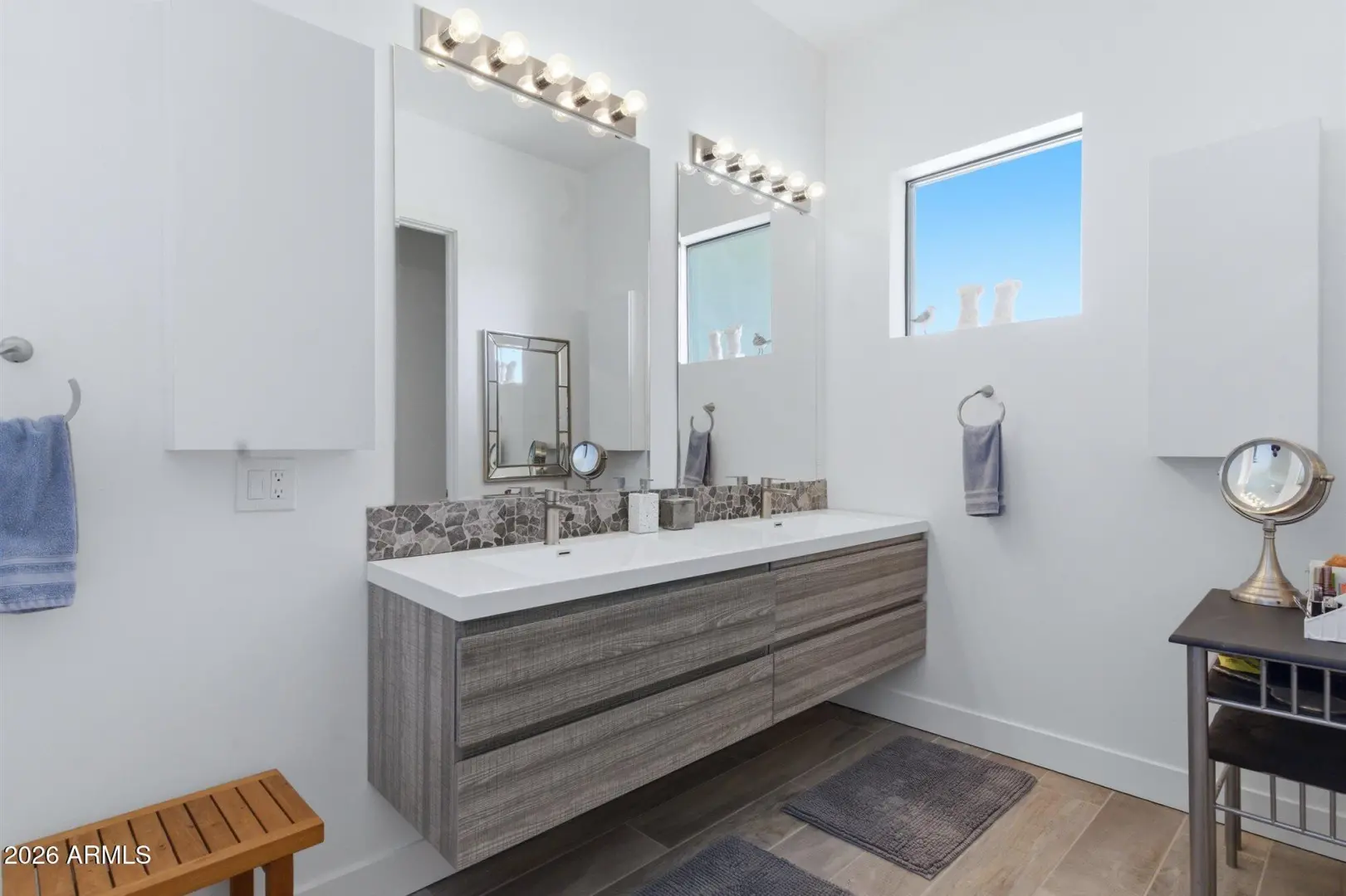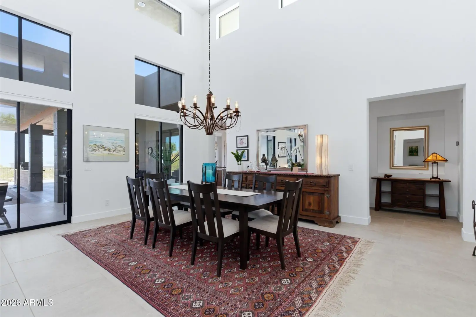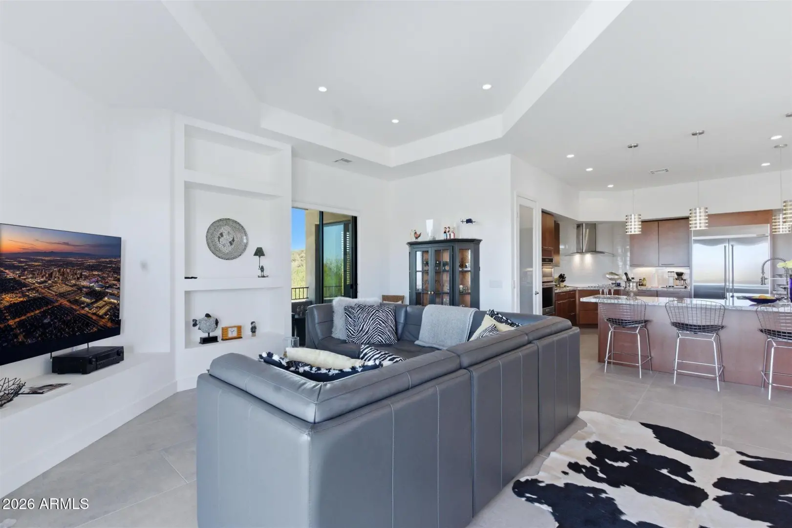 WELCOME HOME! ~Modern Scandinavian Luxury in Tonto Hills~ Experience elevated desert living in this exceptional modern Scandinavian-style residence, ideally positioned on a private 1.75-acre hillside lot at 3,455 ft in Tonto Hills. Surrounded by panoramic 360° views of Four Peaks, Weaver's Needle, and the Tonto National Forest, this custom home blends timeless Nordic design with Arizona's natural beauty. Designed for both serenity and entertaining, it offers over 2,400 sq. ft. of indoor-outdoor living including expansive patios, a spa, and elegant alfresco dining areas. The open-concept living space features soaring 20-ft ceilings, a sleek LED fireplace, and a chef's kitchen with waterfall granite countertops and premium KitchenAid appliances.