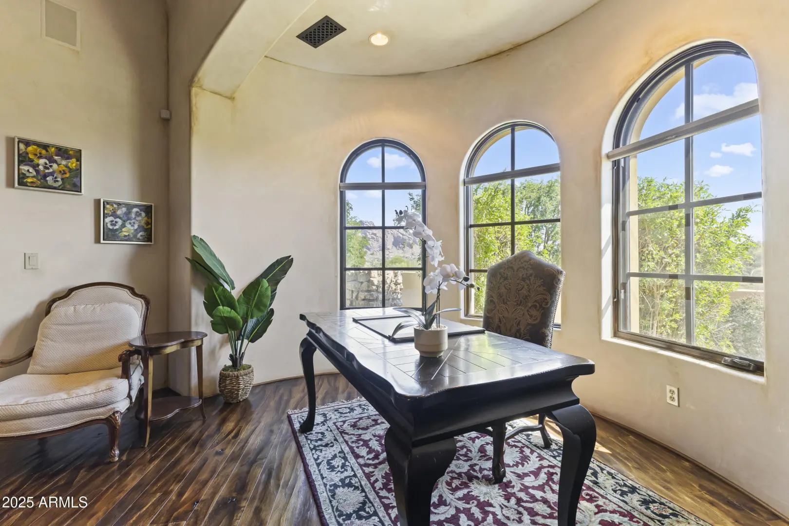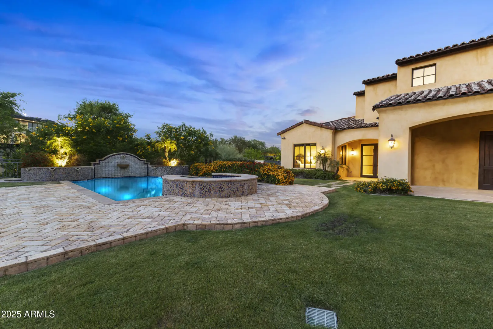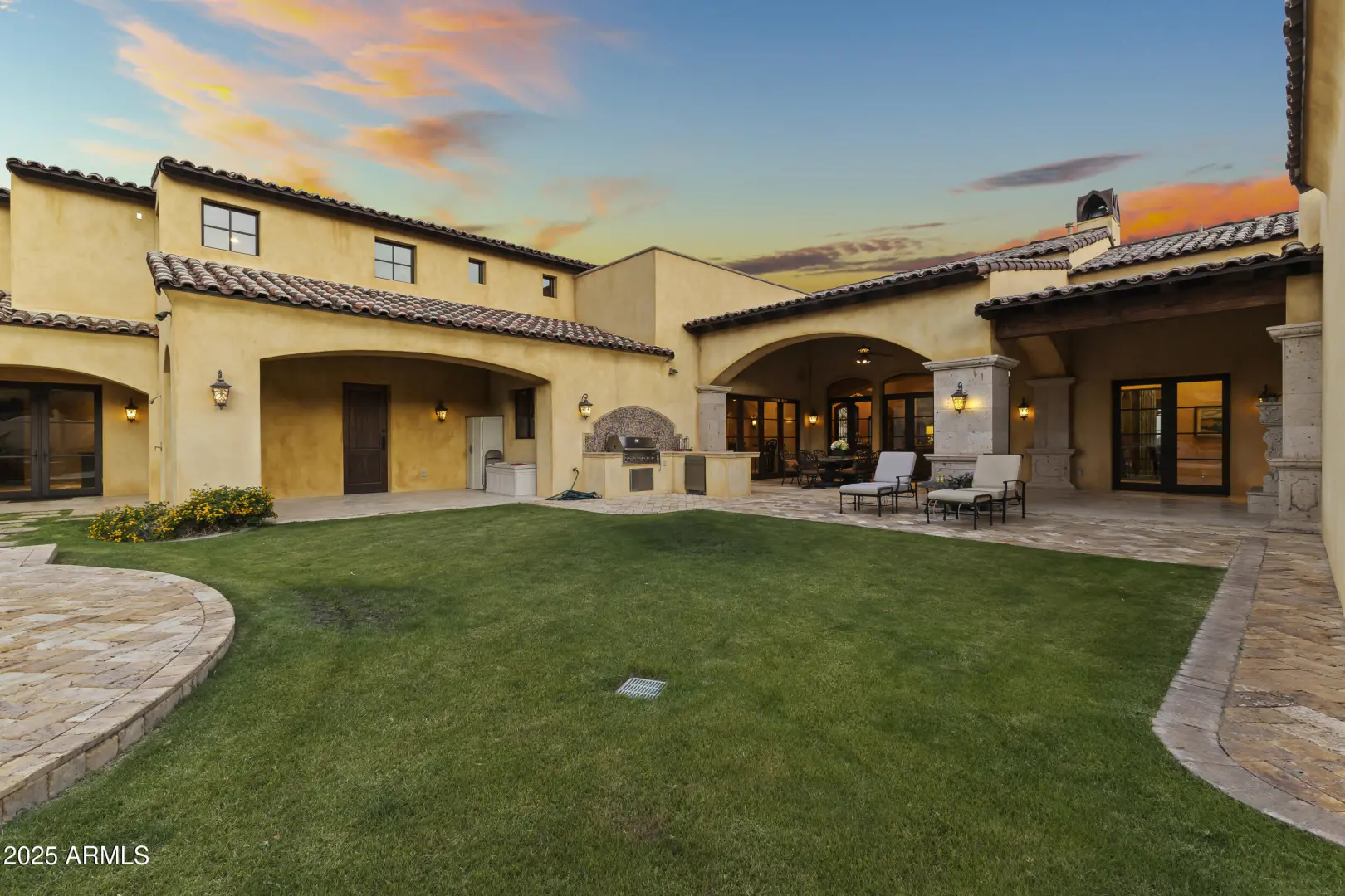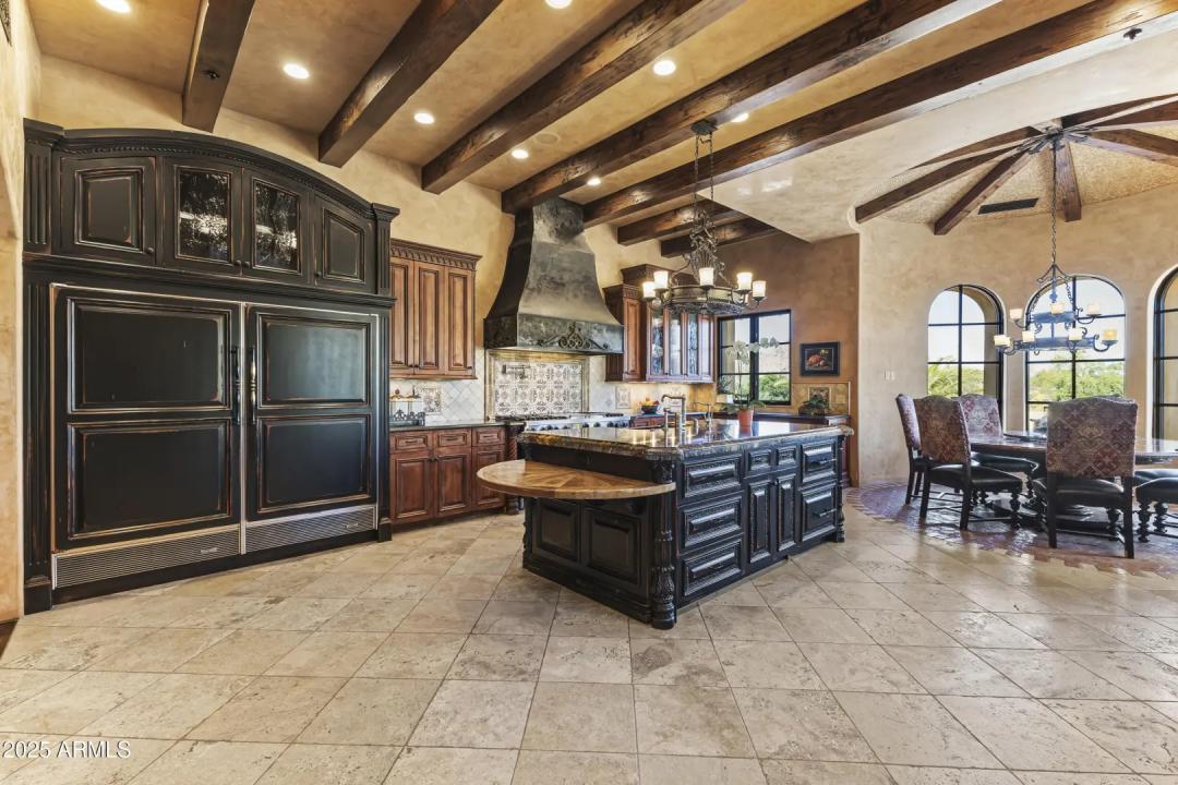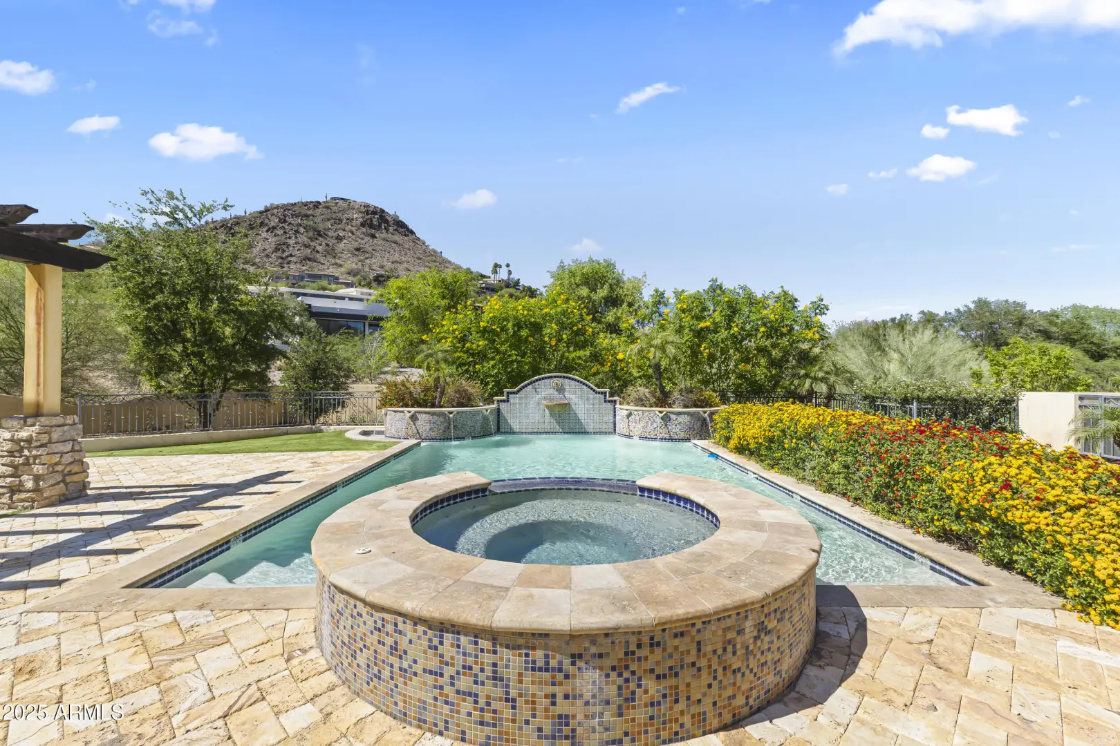 This exquisite hillside home built by renowned luxury builder Bedbrock Developer is perfectly positioned to capture stunning views of Camelback Mountain. Surrounded by a privacy wall, it showcases Mediterranean design such as Venetian plaster, terracotta roof tiles, arched entryways, Wrought iron accents & remote entry gate. Home features soaring ceilings with exposed wood beams and rich natural stone. The gourmet kitchen opens to a spacious family room with wet bar, wine cellar, primary suite with large walk-in closet, media room, formal dining room & living room w/French doors opening to resort style backyard & separate guest suite. The outside is a true retreat complete with a sparkling pool and spa, a mini soccer field, basketball/sport court and multiple patios. Prime location!
