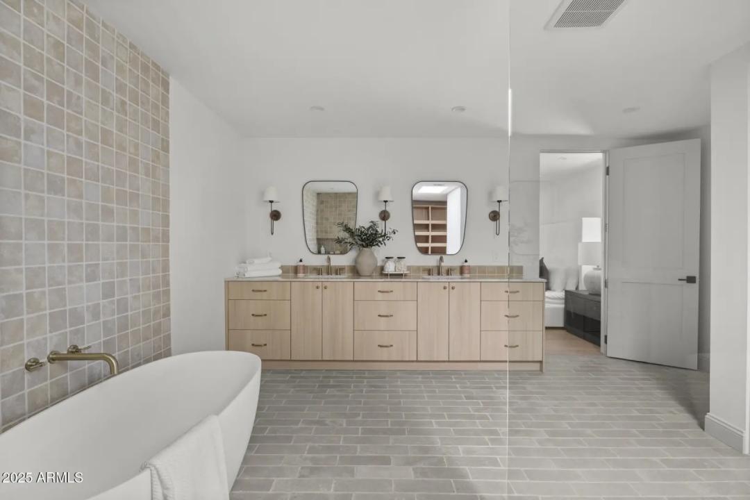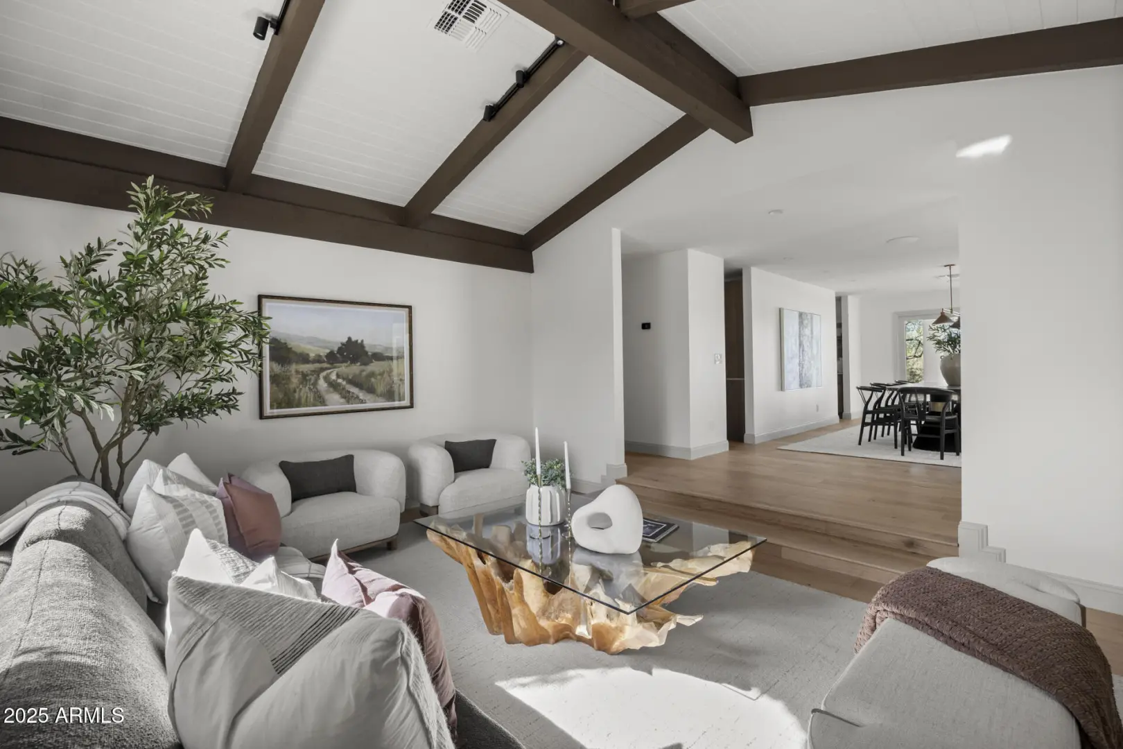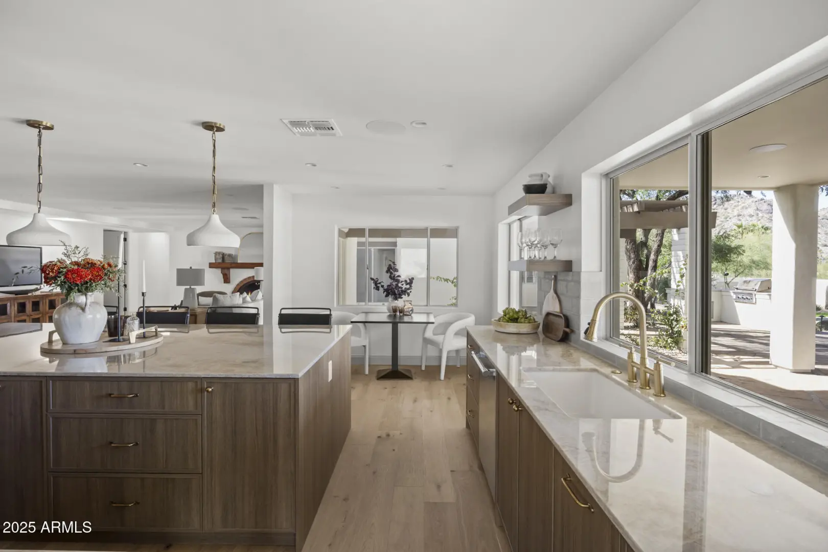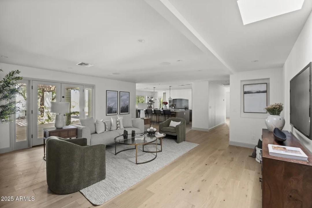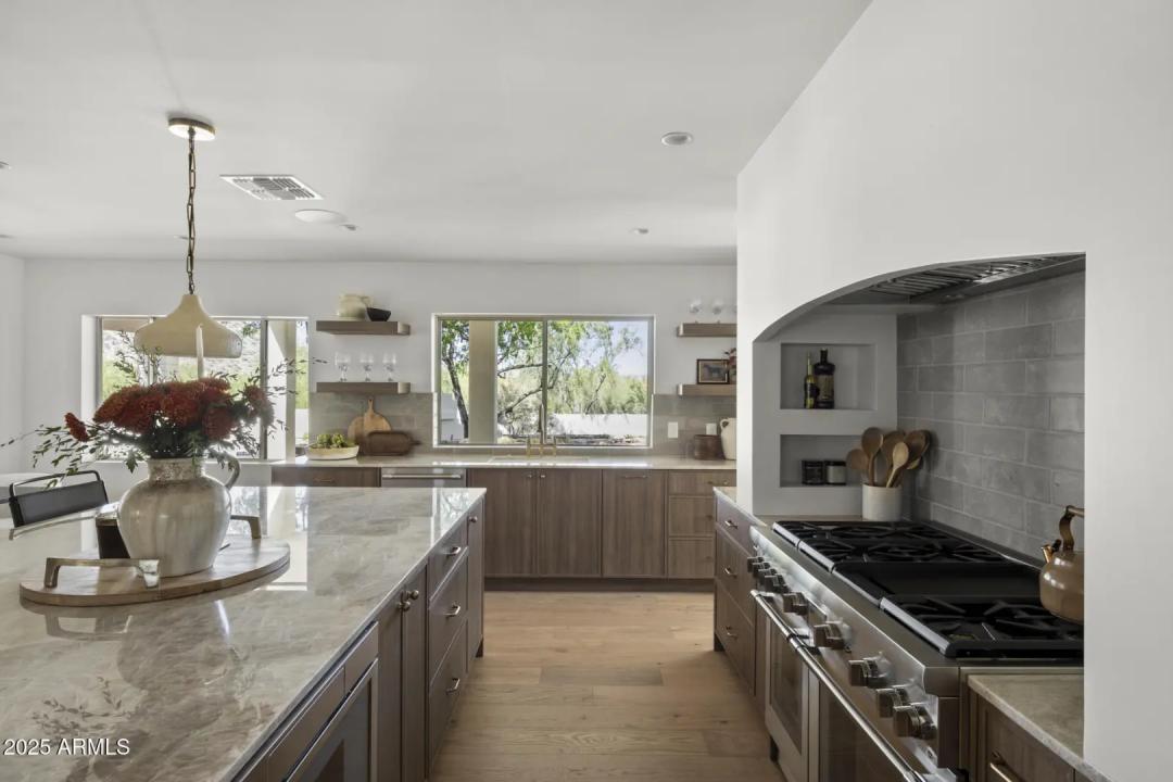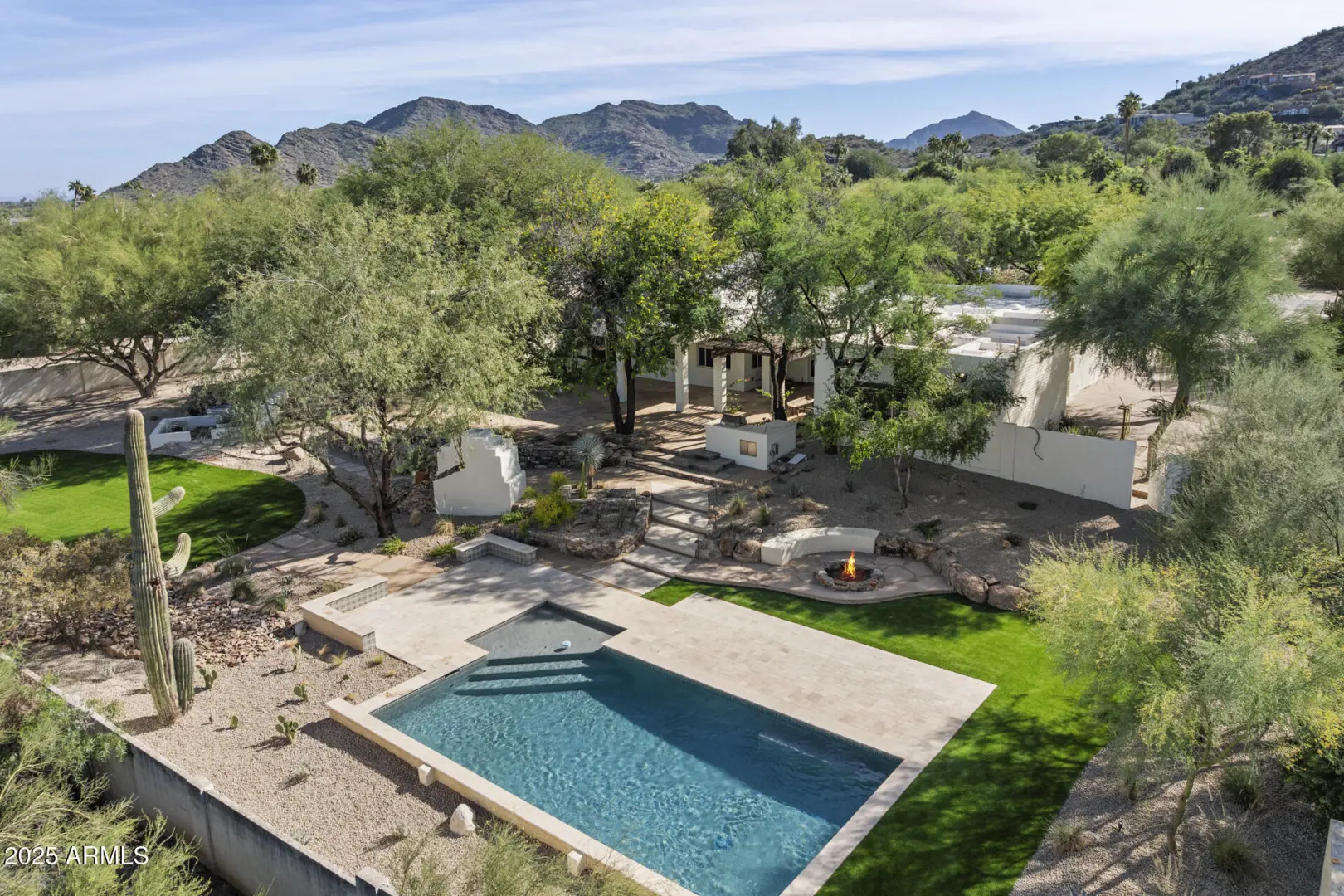 A stunning reimagining of modern Spanish architecture, this 4 bed, 4.5 bath residence is perfectly positioned on a rare, resort-style lot with mountain views front and back, just two streets from Paradise Valley and backing directly to the Phoenix Mountain Preserve trail. Spanning 4,170 sq ft, the home embodies timeless sophistication with rich natural textures, warm finishes, and curated details throughout. Inviting living spaces flow effortlessly to the outdoors, creating an ideal setting for elevated desert living. The owner's suite is a private sanctuary with serene views and refined finishes, while lush landscaping, mature mesquite trees, and a sparkling heated pool complete this one-of-a-kind retreat that captures the essence of modern luxury in the heart of the desert.