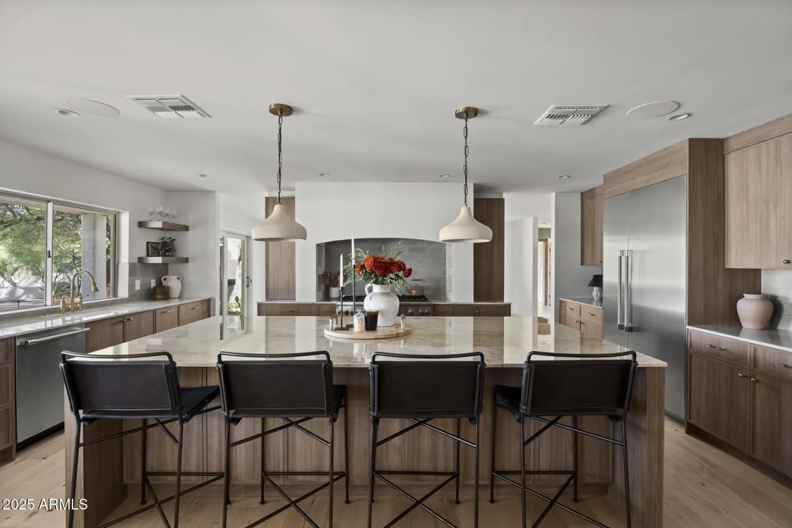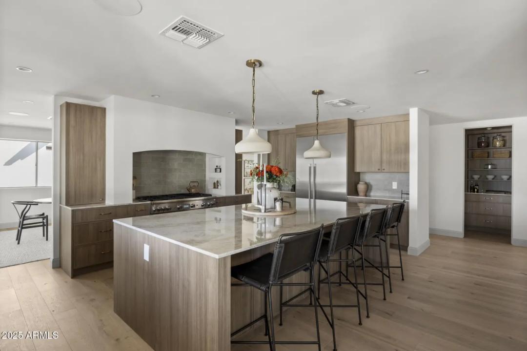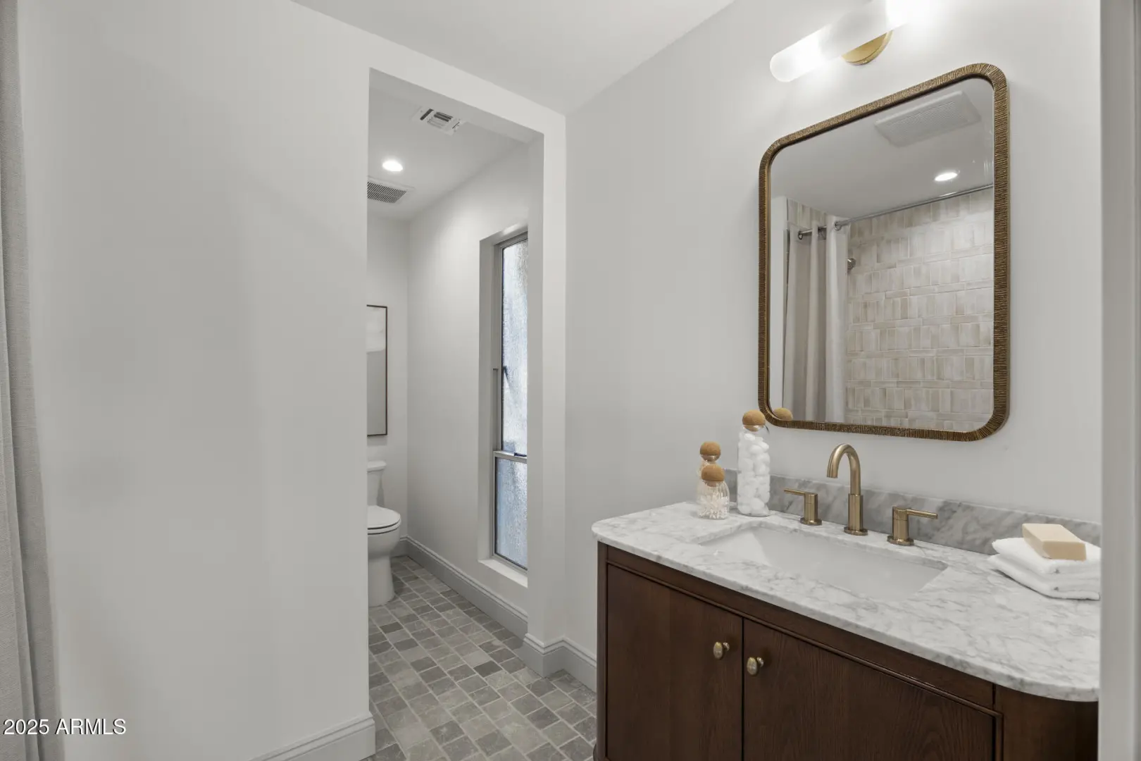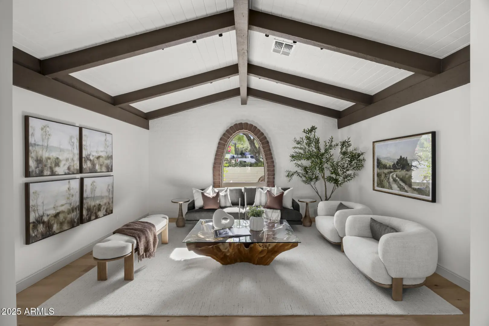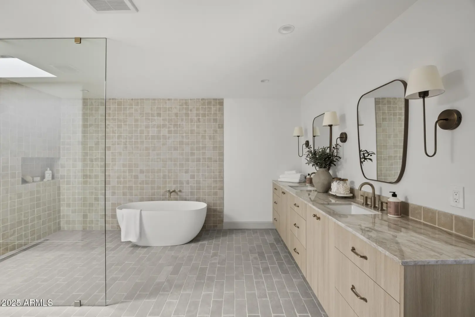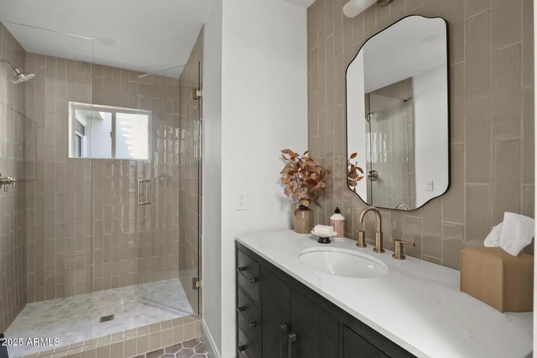 A stunning reimagining of modern Spanish architecture, this 4 bed, 4.5 bath residence is perfectly positioned on a rare, resort-style lot with mountain views front and back, just two streets from Paradise Valley and backing directly to the Phoenix Mountain Preserve trail. Spanning 4,170 sq ft, the home embodies timeless sophistication with rich natural textures, warm finishes, and curated details throughout. Inviting living spaces flow effortlessly to the outdoors, creating an ideal setting for elevated desert living. The owner's suite is a private sanctuary with serene views and refined finishes, while lush landscaping, mature mesquite trees, and a sparkling heated pool complete this one-of-a-kind retreat that captures the essence of modern luxury in the heart of the desert.