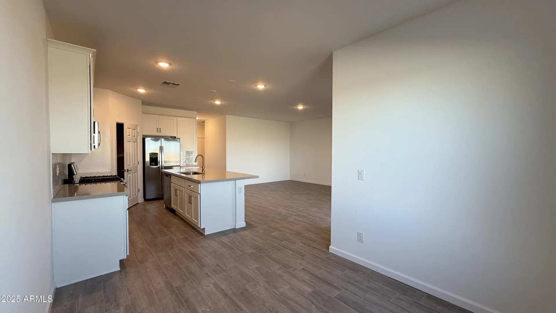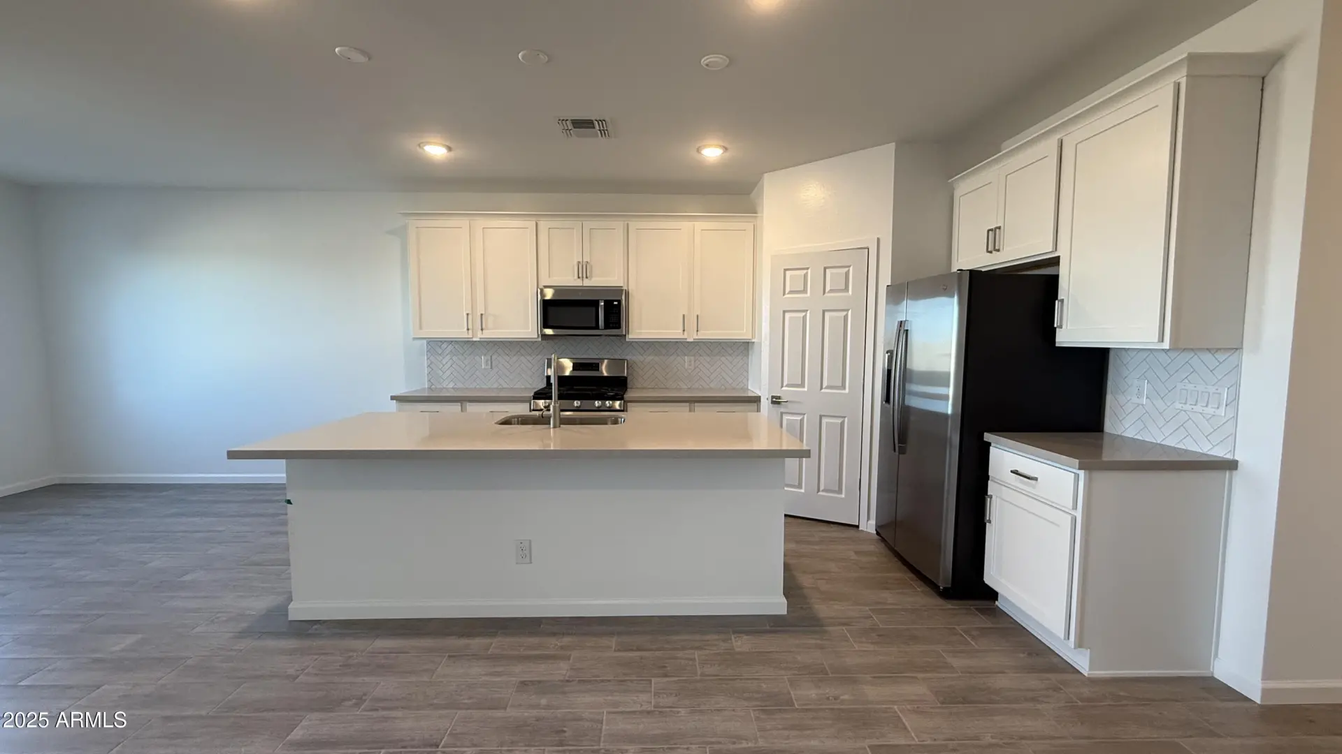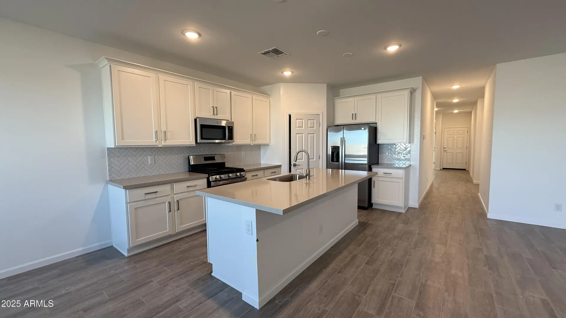 The popular Iris floorplan includes 4-bedrooms, 2-bathrooms and offers 1,797 sq ft of beautifully designed living space and a spacious 2-car garage. Step into a show-stopping kitchen featuring 42'' upper white shaker cabinets, Ivory White quartz countertops, Baker Boulevard Herringbone Mosaic White Gloss backsplash, Satin Nickel hardware, and a large pantry. The open-concept layout is enhanced by 9-foot ceilings, Lakewood Vista 7''x22'' wood-look tile in the main living areas and plush carpeting in the bedrooms. This home comes fully equipped with a stainless steel appliance package, including a gas range, microwave, dishwasher, refrigerator, and even a white washer and dryer for added convenience. Retreat to a serene Primary Suite complete with a generously sized bedroom, dual sinks,