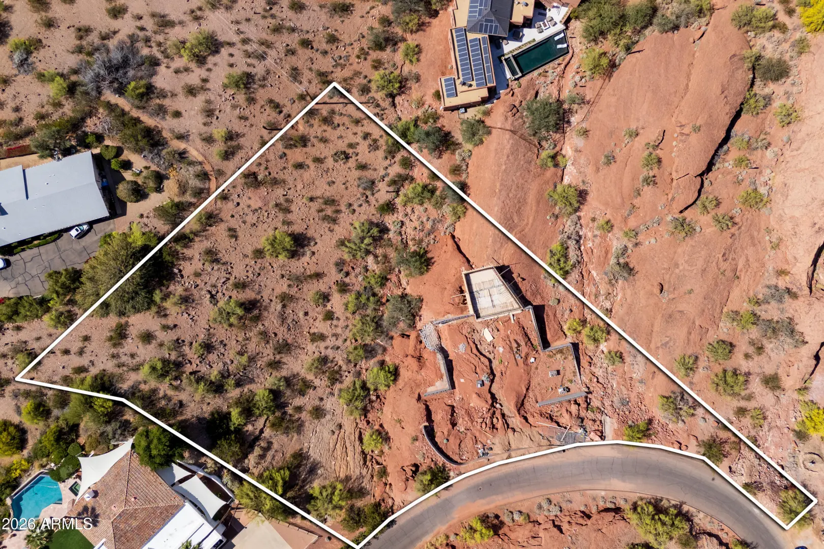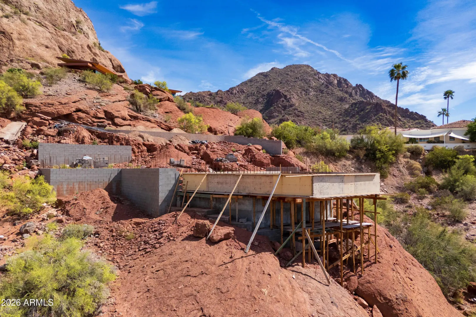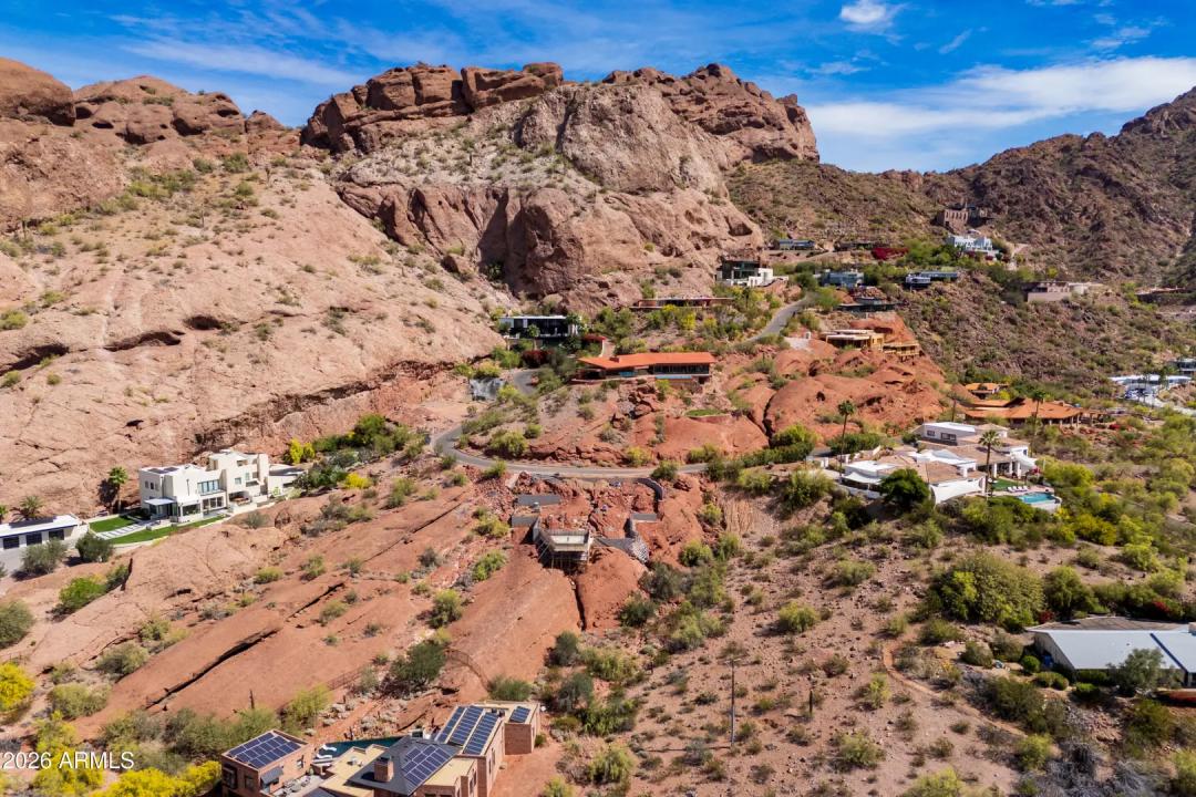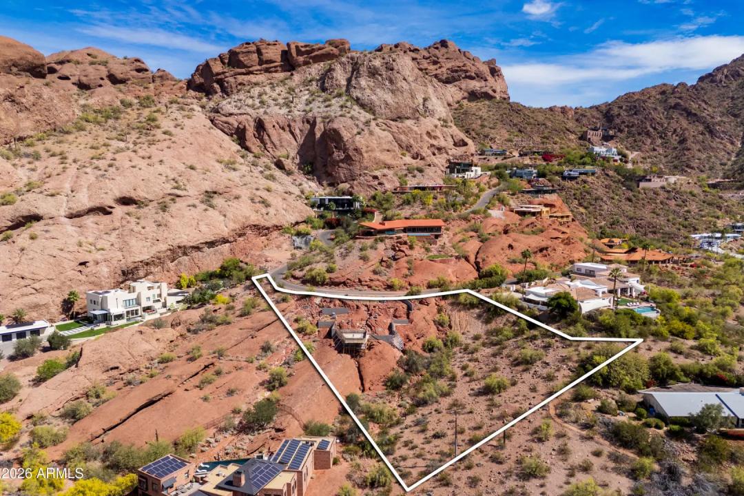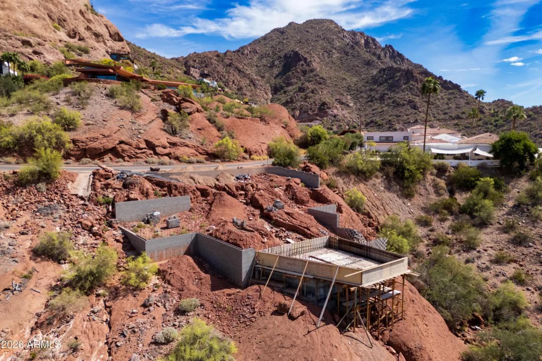 Rare shovel-ready hillside lot on the coveted south slope of Camelback Mountain with breathtaking, unobstructed views of the Phoenix skyline, Papago Buttes, Sky Harbor, South Mountain, and spectacular sunsets. Prep work has begun and architectural plans and renderings are available, offering a streamlined path to building a luxury custom home. The builder is ready to complete the project, presenting a unique opportunity for an investor or end user. Located among multi-million-dollar estates with a defined building envelope through the City hillside review process.