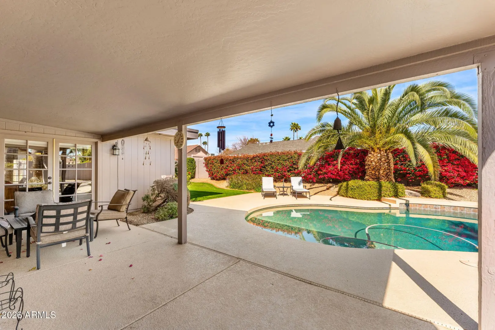 Nestled in the heart of Scottsdales MAGIC ZIP CODE this single level property is an absolute gem. With 3 bedrooms 2 baths plus a generous private den or home office this home checks all the boxes PLUS a new roof! Complimenting the interior of the home is one of the most serene and relaxing resort style backyards you'll find on the market today. Lush landscaping and soaring palm trees frames your sparkling private pool along with a generous natural grass area for all ages to enjoy. Just around the corner sits the trifecta of citrus trees.....We got oranges, lemons, and grapefruit! This property is taking pride of ownership to a whole new level!