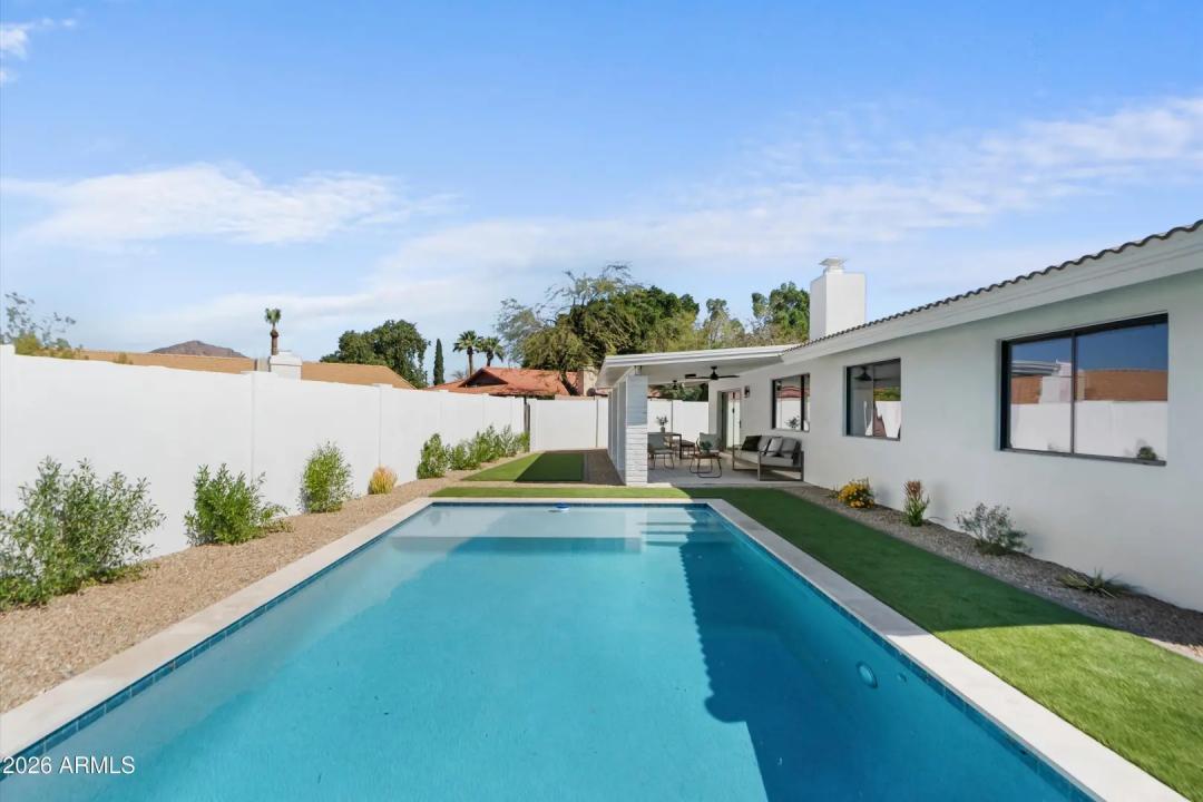 This one is special! Just listed in one of the most charming pockets in Phoenix, right between Arcadia and South Scottsdale, close to everything but still tucked into a quiet neighborhood. Truly one of Phoenix's best-kept secrets. This home has been completely reconstructed, fully permitted by a licensed contractor, with all major systems upgraded or new. As you enter the home, you're welcomed into a large open floor plan with the kitchen, dining, and living spaces extending to the backyard through custom bifold steel doors. The backyard features a brand new pool built in 2026, along with a full-length covered patio with tile floors and ceiling fans, creating a fully livable outdoor space. Low-maintenance turf areas in the front and back, a new irrigation system, new plants,