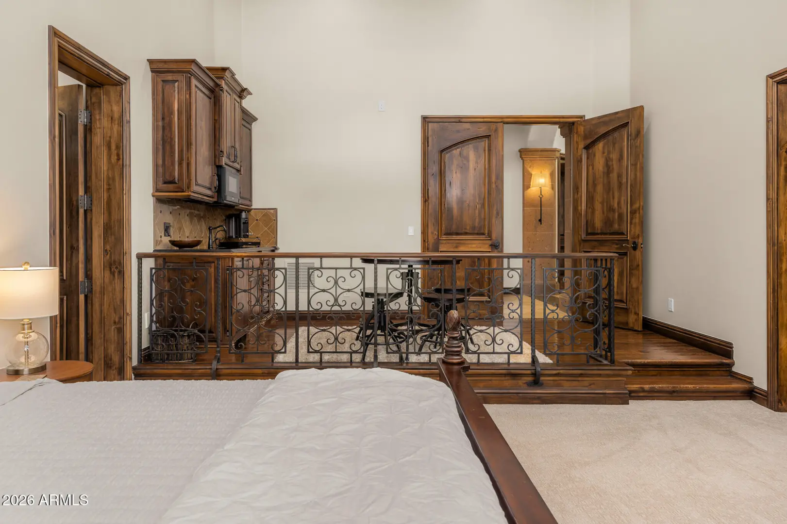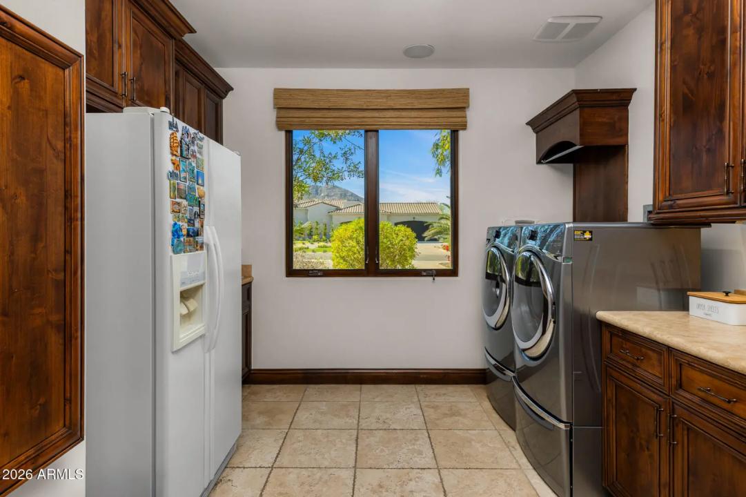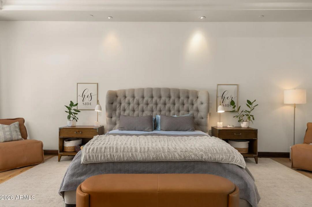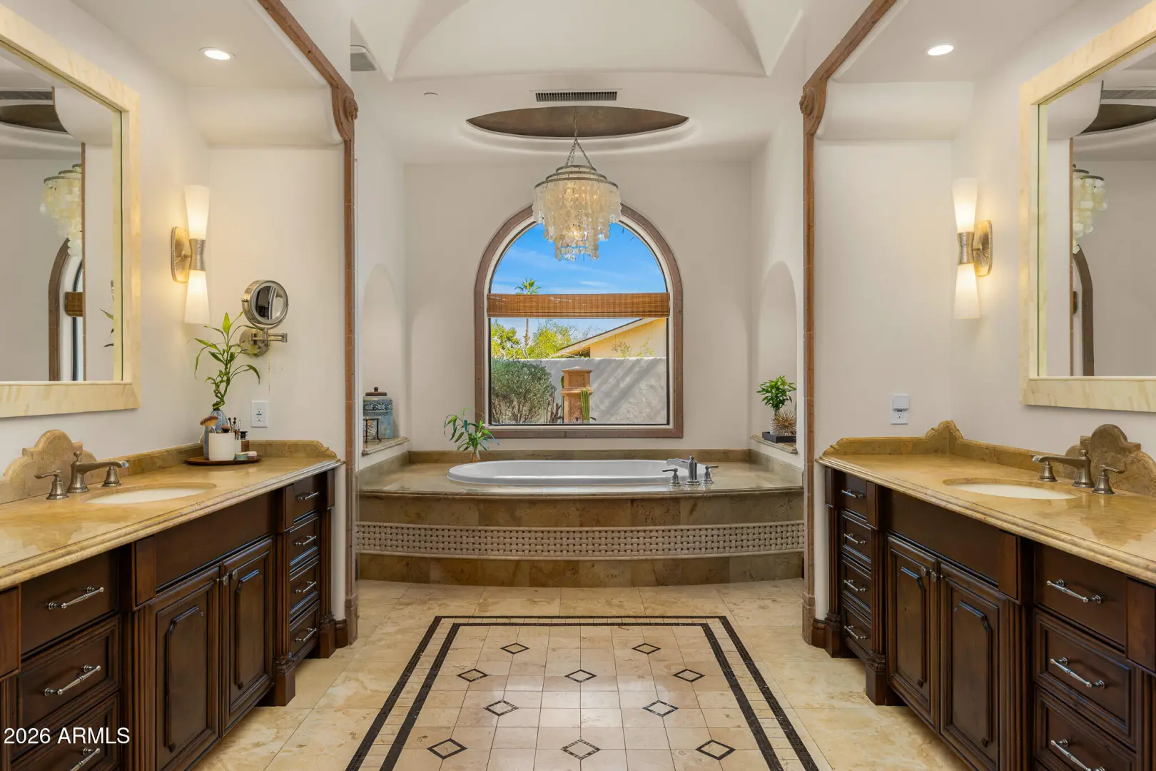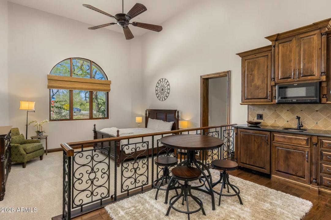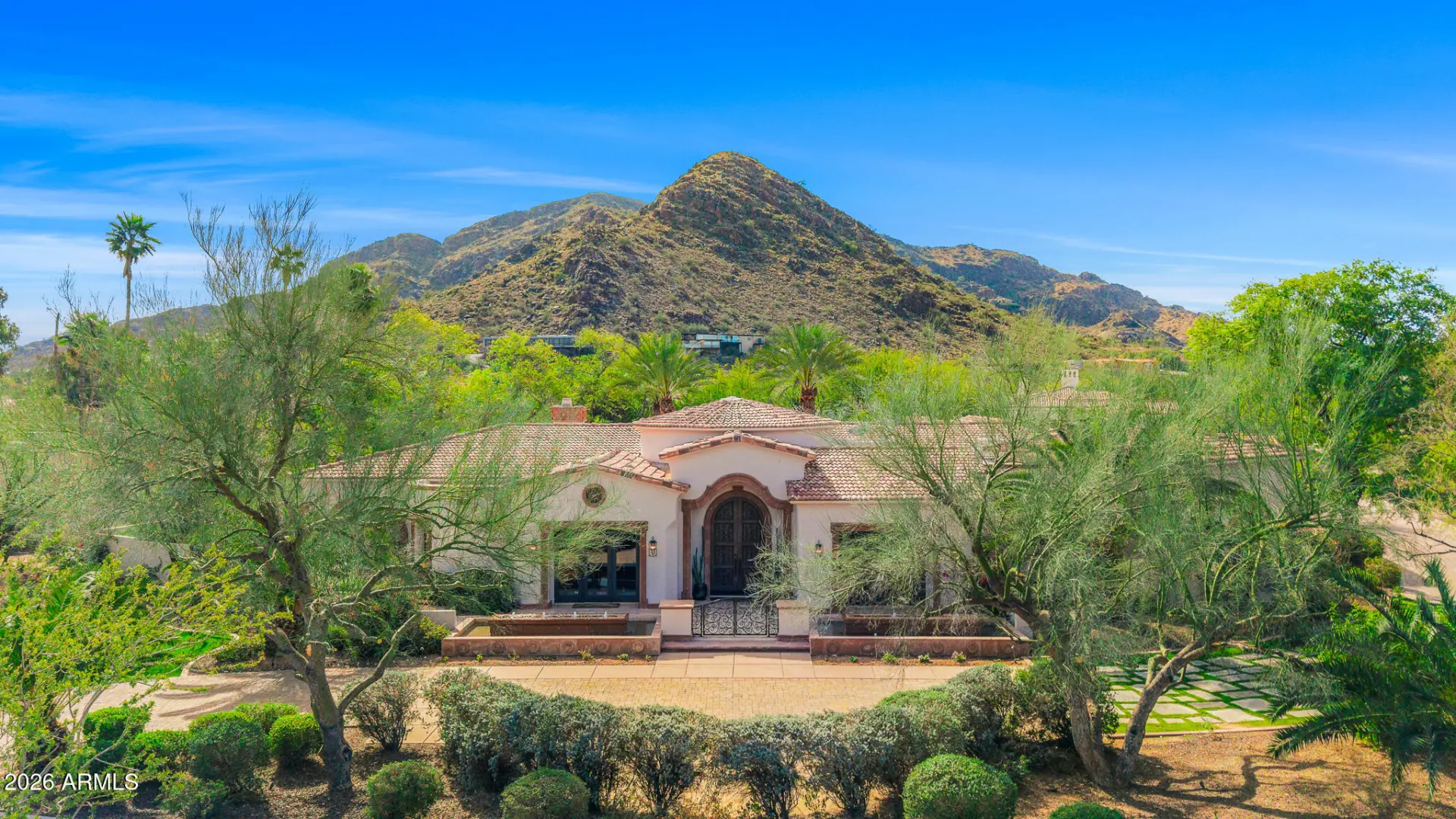 Commanding one of the most extraordinary vantage points in Paradise Valley, this timeless estate rests gracefully at the base of Mummy Mountain, capturing truly unparalleled views that stretch across the desert landscape. From the moment you enter, perfectly positioned picture windows frame the mountain like living artwork, inviting the beauty of the Sonoran desert into every space. Designed with enduring architectural integrity, the home balances elegance and warmth with effortless livability. Five ensuite bedrooms include a private guest quarters complete with kitchenette, offering refined comfort for visitors. Formal living and dining spaces exude quiet sophistication, complemented by a temperature-controlled wine room for the discerning collector. The chef's kitchen is both functional