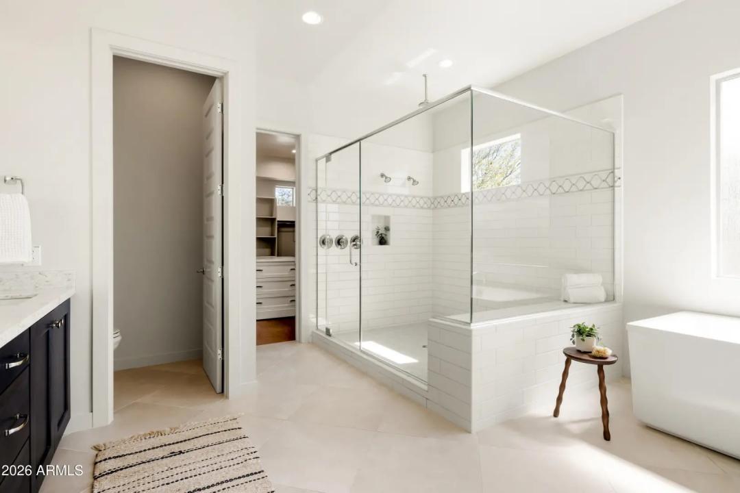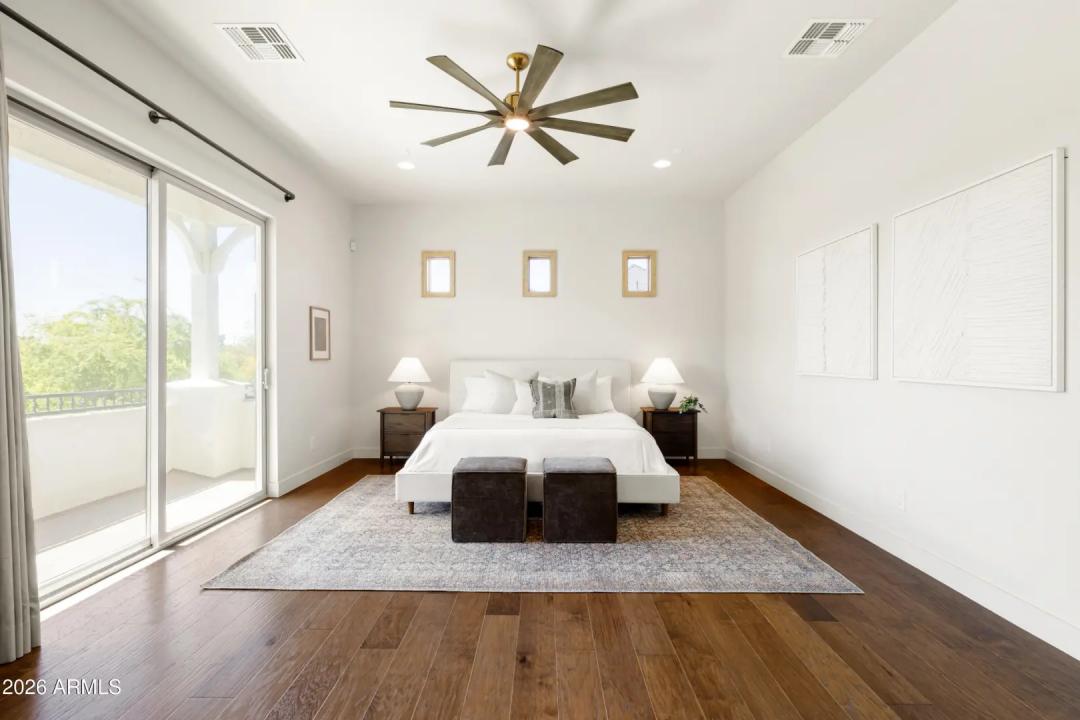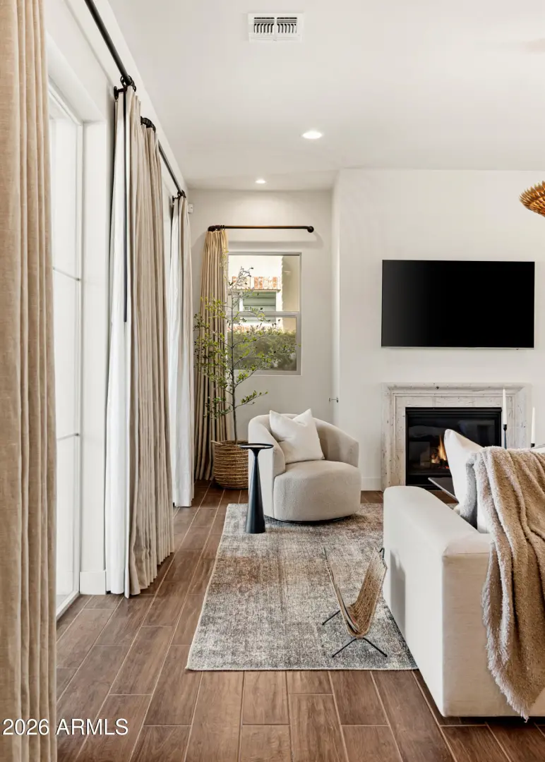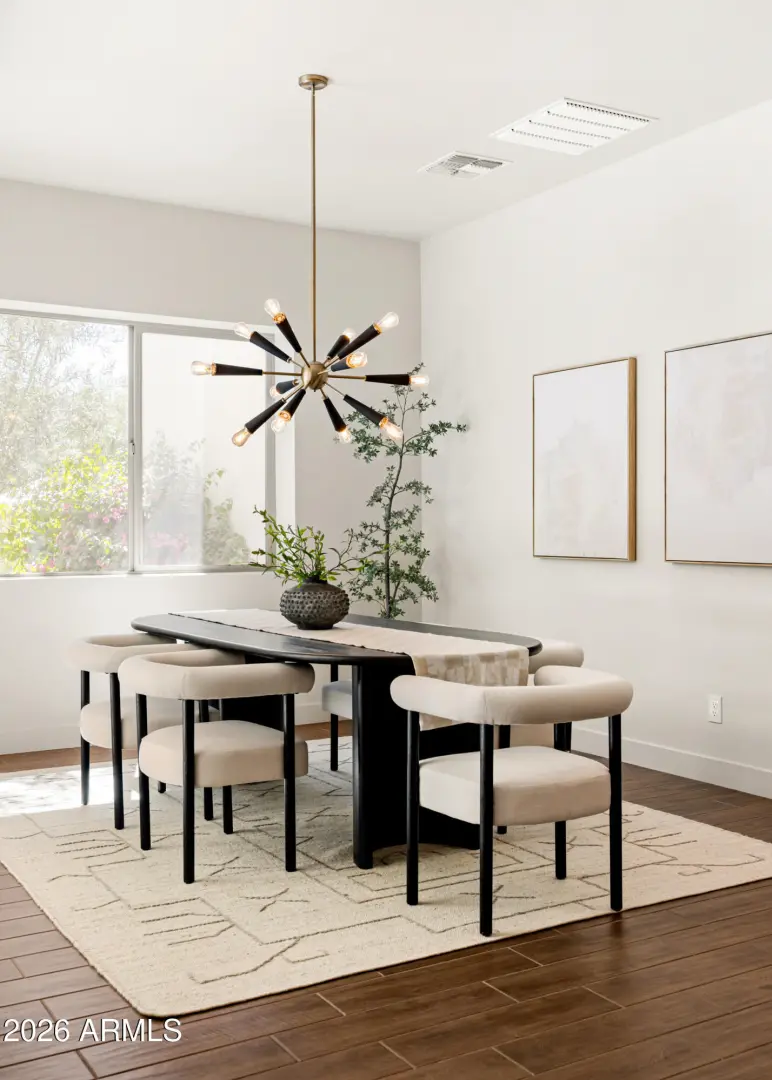 Welcome to Manors at Butler North, a luxury gated community of 10 semi-custom homes located in the North Central Corridor. Located between the 7's, you're in one of the most charming neighborhoods in all of Arizona, quiet and tucked away while still being minutes from downtown Phoenix, great local restaurants, and easy freeway access across the Valley. As you enter the home, you're welcomed into a bright living and kitchen space with soaring ceilings and tons of natural light. The kitchen features a large island, quartz countertops, stainless steel appliances, a gas range, and a huge walk-in pantry. Off the kitchen is a built-in coffee and bar area that connects to the semi-private dining space and leads out to the backyard.