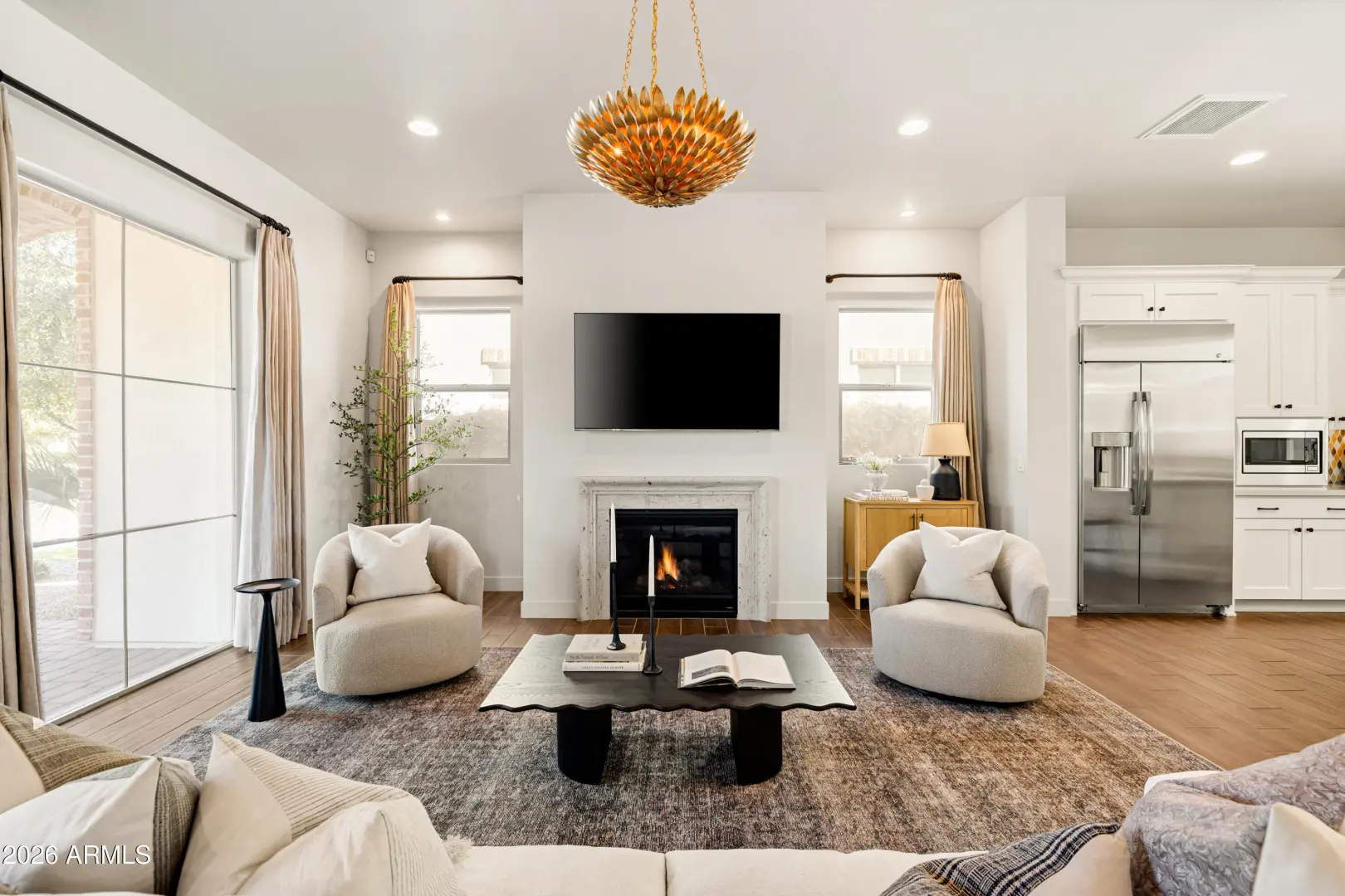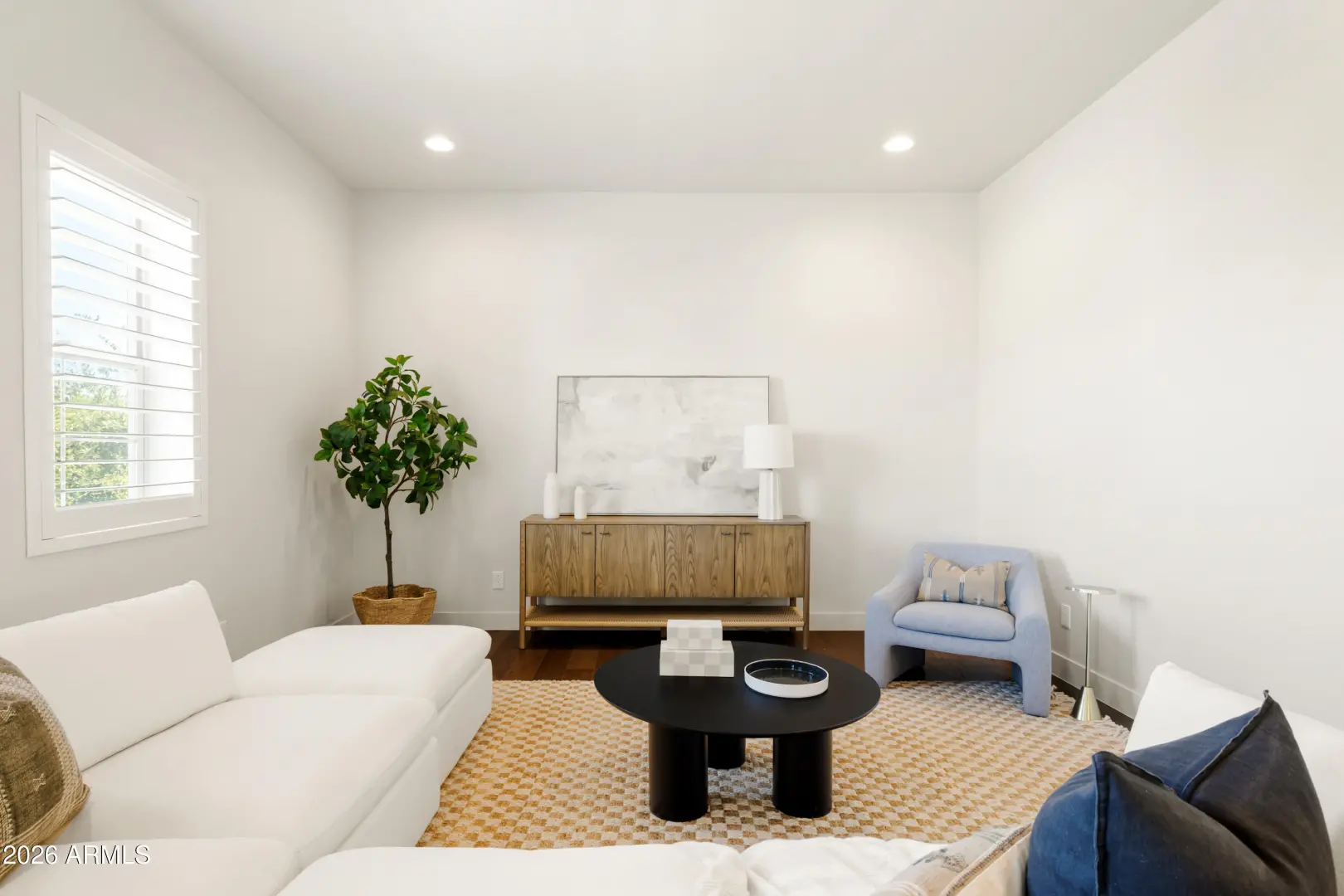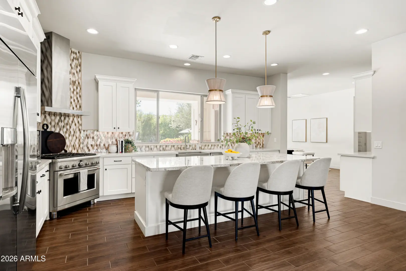 Welcome to Manors at Butler North, a luxury gated community of 10 semi-custom homes located in the North Central Corridor. Located between the 7's, you're in one of the most charming neighborhoods in all of Arizona, quiet and tucked away while still being minutes from downtown Phoenix, great local restaurants, and easy freeway access across the Valley. As you enter the home, you're welcomed into a bright living and kitchen space with soaring ceilings and tons of natural light. The kitchen features a large island, quartz countertops, stainless steel appliances, a gas range, and a huge walk-in pantry. Off the kitchen is a built-in coffee and bar area that connects to the semi-private dining space and leads out to the backyard.