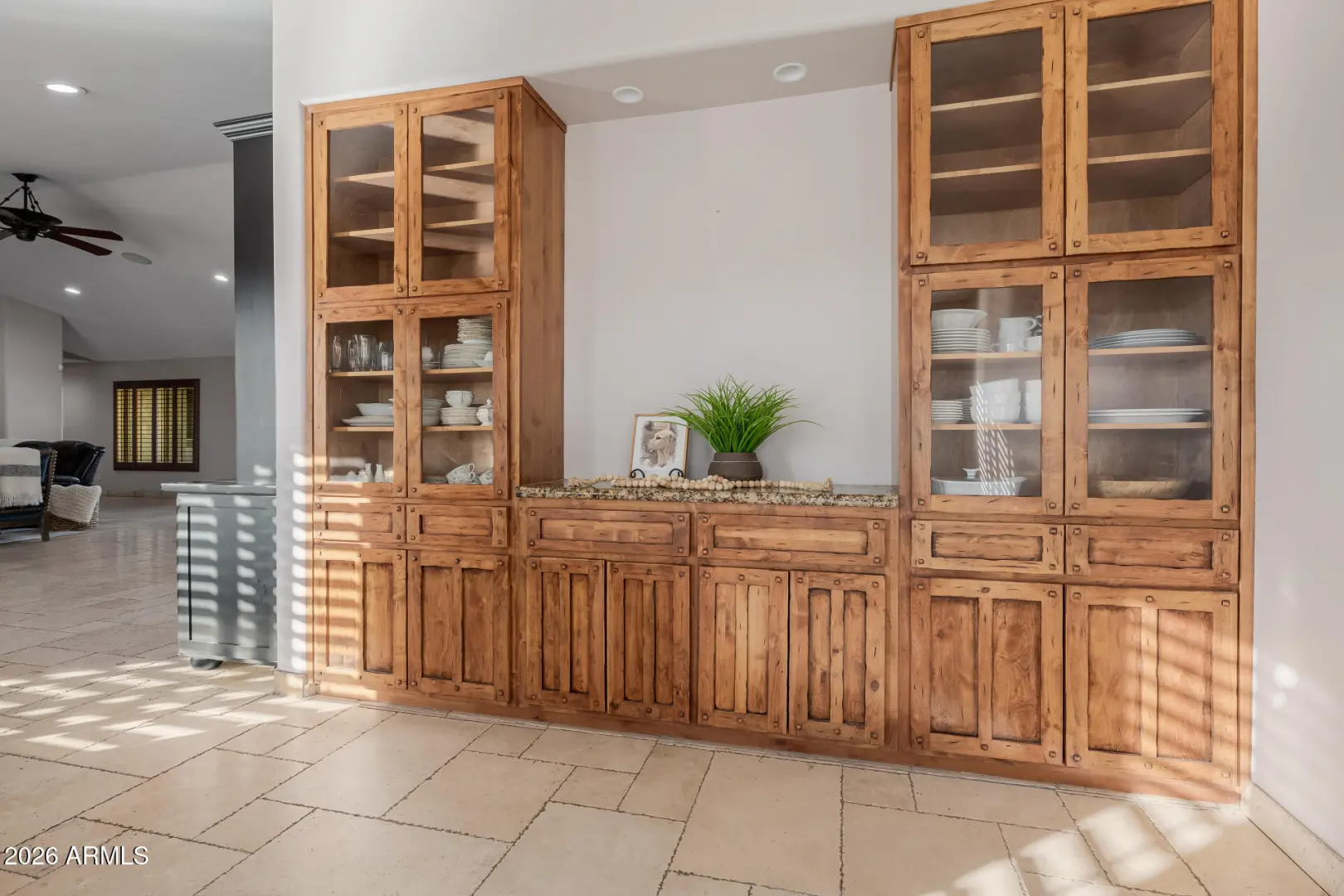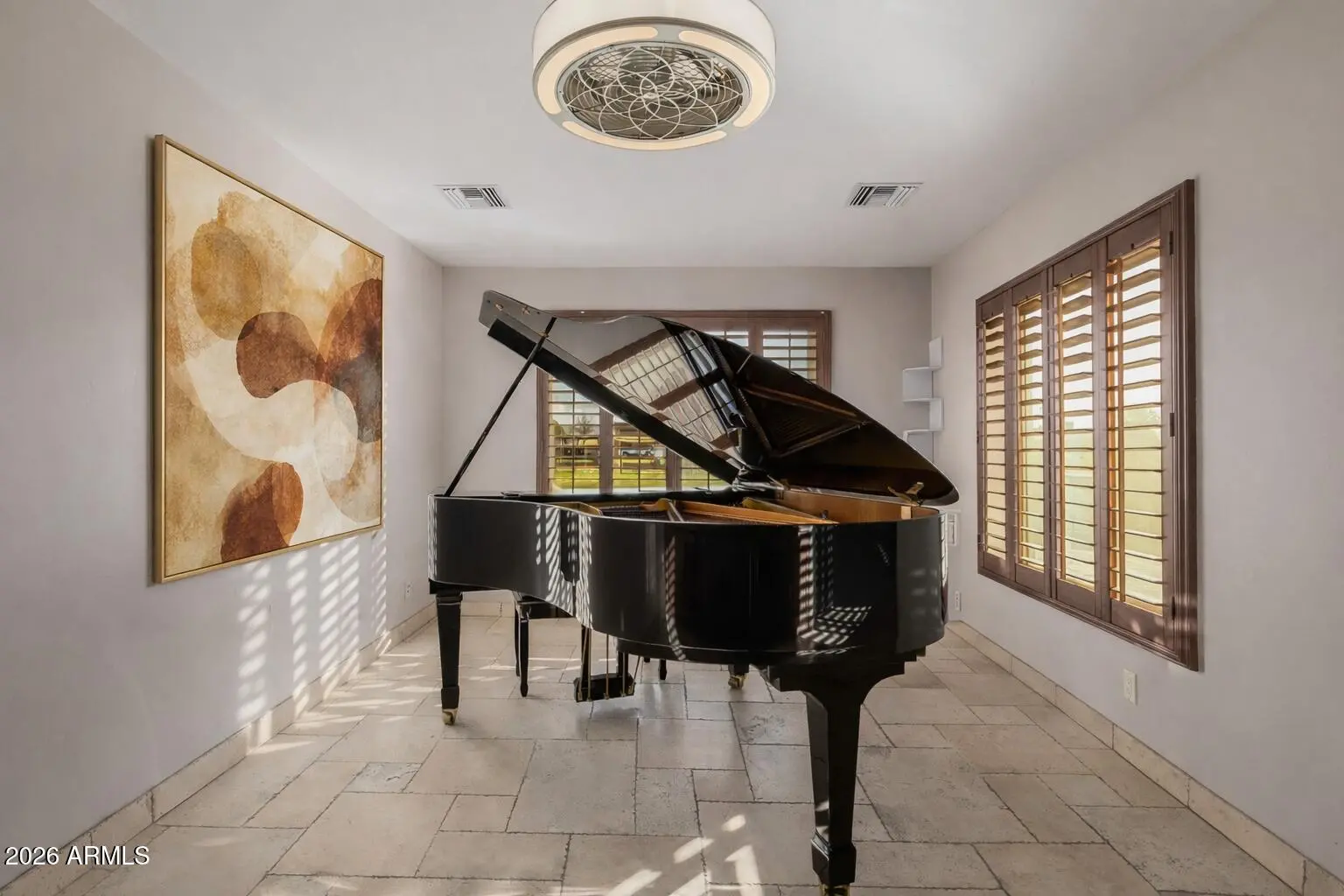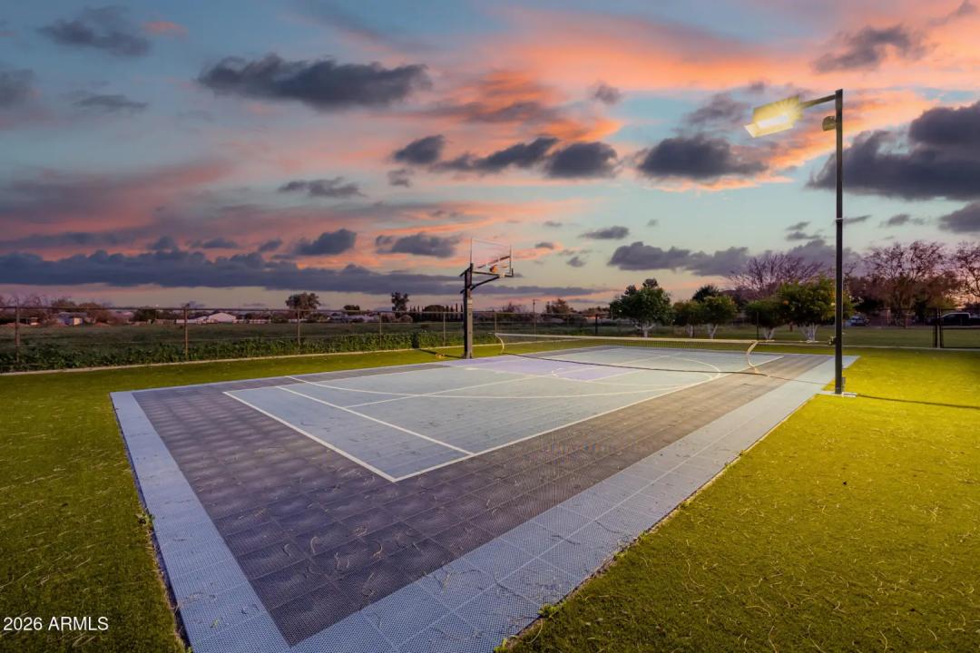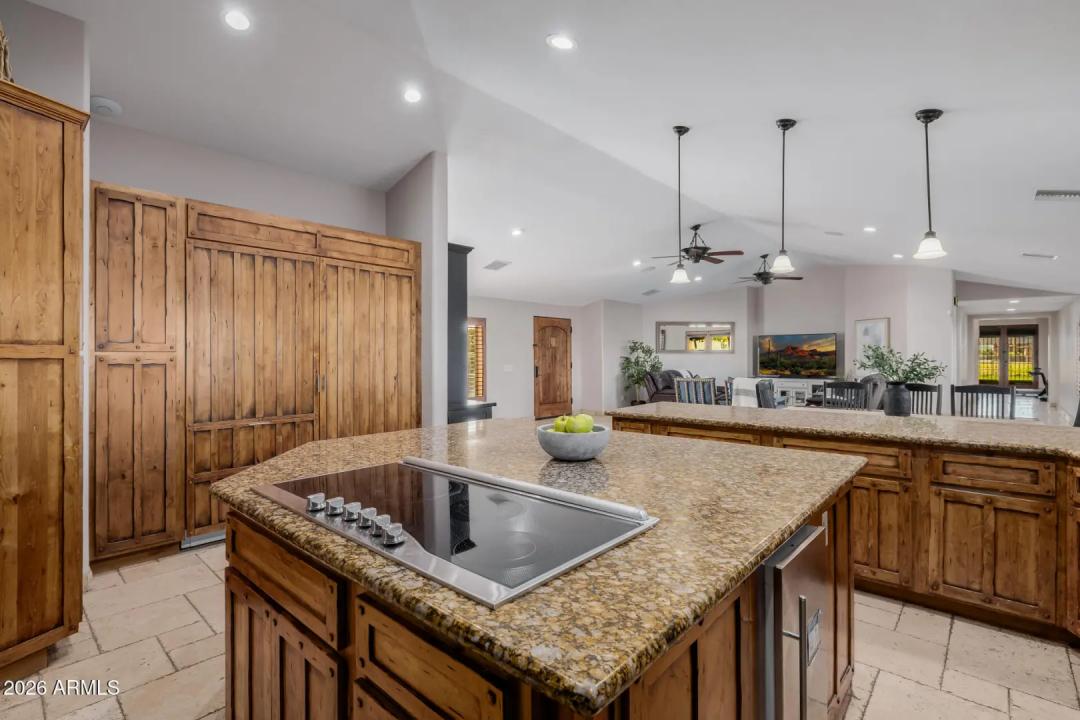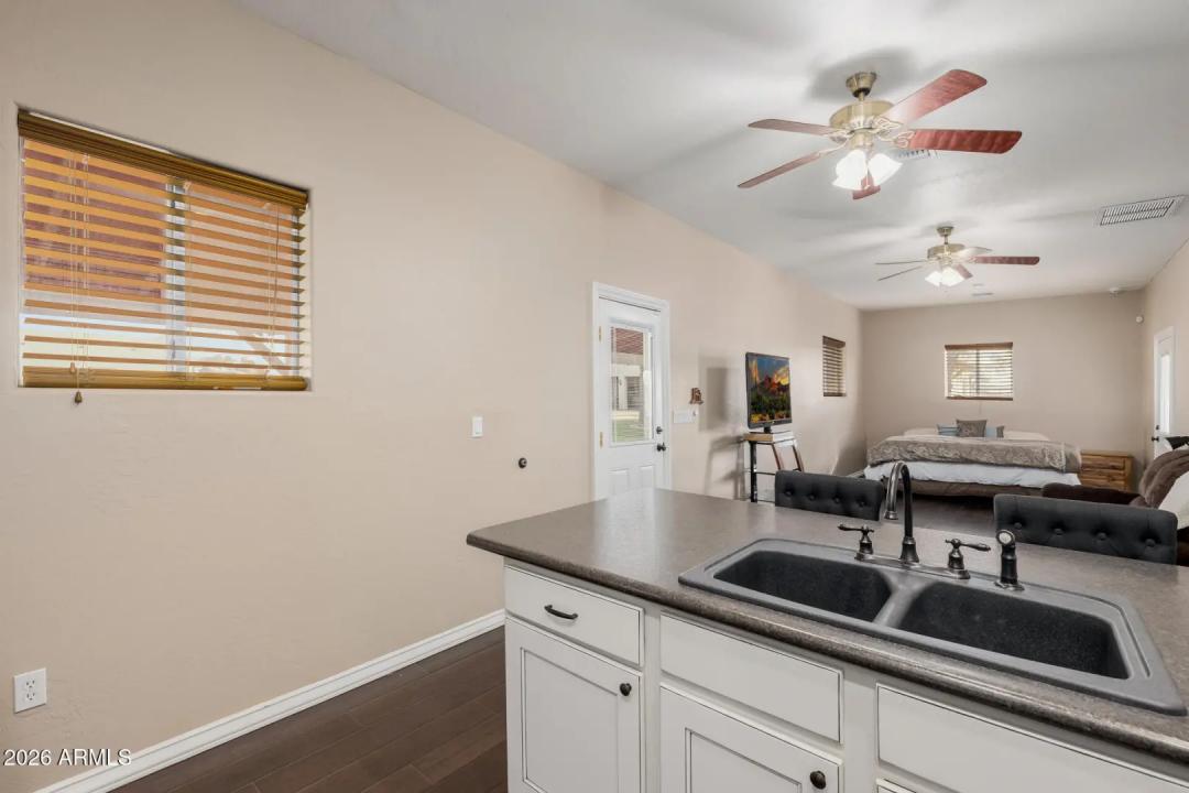 If you've been dreaming of a place where every day feels like a getaway, this exceptional estate delivers. Situated in one of Gilbert's most sought-after areas, this quiet and private property spans nearly 5 irrigated acres, an offering that rarely comes to market. The seller invested extraordinary care into the home, sparing no expense and thoughtfully upgrading every detail throughout. The custom single-level main residence of almost 6,600 sqft. offers 5 beds, 4 beautifully tiled natural stone baths, 2 laundry rooms, plus spacious bonus room that could easily function as a 6th bedroom with exterior access. Guest house! One of the home's most impressive features is the expansive 1,250 sqft. game room, showcasing vaulted wood-beam ceilings, a stone fireplace, a built-in dining table and a