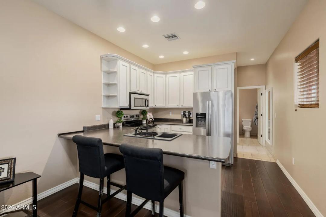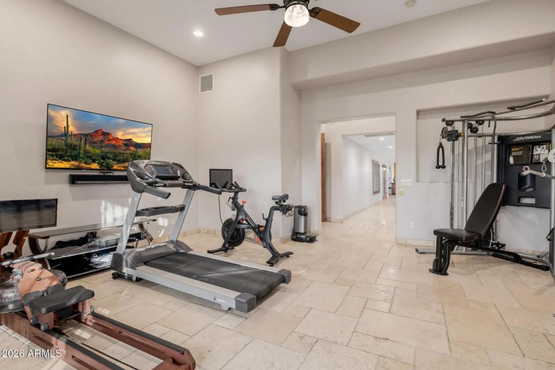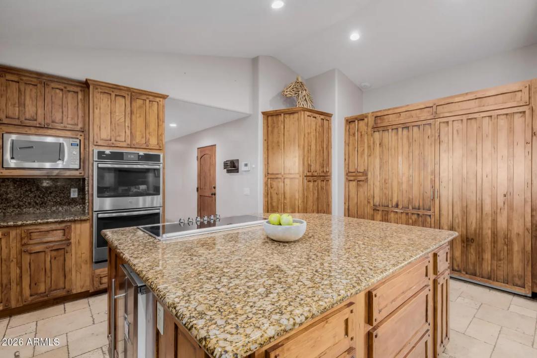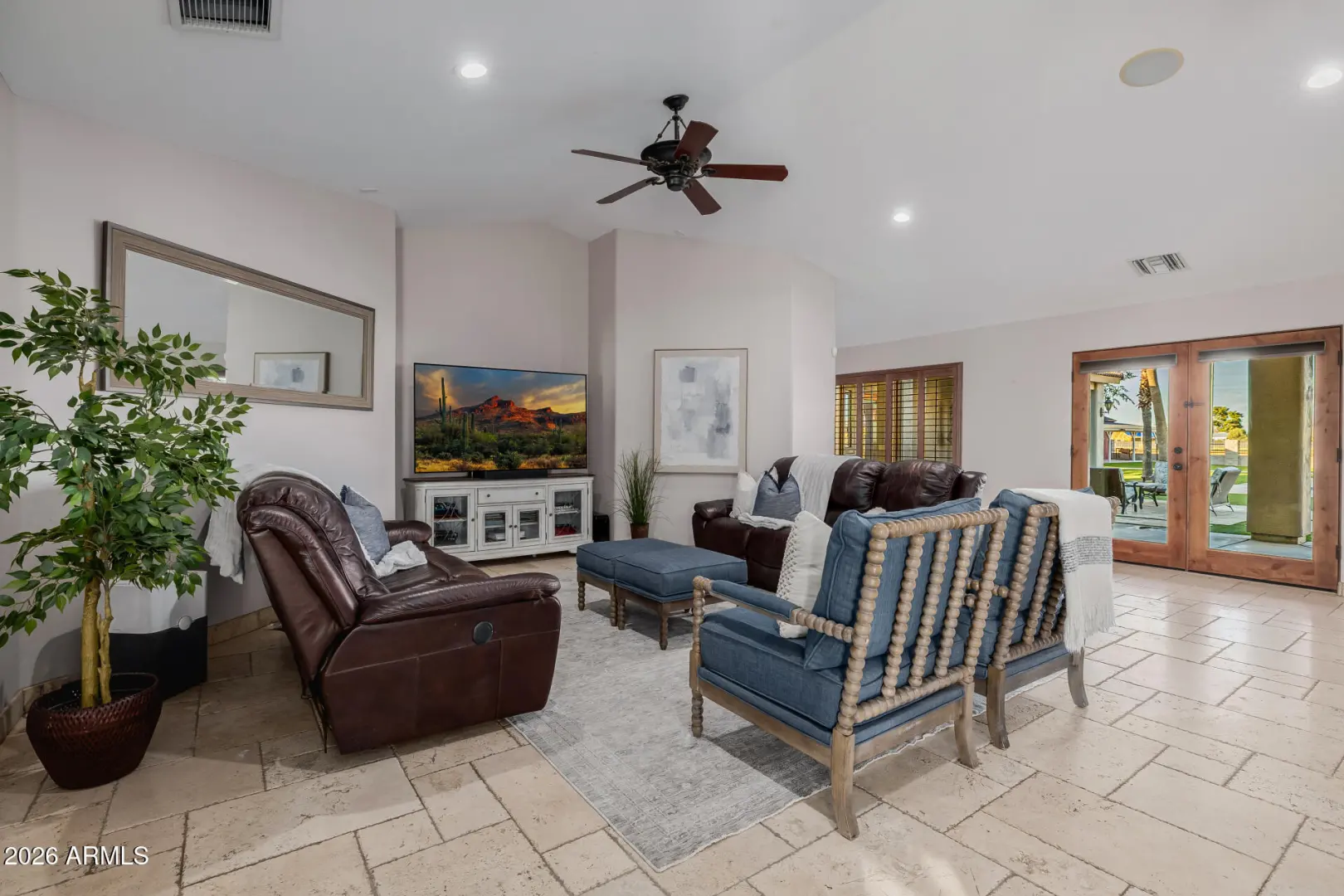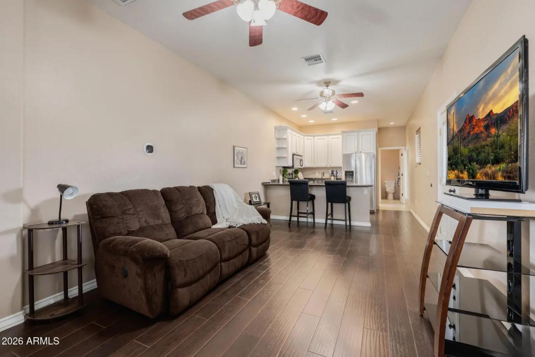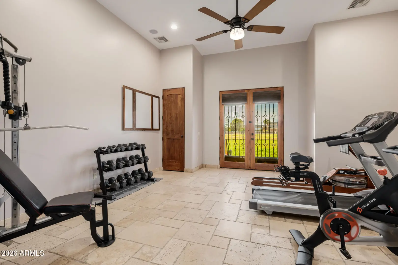 If you've been dreaming of a place where every day feels like a getaway, this exceptional estate delivers. Situated in one of Gilbert's most sought-after areas, this quiet and private property spans nearly 5 irrigated acres, an offering that rarely comes to market. The seller invested extraordinary care into the home, sparing no expense and thoughtfully upgrading every detail throughout. The custom single-level main residence of almost 6,600 sqft. offers 5 beds, 4 beautifully tiled natural stone baths, 2 laundry rooms, plus spacious bonus room that could easily function as a 6th bedroom with exterior access. Guest house! One of the home's most impressive features is the expansive 1,250 sqft. game room, showcasing vaulted wood-beam ceilings, a stone fireplace, a built-in dining table and a