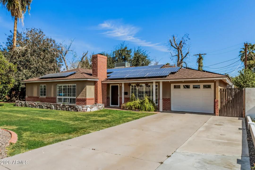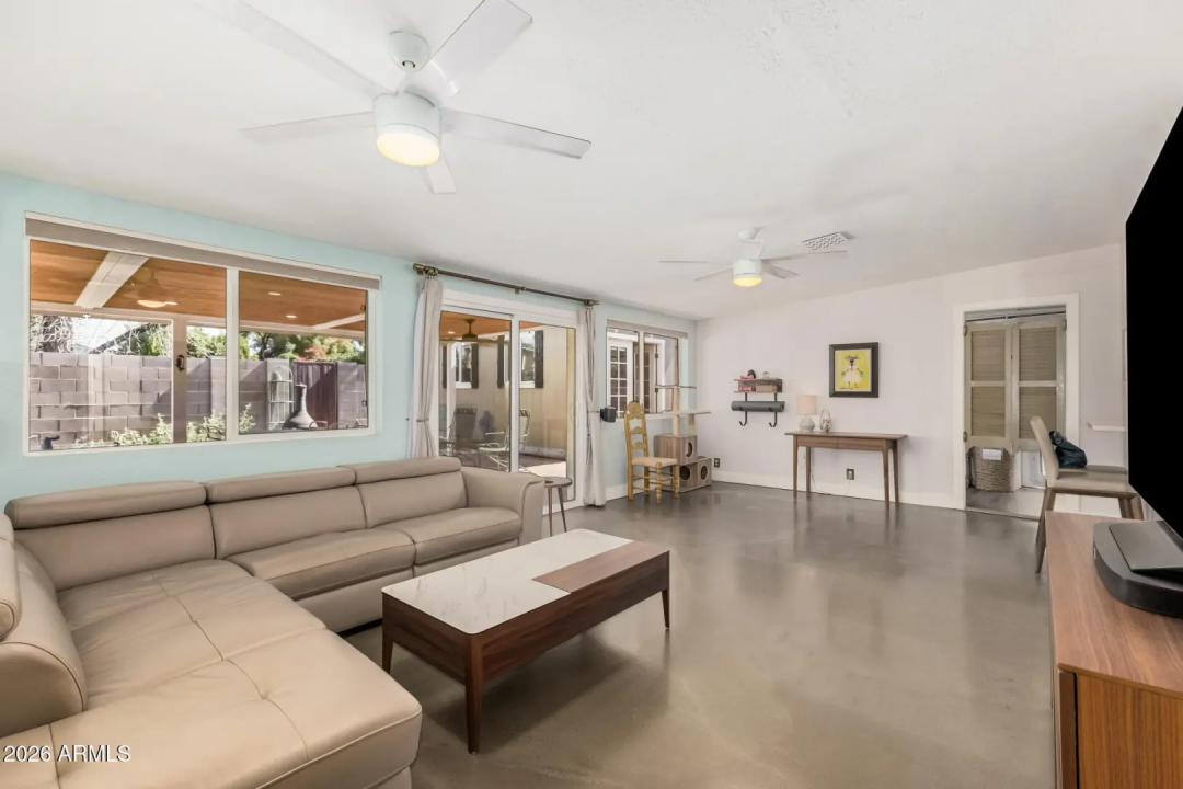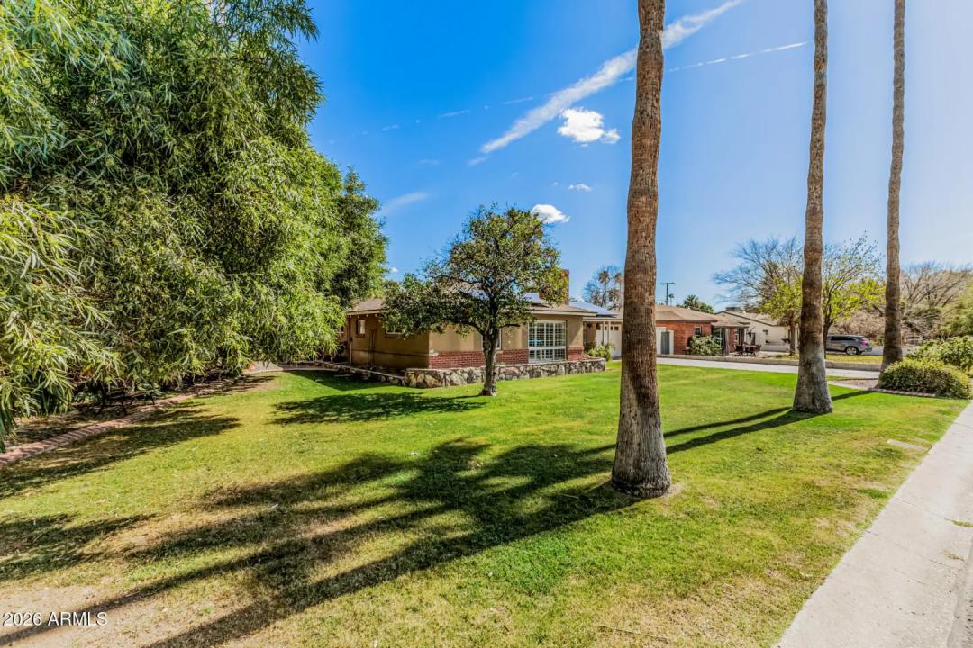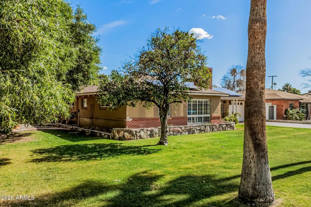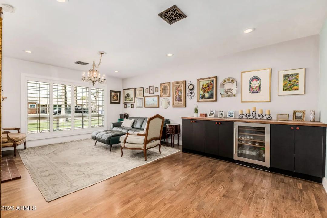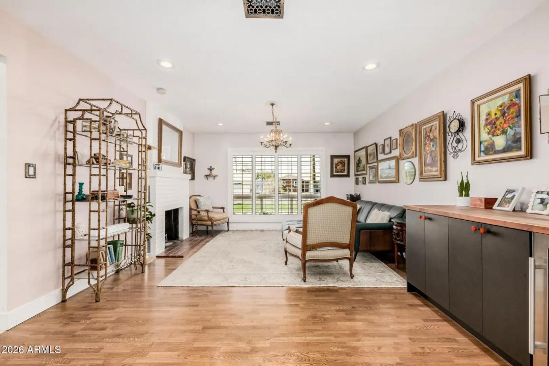 Mid-Century Modern dream home in North Central. The stunning kitchen features GE Cafe appliances, custom cabinetry, quartz countertops & backsplash, and a sunny breakfast room. Major system improvements by a previous owner include sewer line replacement & electrical updating, recessed lighting & raised hall ceilings. Updated flooring throughout, including finished concrete & terrazzo tile. Hall bath was renovated with new flooring, vanity, custom cabinetry, and custom-poured terrazzo countertop. Primary bathroom has also been beautifully remodeled. Living room features a gas fireplace and custom wine bar. In addition to the main home, there is a detached structure ideal for a private office/studio/flex space. Reimagined yard has extensive covered patio with lights, fans, blinds.