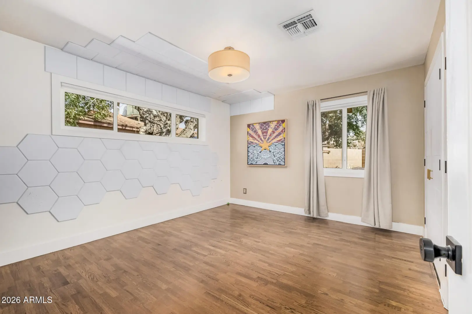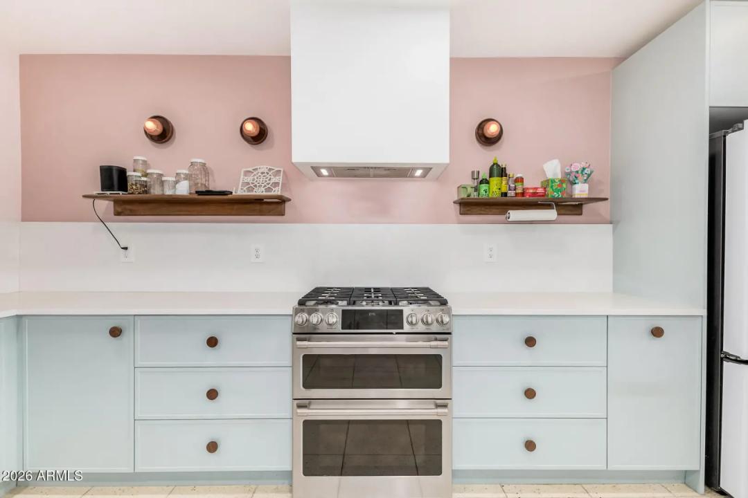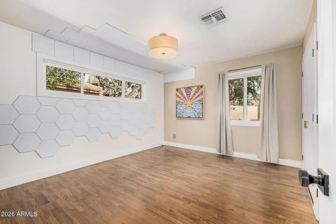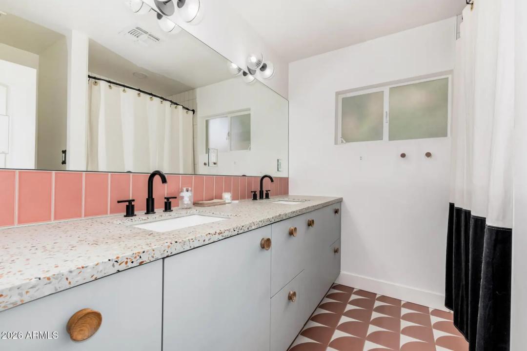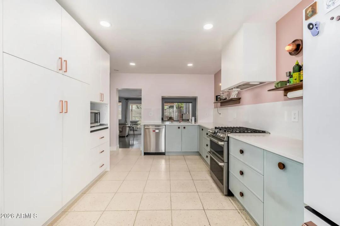 Mid-Century Modern dream home in North Central. The stunning kitchen features GE Cafe appliances, custom cabinetry, quartz countertops & backsplash, and a sunny breakfast room. Major system improvements by a previous owner include sewer line replacement & electrical updating, recessed lighting & raised hall ceilings. Updated flooring throughout, including finished concrete & terrazzo tile. Hall bath was renovated with new flooring, vanity, custom cabinetry, and custom-poured terrazzo countertop. Primary bathroom has also been beautifully remodeled. Living room features a gas fireplace and custom wine bar. In addition to the main home, there is a detached structure ideal for a private office/studio/flex space. Reimagined yard has extensive covered patio with lights, fans, blinds.