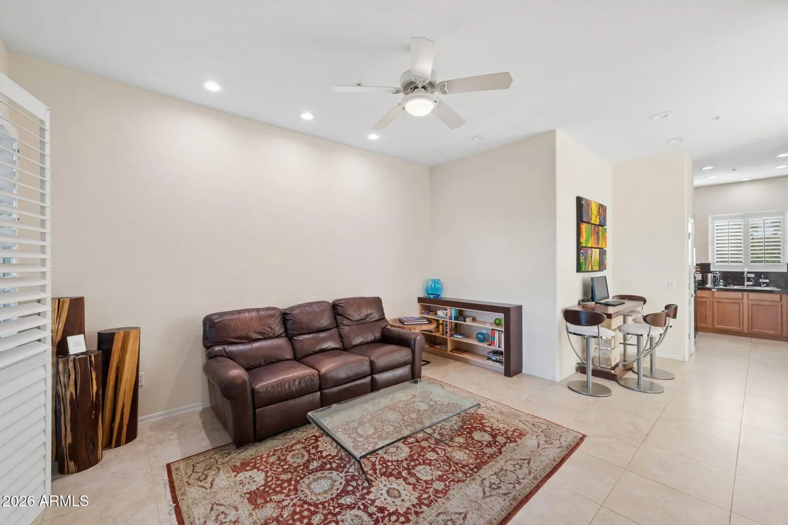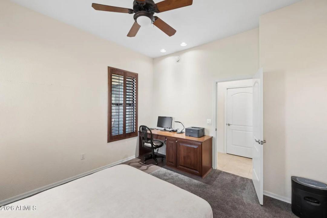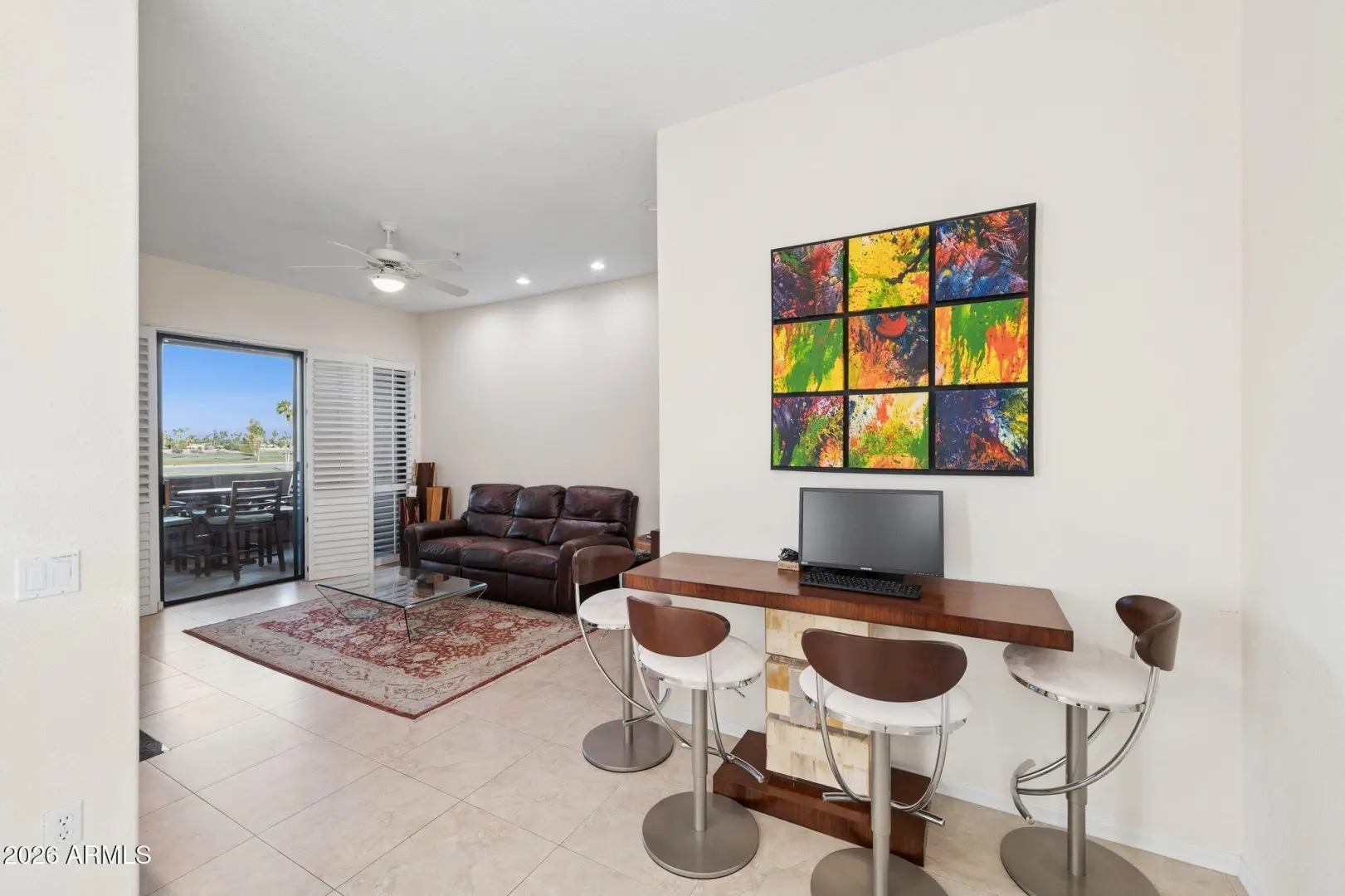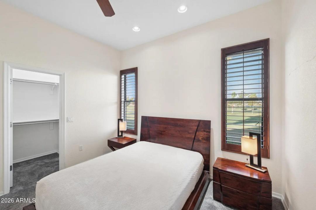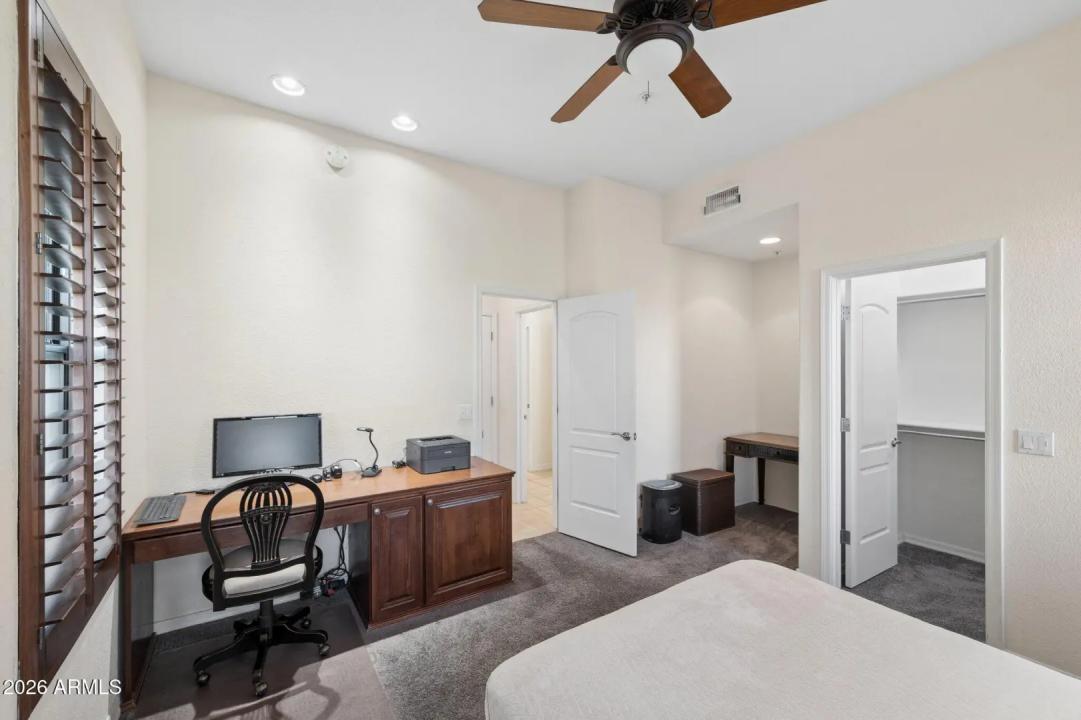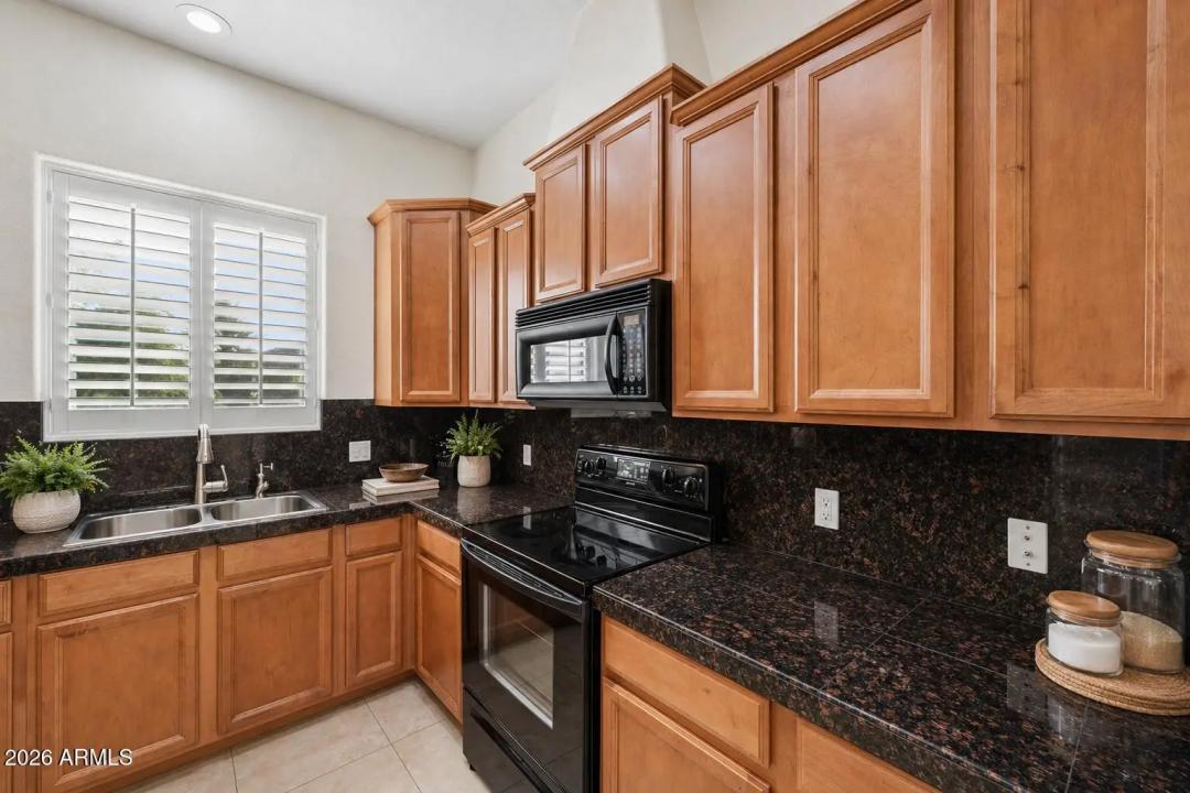 Do not miss this rarely available golf course unit with a private garage in the resort-style gated community of Traviata offering million dollar golf course and mountain views in the heart of Paradise Valley and perfectly positioned within walking distance to world-class dining, the new Ritz-Carlton, Scottsdale Fashion Square, the Scottsdale Train Park, luxury hotels and more. This open concept home features a spacious kitchen with upgraded cabinets and countertops, porcelain tile throughout main living areas, and a gas fireplace with rich granite surround. The light-filled primary suite boasts a generous walk-in closet and desk area, while recent upgrades include a new electric HVAC system (2023). Unwind with a glass of wine as the sun sets over the golf course from your private patio,