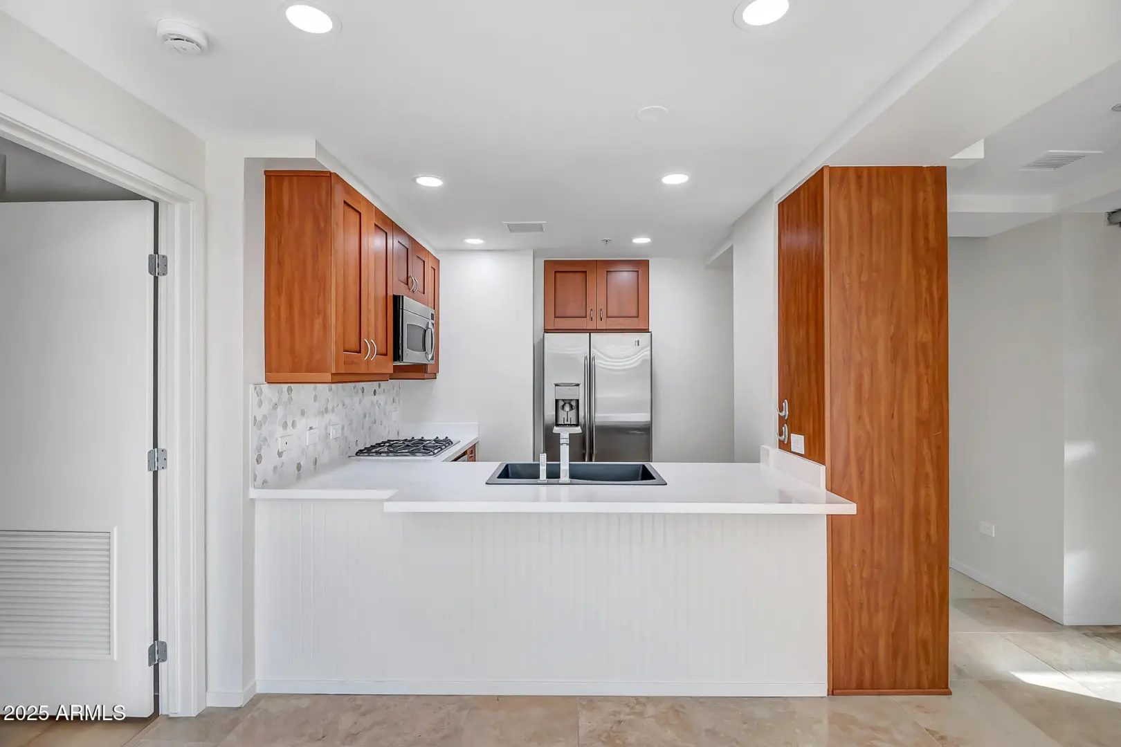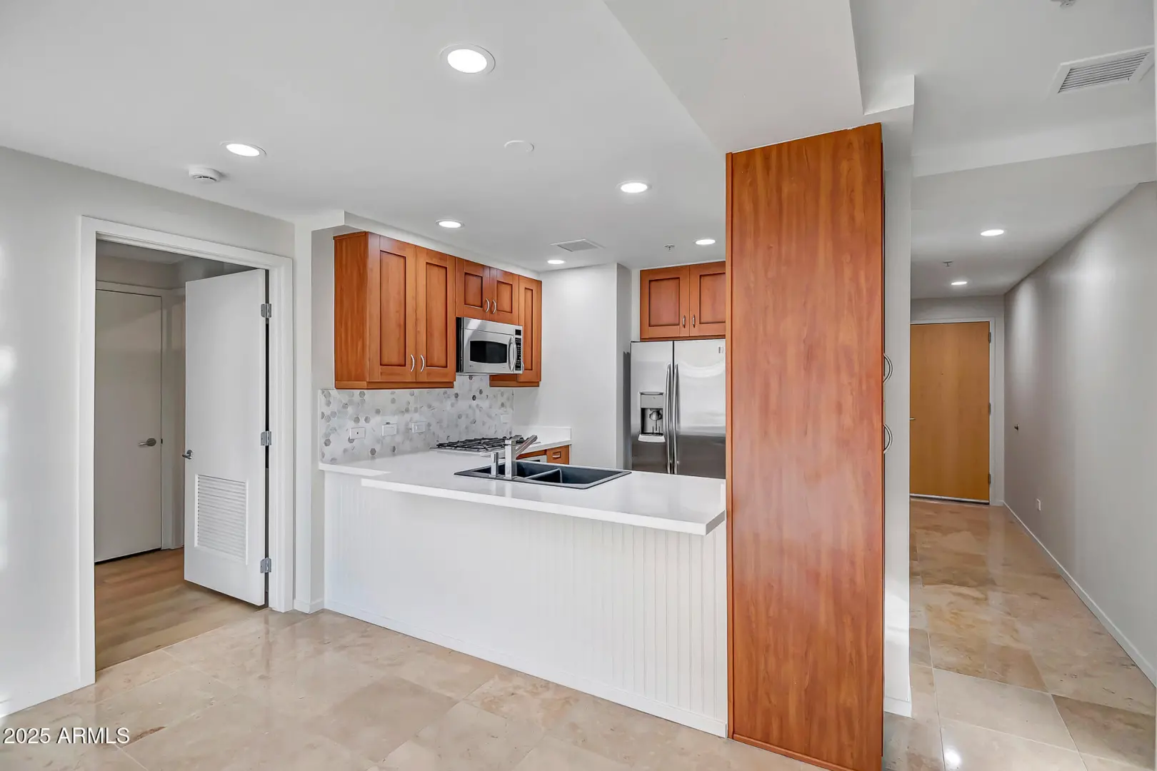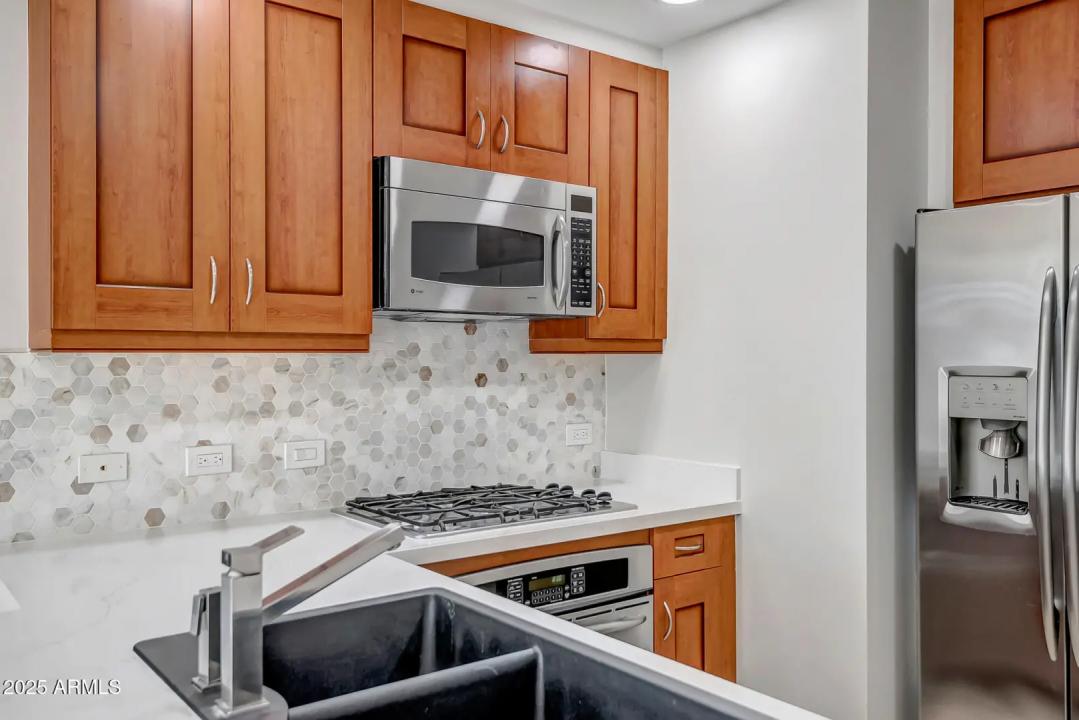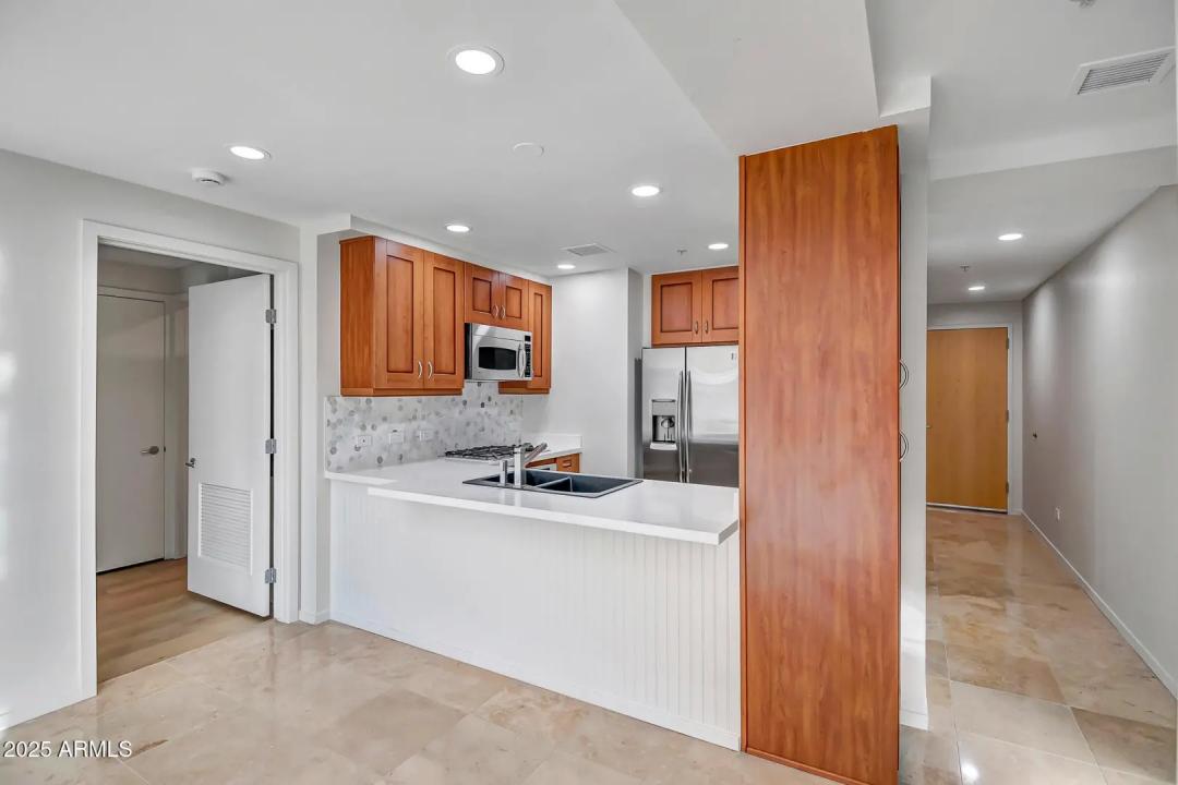 Incredible 1 Bedroom 1.5 Bath 1127 SqFt Fully Upgraded Unit. This gorgeous condominium is fully upgraded throughout and boasts travertine flooring in the living area, dark beautiful wood flooring in the bedroom, upgraded kitchen with beautiful granite countertops, a lovely fireplace, private patio with great interior view and so much more. There is a den with bath that provides an excellent space for an office. This unit is just exquisite throughout and a must see!