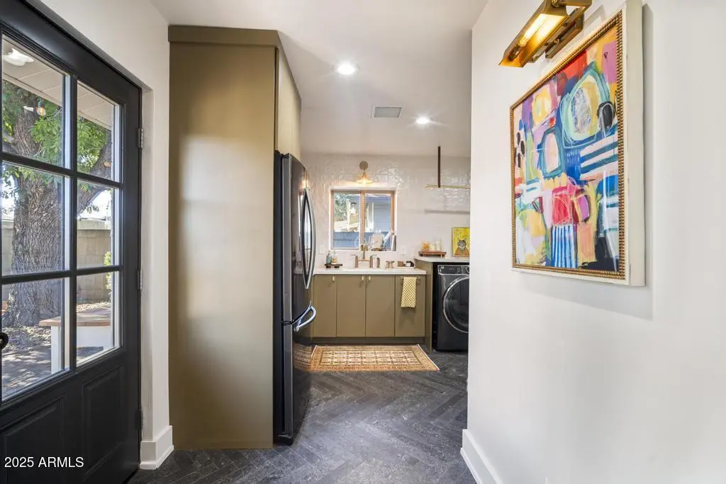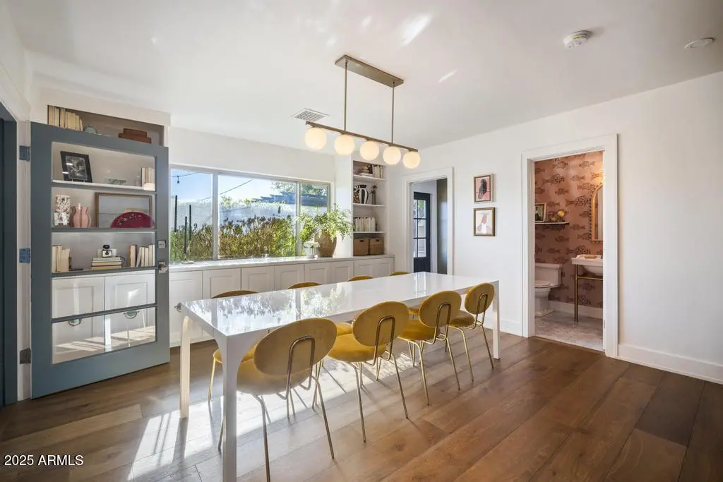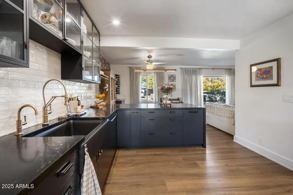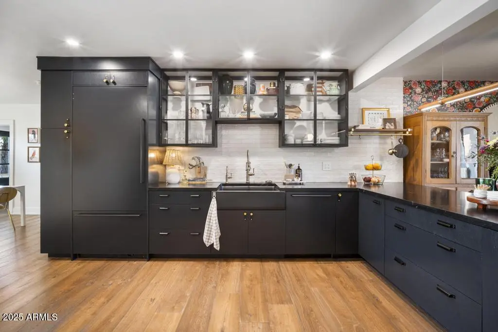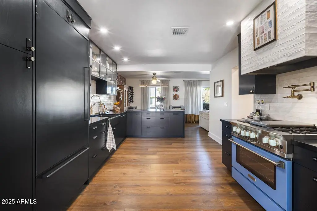 Welcome to 8221 E Edgemont Ave—an exquisitely remodeled home where timeless design meets elevated, modern living. Reimagined by Grace Lauren Design, this residence showcases a full-scale transformation that brings custom craftsmanship, luxury finishes, and functional upgrades to every corner of the home. Step inside to an inviting open layout enhanced by raised soffits, all-new wood flooring, and designer millwork that sets the tone for a refined yet comfortable living experience. The kitchen is a showpiece—featuring custom cabinetry, granite countertops, ceramic tile backsplash, Brizo plumbing, and an enviable lineup of luxury appliances, including a built-in JennAir refrigerator, built-in Bosch dishwasher, 36'' custom Bluestar gas range, and under-counter beverage fridge.