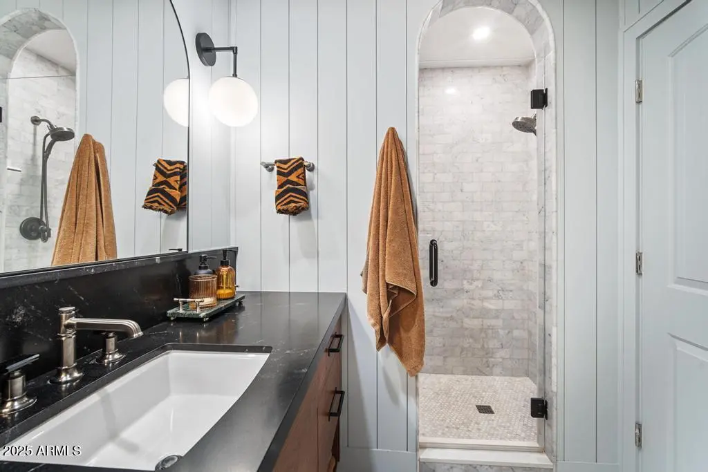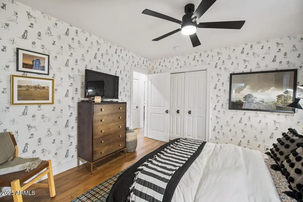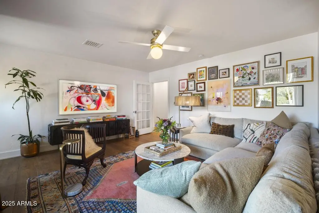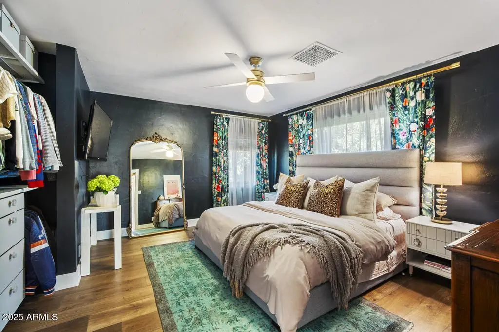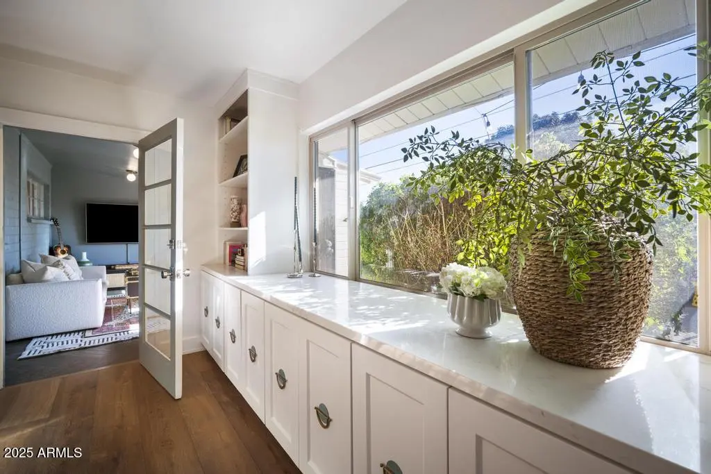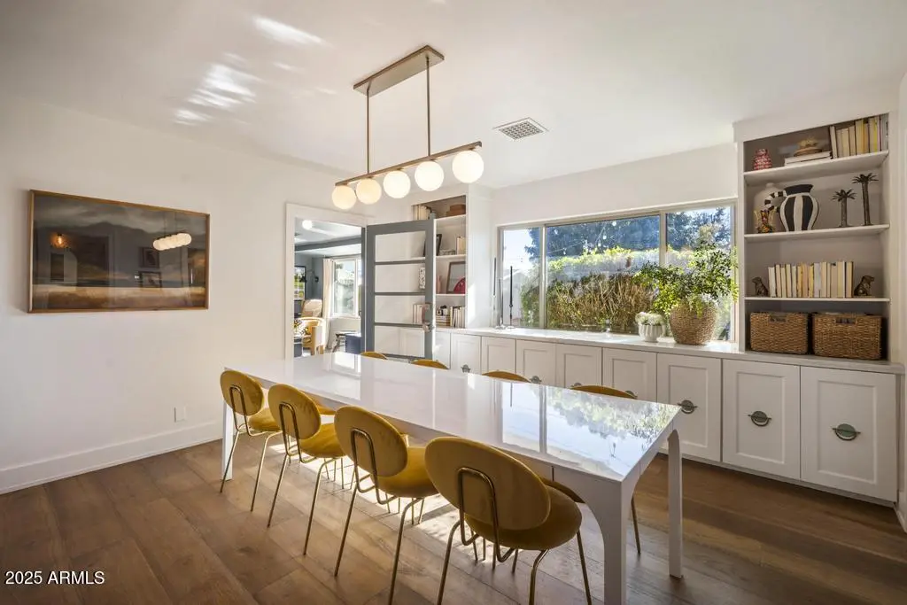 Welcome to 8221 E Edgemont Ave—an exquisitely remodeled home where timeless design meets elevated, modern living. Reimagined by Grace Lauren Design, this residence showcases a full-scale transformation that brings custom craftsmanship, luxury finishes, and functional upgrades to every corner of the home. Step inside to an inviting open layout enhanced by raised soffits, all-new wood flooring, and designer millwork that sets the tone for a refined yet comfortable living experience. The kitchen is a showpiece—featuring custom cabinetry, granite countertops, ceramic tile backsplash, Brizo plumbing, and an enviable lineup of luxury appliances, including a built-in JennAir refrigerator, built-in Bosch dishwasher, 36'' custom Bluestar gas range, and under-counter beverage fridge.