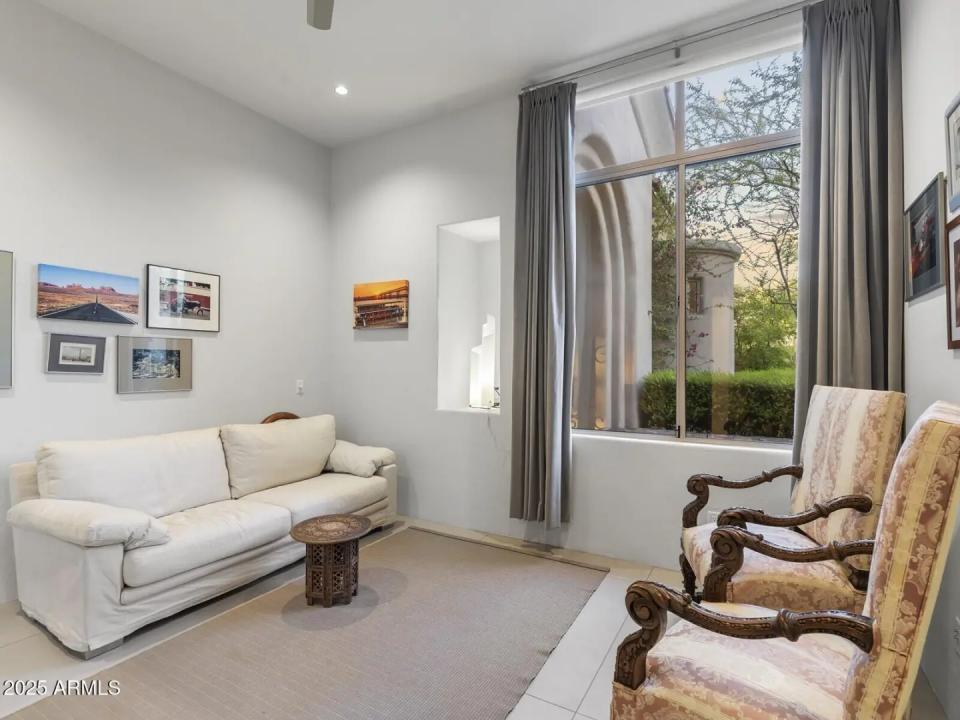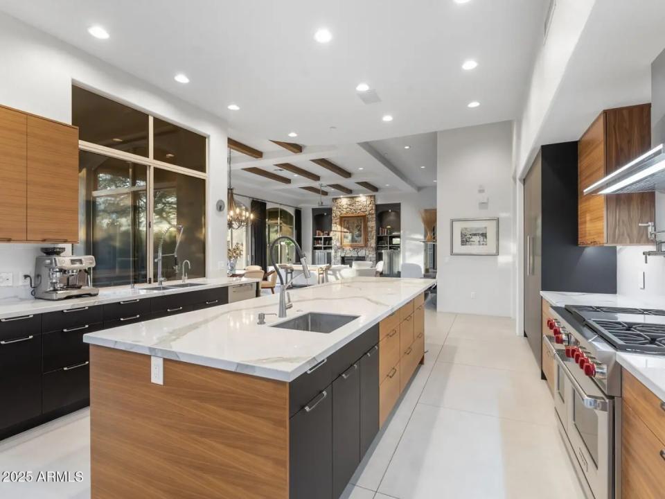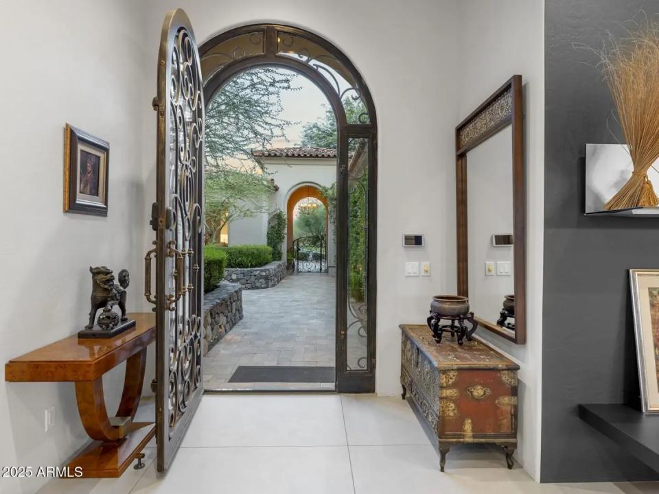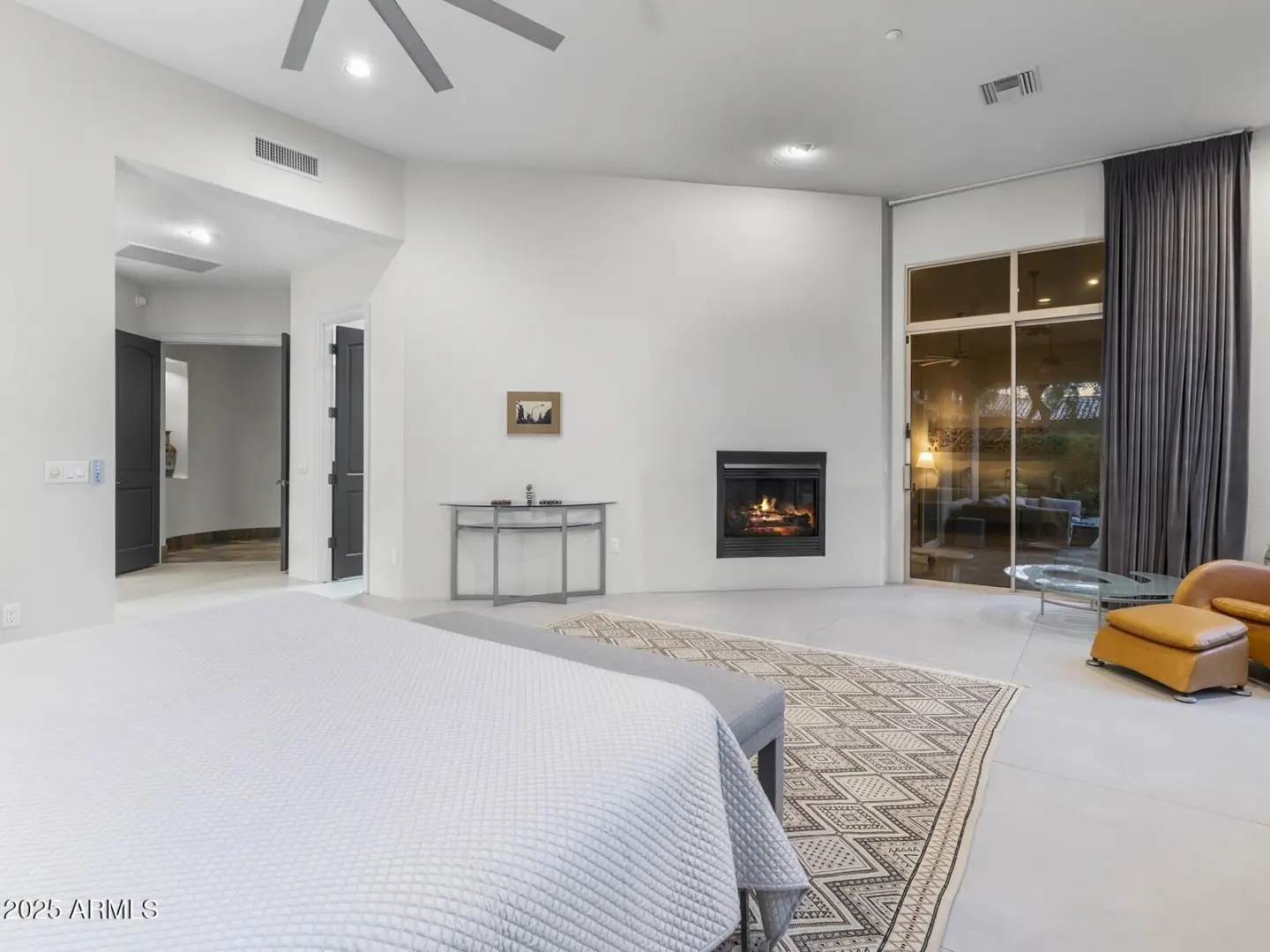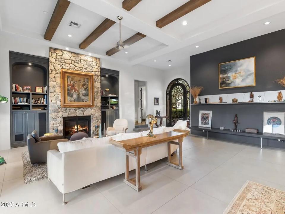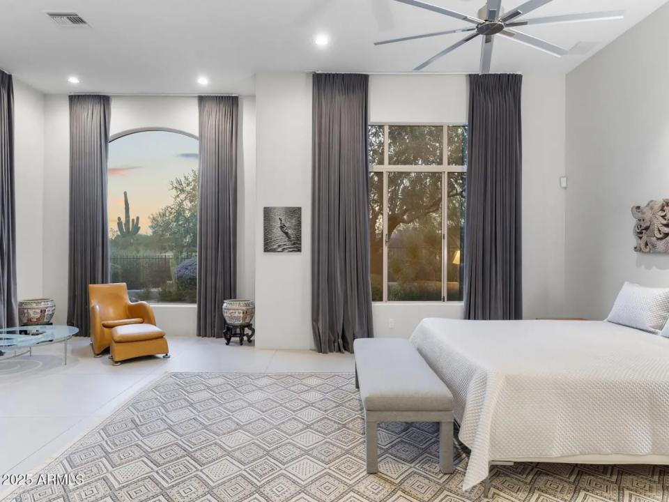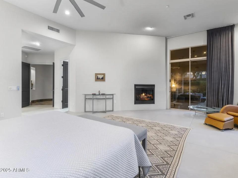 Updated Edmunds residence with detached casita, perfectly sited on a coveted golf-course lot in guard-gated DC Ranch Country Club. One of only 54 homes by the Club, it backs the 2nd fairway, sides to open space, and fronts a grassy park. A vaulted great room unites living, dining, and a chef's kitchen with walnut cabinetry, oversized island, walk-in pantry, and a 48″ Wolf range with 72″ Sub-Zero. High ceilings, 4×4 Italian porcelain, custom built-ins, and renewed baths set a crisp, modern tone. The split primary retreat offers a sitting area, fireplace, patio access, dual closets, and a spa bath with steam shower. Outdoor living unfolds front and back: a secluded courtyard with pool and water feature; a deep yard with turf, fireplace, waterfall, two covered patios, and built-in
