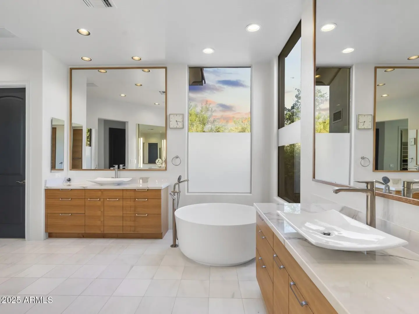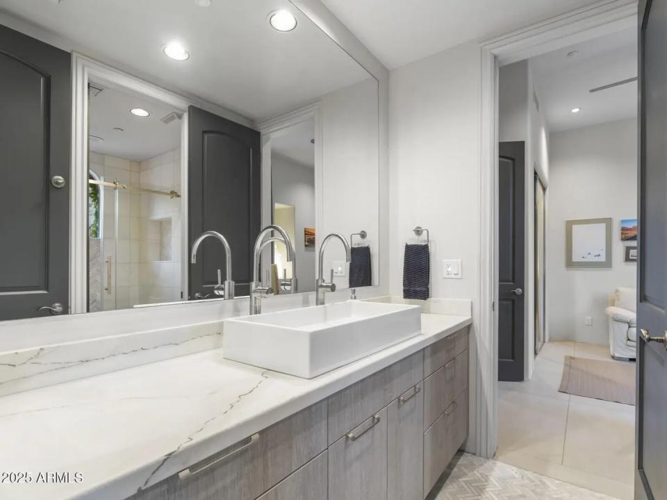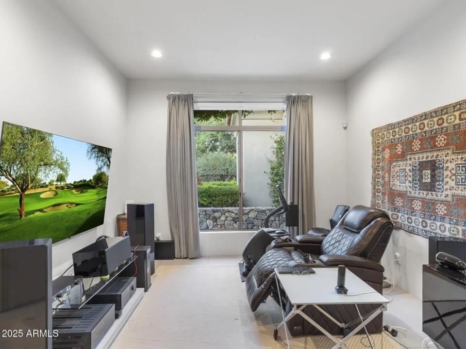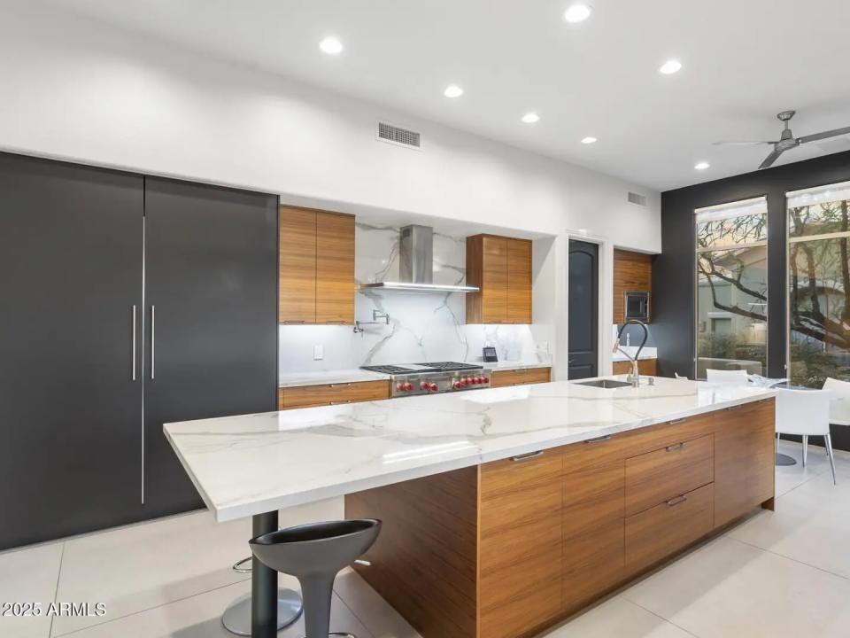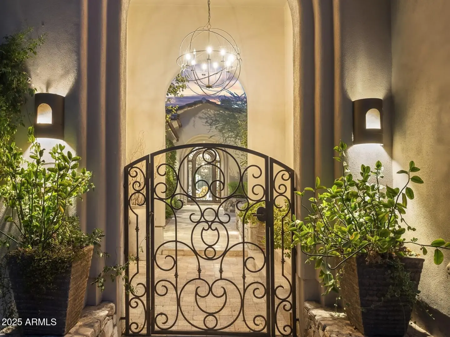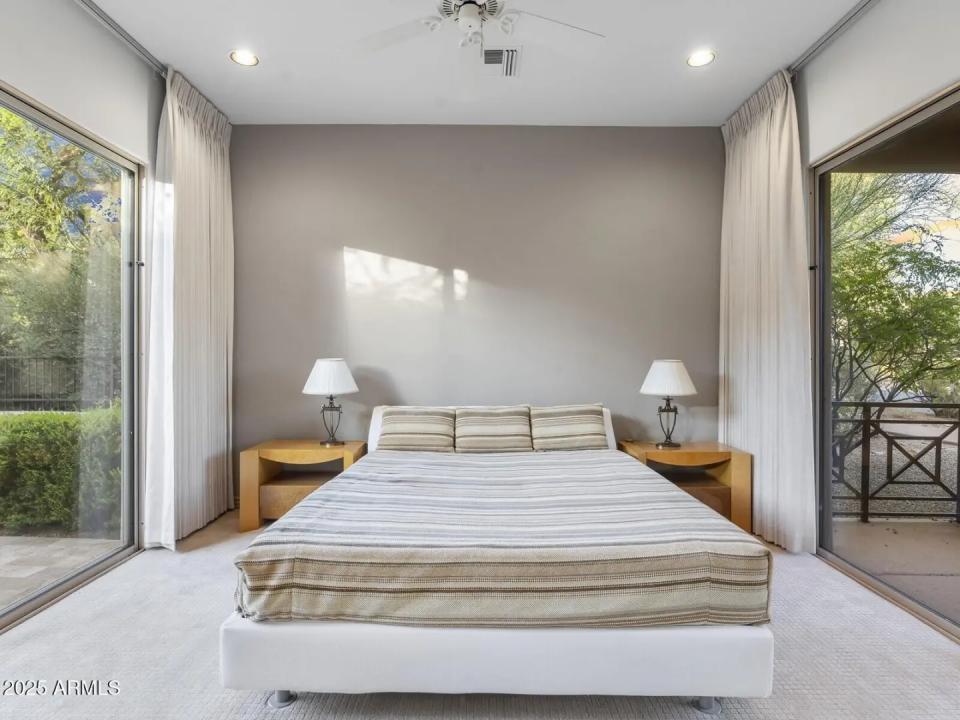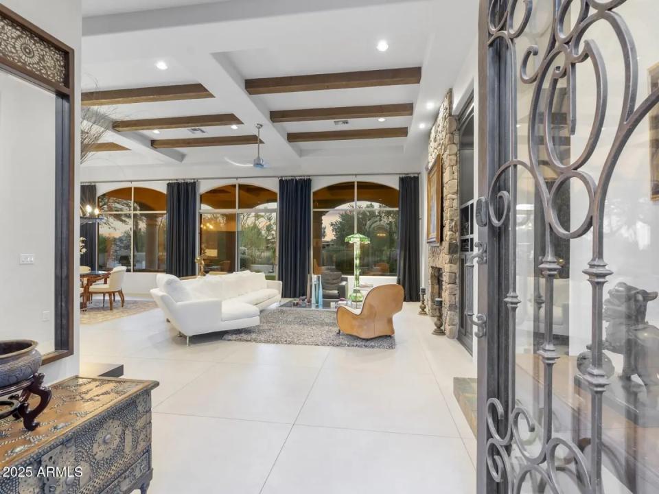 Updated Edmunds residence with detached casita, perfectly sited on a coveted golf-course lot in guard-gated DC Ranch Country Club. One of only 54 homes by the Club, it backs the 2nd fairway, sides to open space, and fronts a grassy park. A vaulted great room unites living, dining, and a chef's kitchen with walnut cabinetry, oversized island, walk-in pantry, and a 48″ Wolf range with 72″ Sub-Zero. High ceilings, 4×4 Italian porcelain, custom built-ins, and renewed baths set a crisp, modern tone. The split primary retreat offers a sitting area, fireplace, patio access, dual closets, and a spa bath with steam shower. Outdoor living unfolds front and back: a secluded courtyard with pool and water feature; a deep yard with turf, fireplace, waterfall, two covered patios, and built-in
