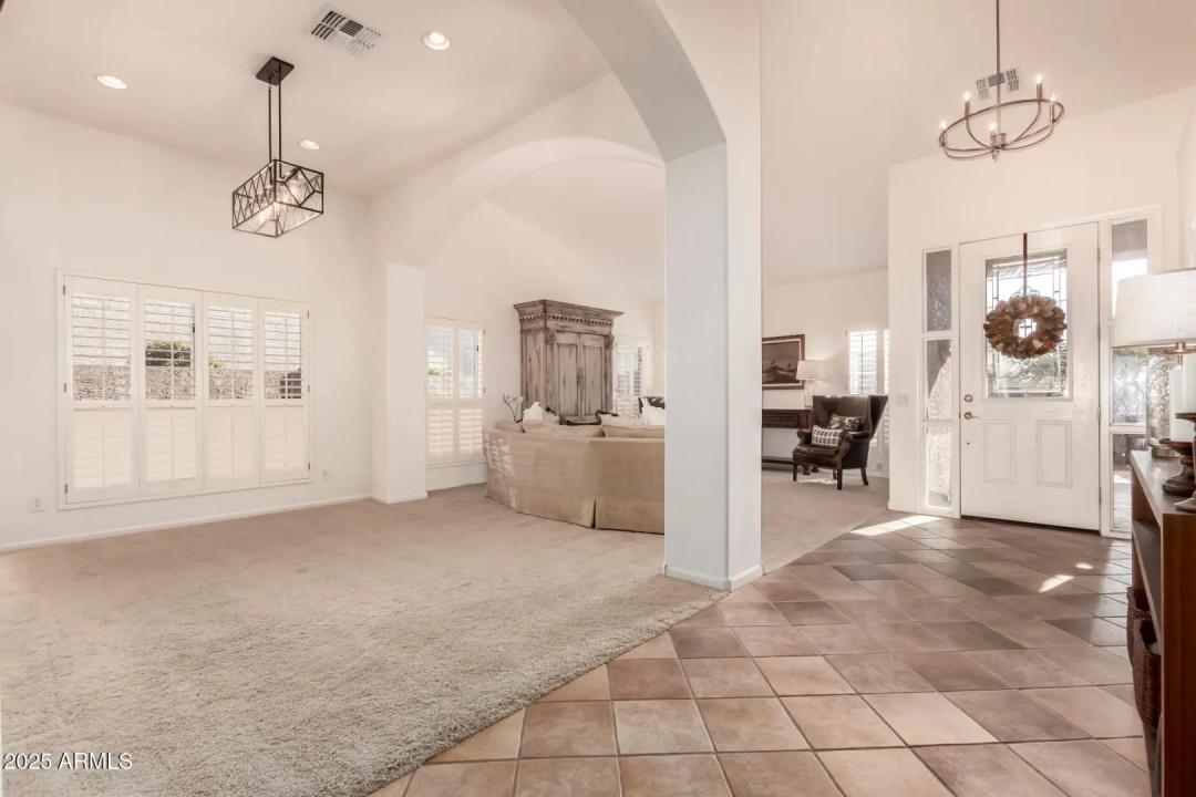 NEW ROOF IN 2025! This property boasts custom touches throughout and is situated on a desirable north/south-facing lot. Enjoy the elegance of stone countertops, upgraded raised-panel cabinetry, and diagonal-set tile paired with premium carpeting and padding. The spacious primary suite includes a cozy sitting area. Plantation shutters, recessed lighting, dimmable fixtures, and illuminated niches and archways add sophistication. A versatile den or third bedroom features double doors and a full-length closet. The exterior impresses with a brick paver driveway, walkway, and an extended covered patio complete with a gas grill hookup. Built with energy efficiency in mind, this home includes Integra Block construction, enhanced attic insulation and dual-pane tinted windows.